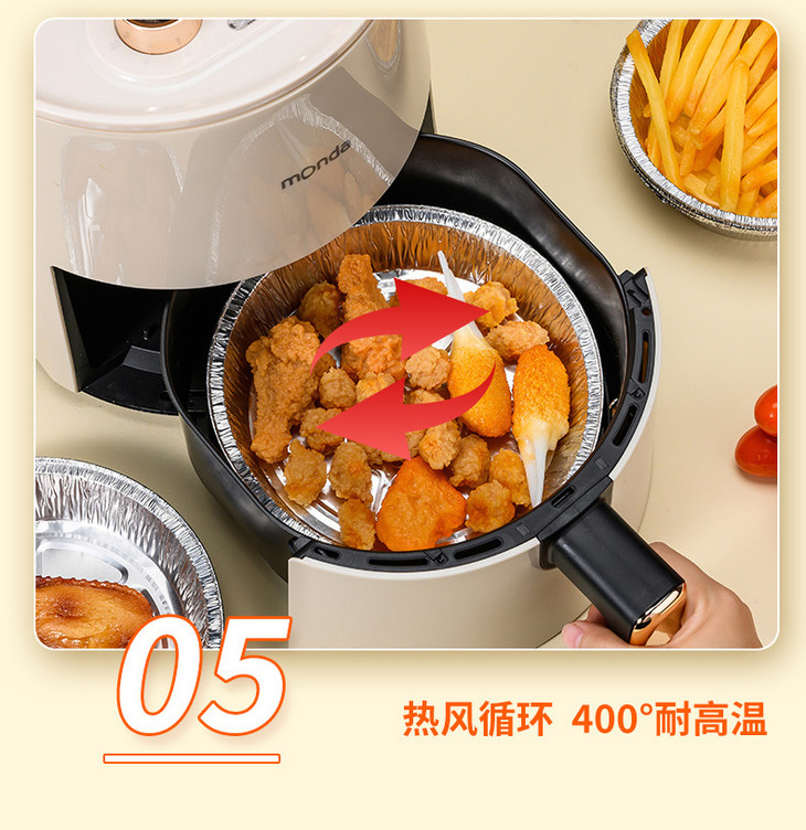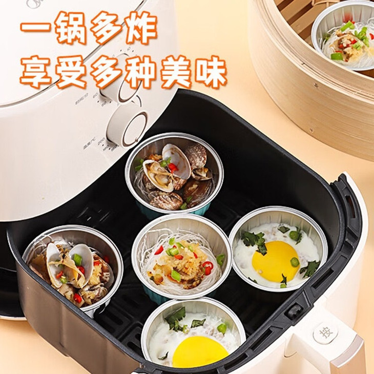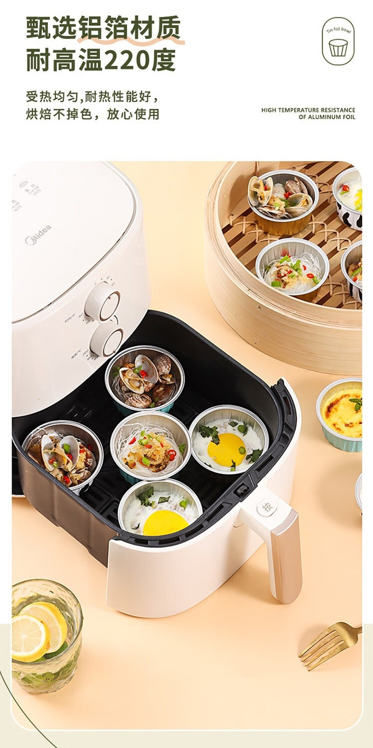 铝箔材质耐220°高温 而且防水防油不粘黏 不仅和空气炸锅适配 家里的烤箱、蒸笼通通解锁