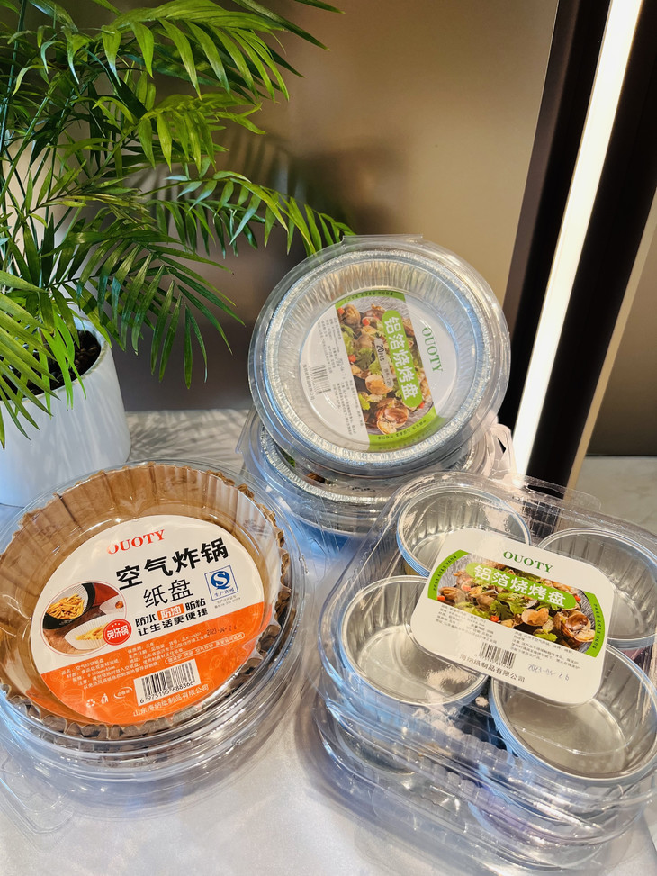 ✅OUOTY铝箔盘 家里有烤箱空气炸锅的 一定要试试铝箔盘! 不仅导热速度快,还可以让食物受热均匀 做完直接连锡纸盘一起端上桌 吃完直接扔,再也不用洗锅洗盘子了