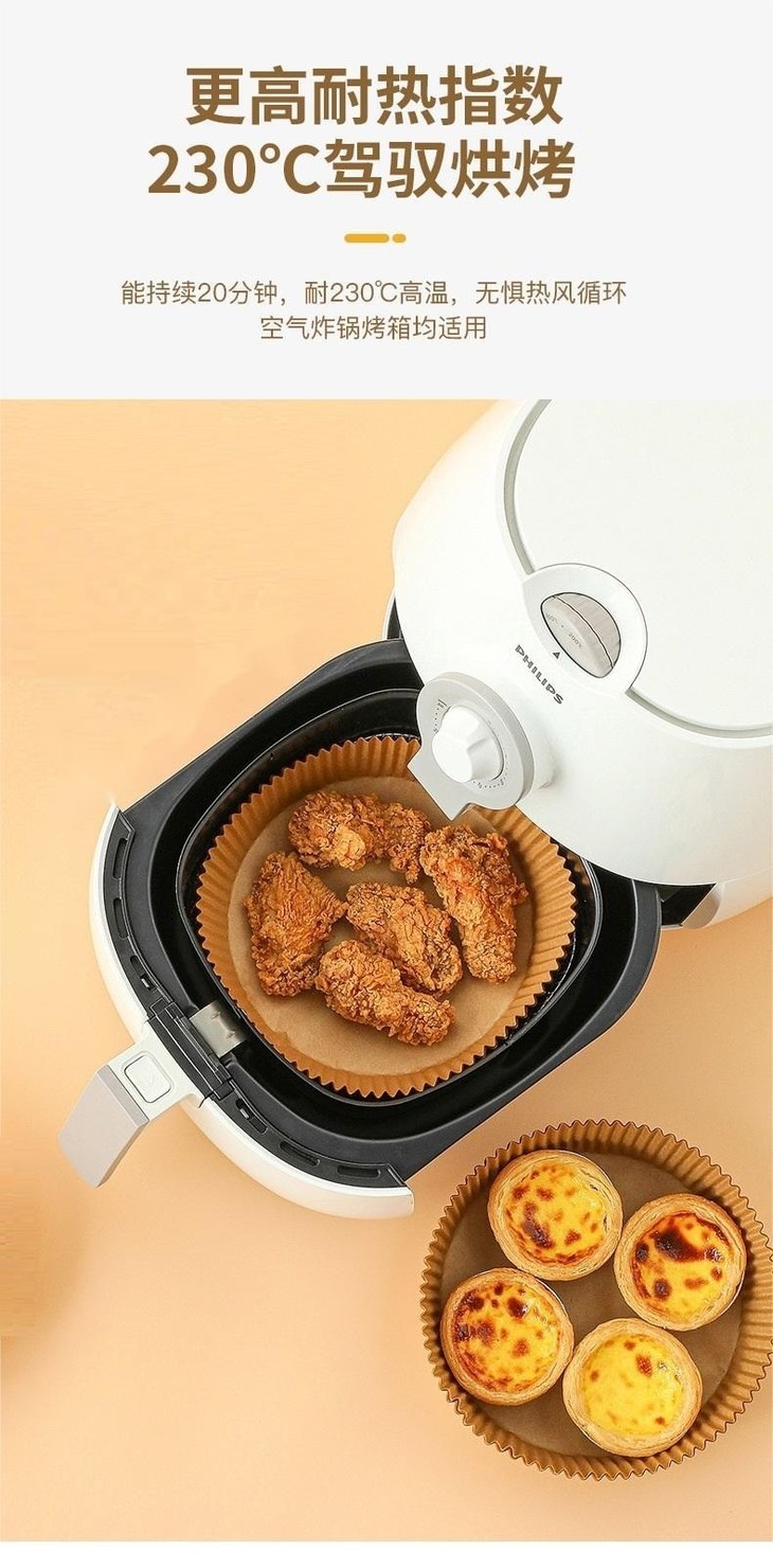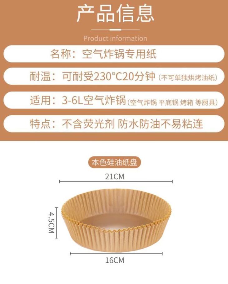 如果你是一个吃货➕颜值爱好者 那这款油纸盘绝对是你的最佳选择! 轻松承受230℃🔥 (注意啦!230°温度以下,使用时间不可超过30分钟呦) 比普通空气炸锅纸好用👏👏👏 一次一张,用完即扔,超级方便!