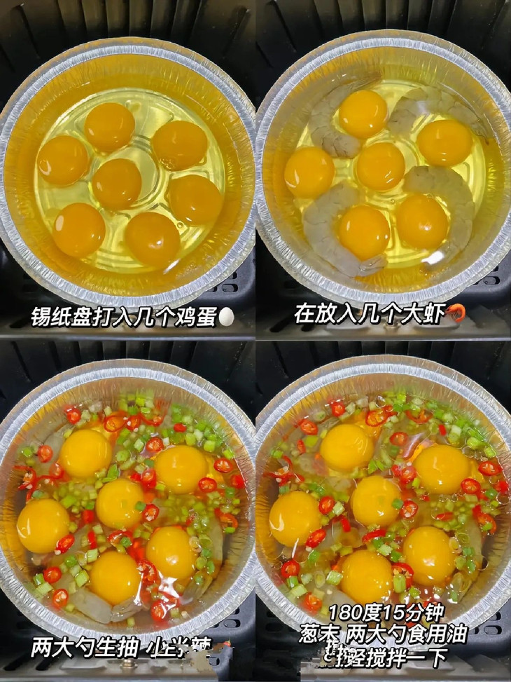 杯里打蛋➡️放入空气炸锅➡️定好时间和温度 给孩子洗漱完就能享受美味营养的蒸蛋 精致的小杯杯让萌娃吃饭不用哄~