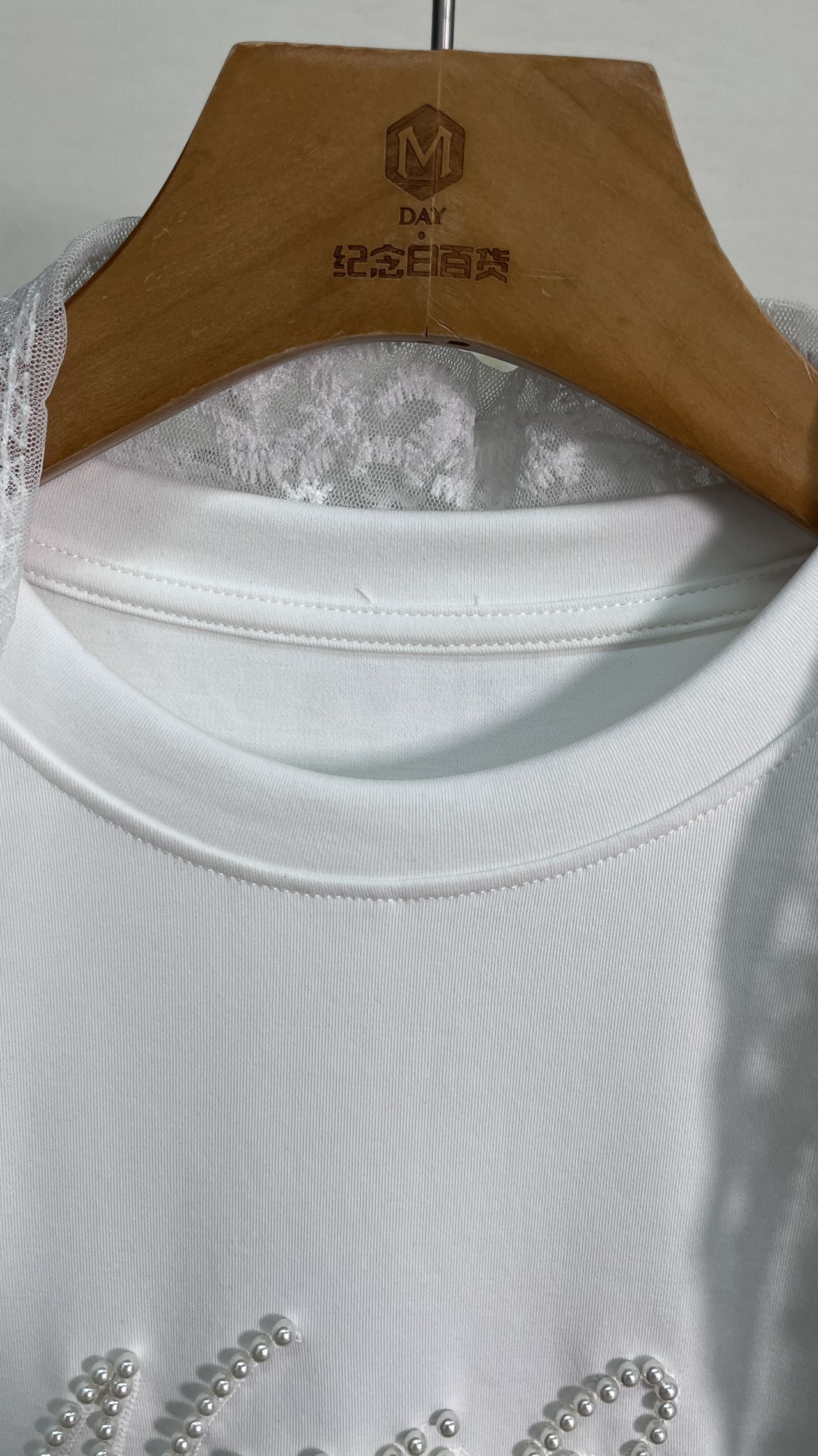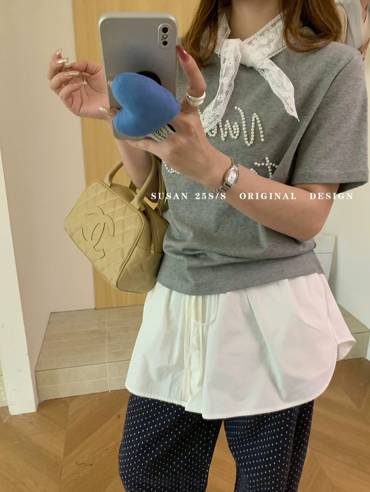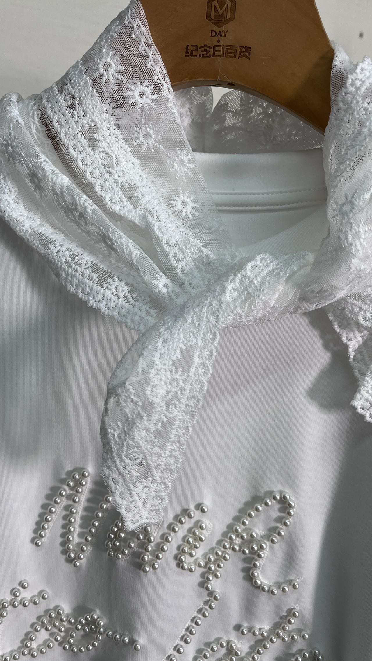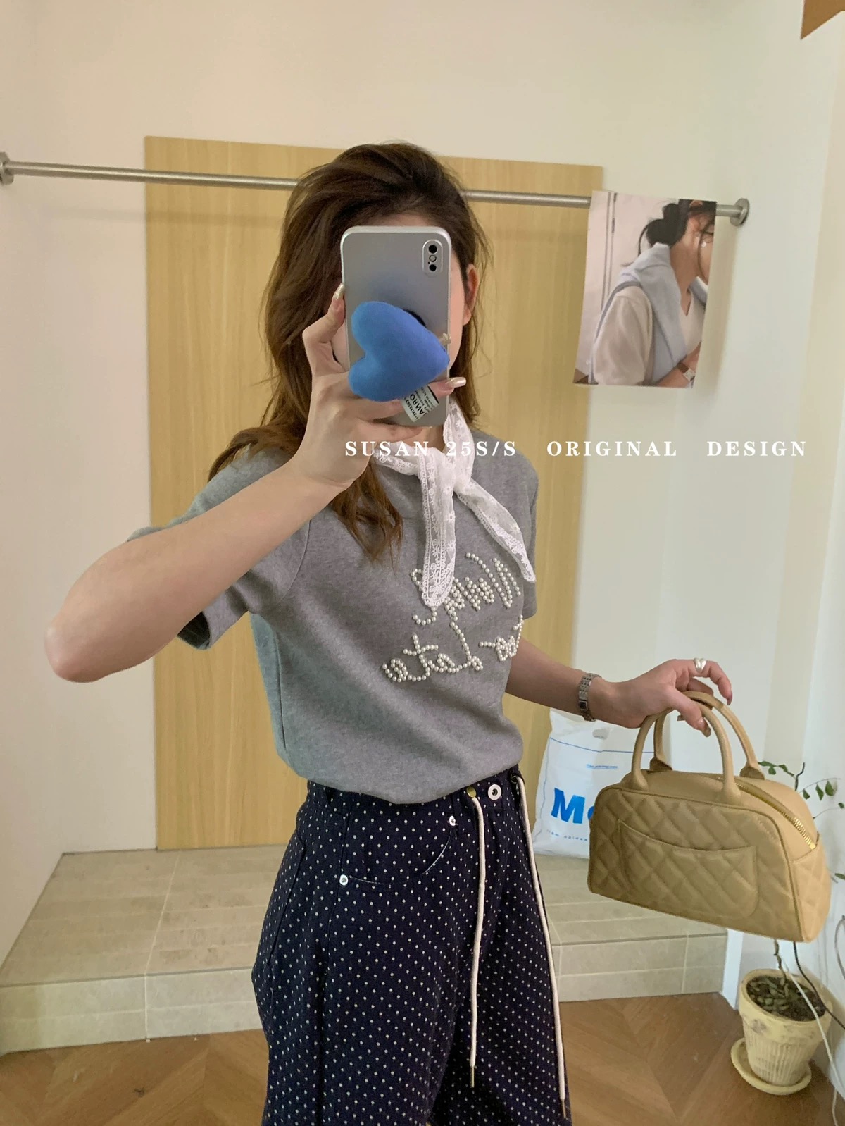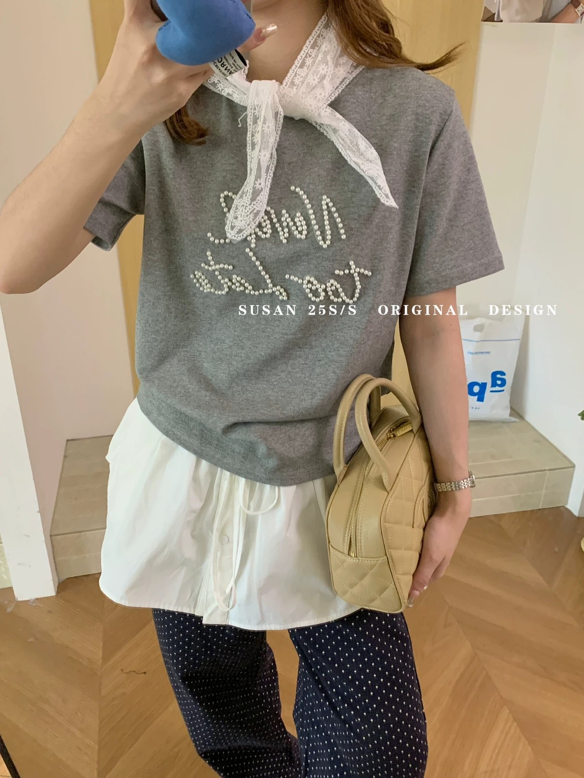 【YW】无忧购韩版ins潮时尚百搭宽松字母订珠短袖T恤配丝巾10013(截单后7天发货)