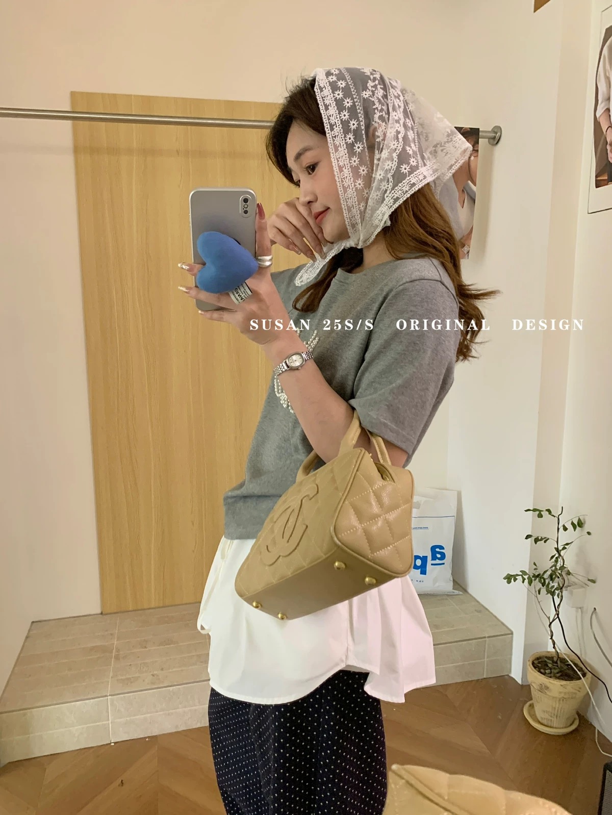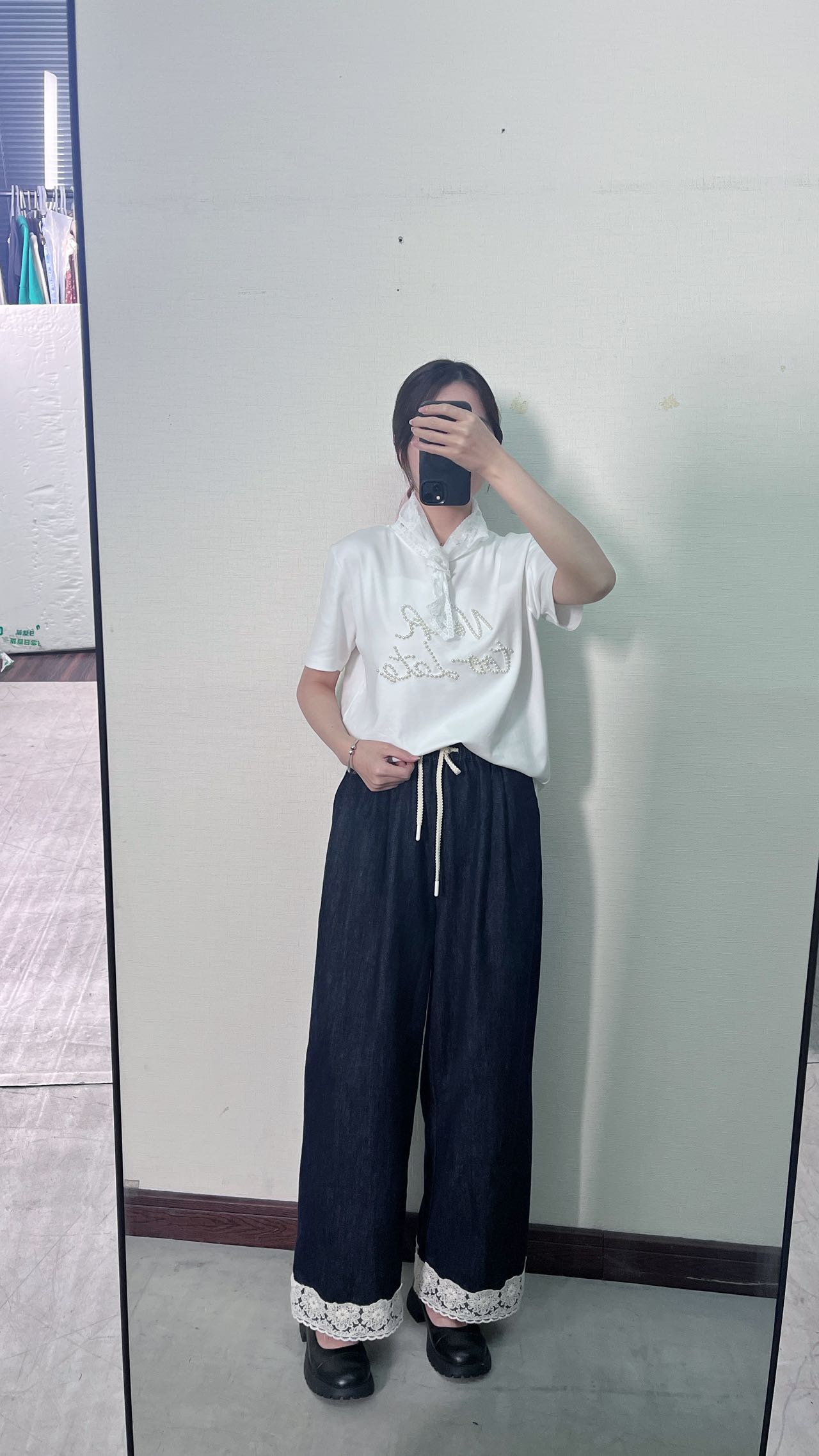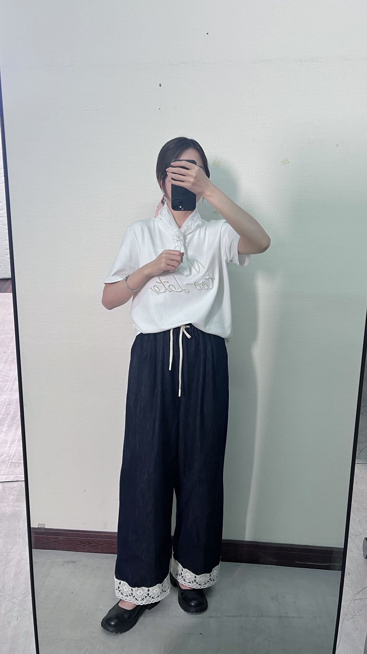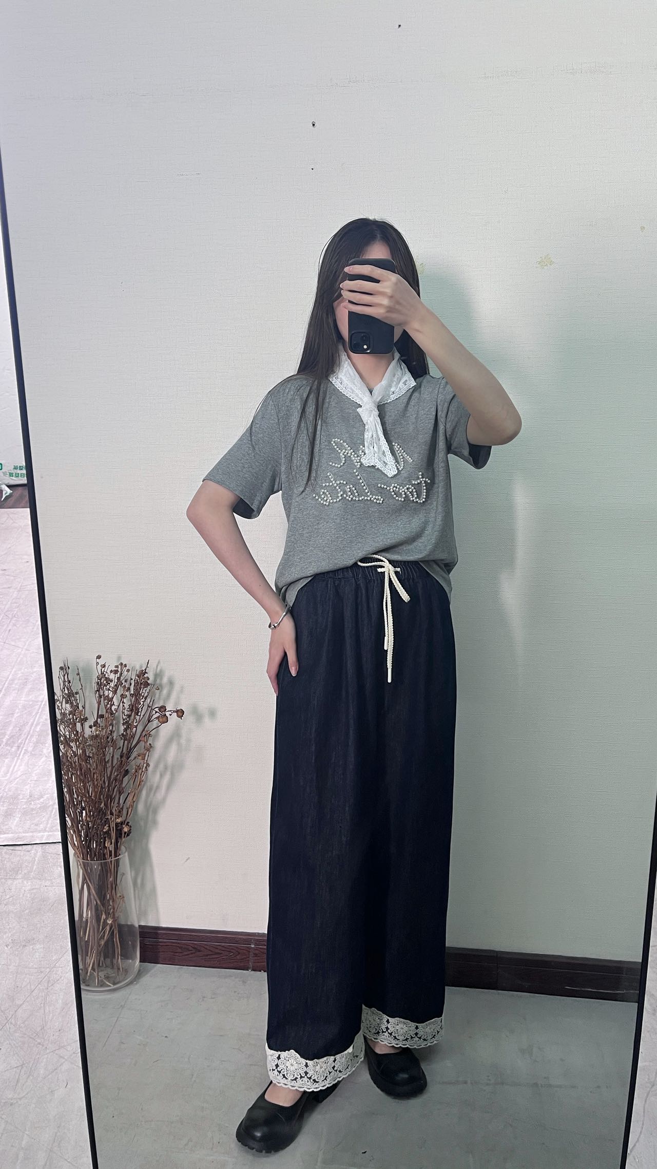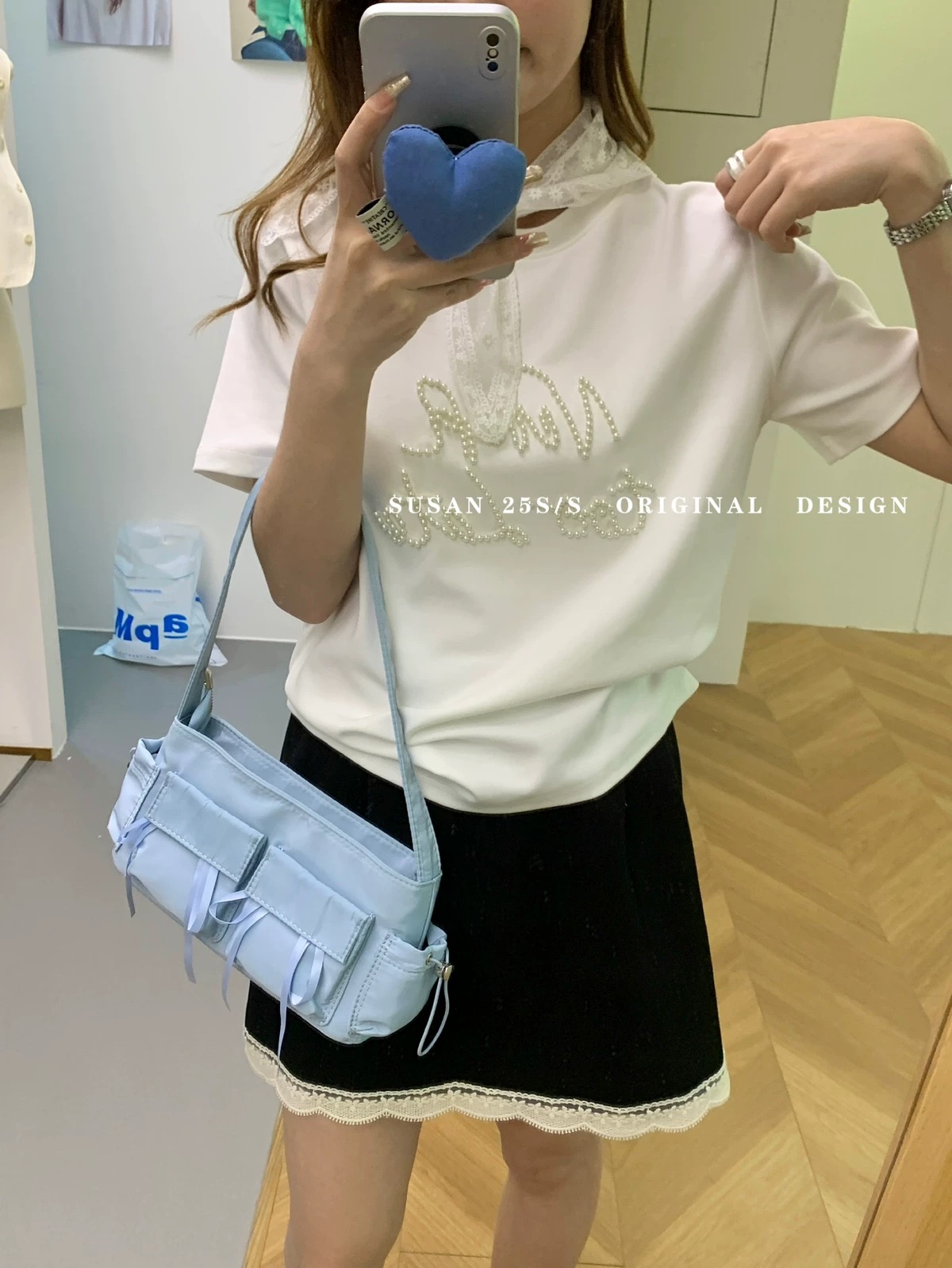 【YW】无忧购韩版ins潮时尚百搭宽松字母订珠短袖T恤配丝巾10013(截单后7天发货)