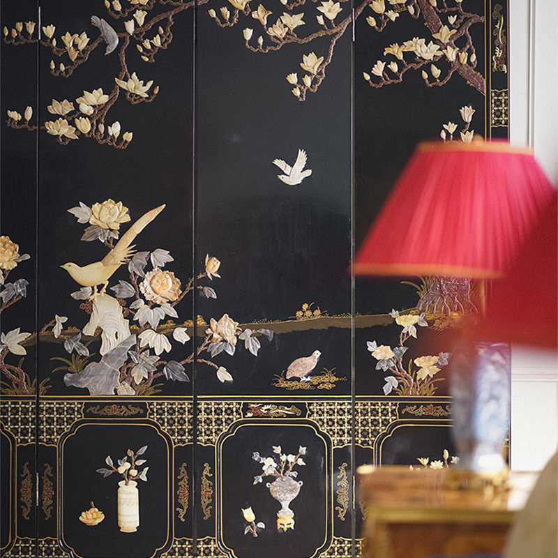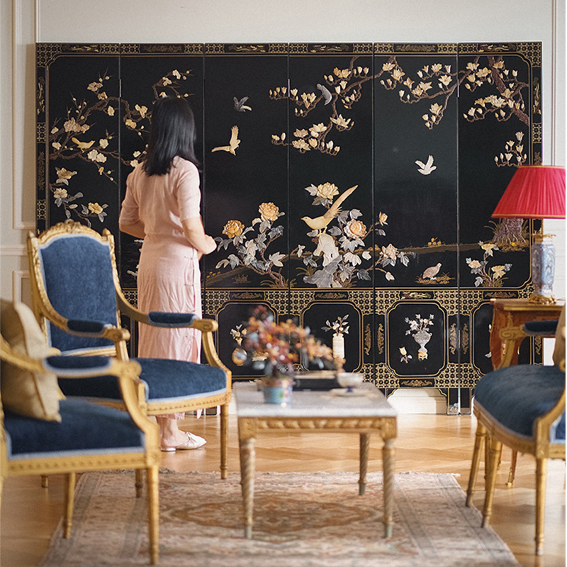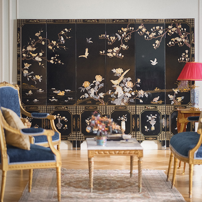 20世纪末中国出品「锦上添花」主题百宝嵌六曲屏风