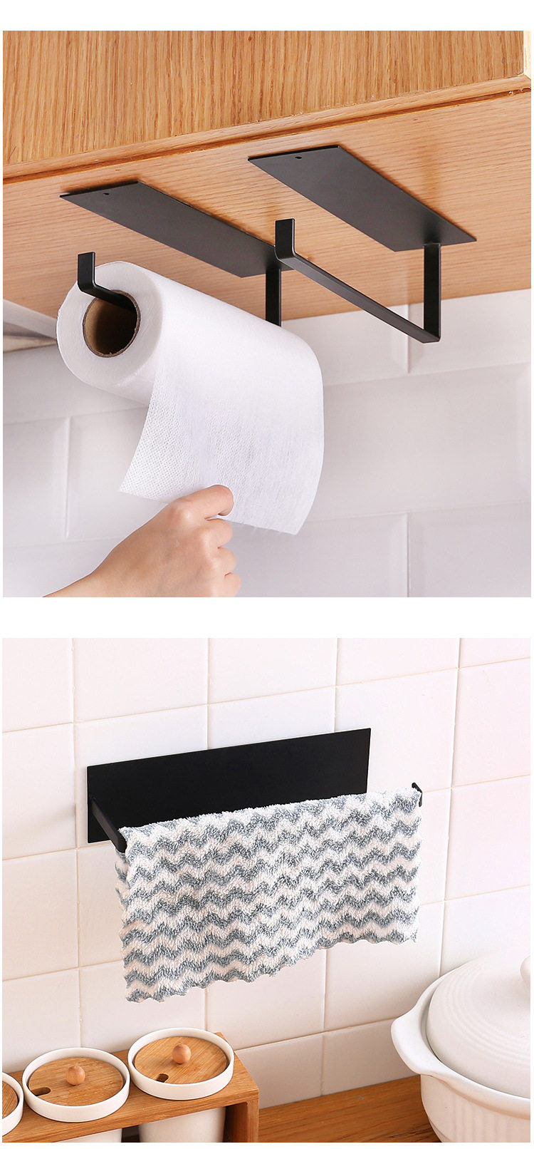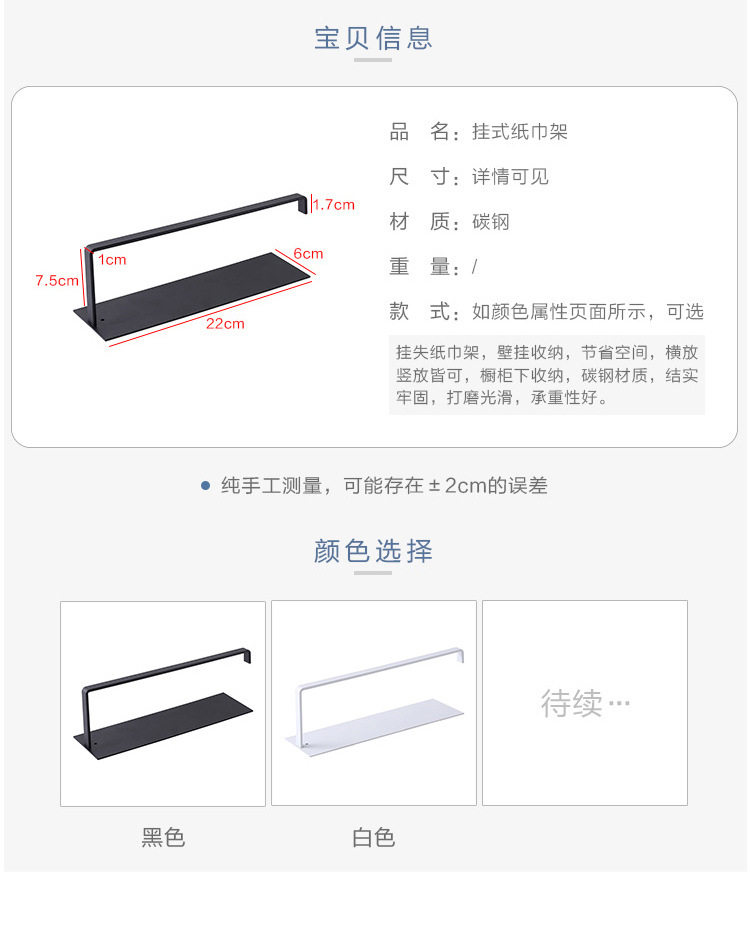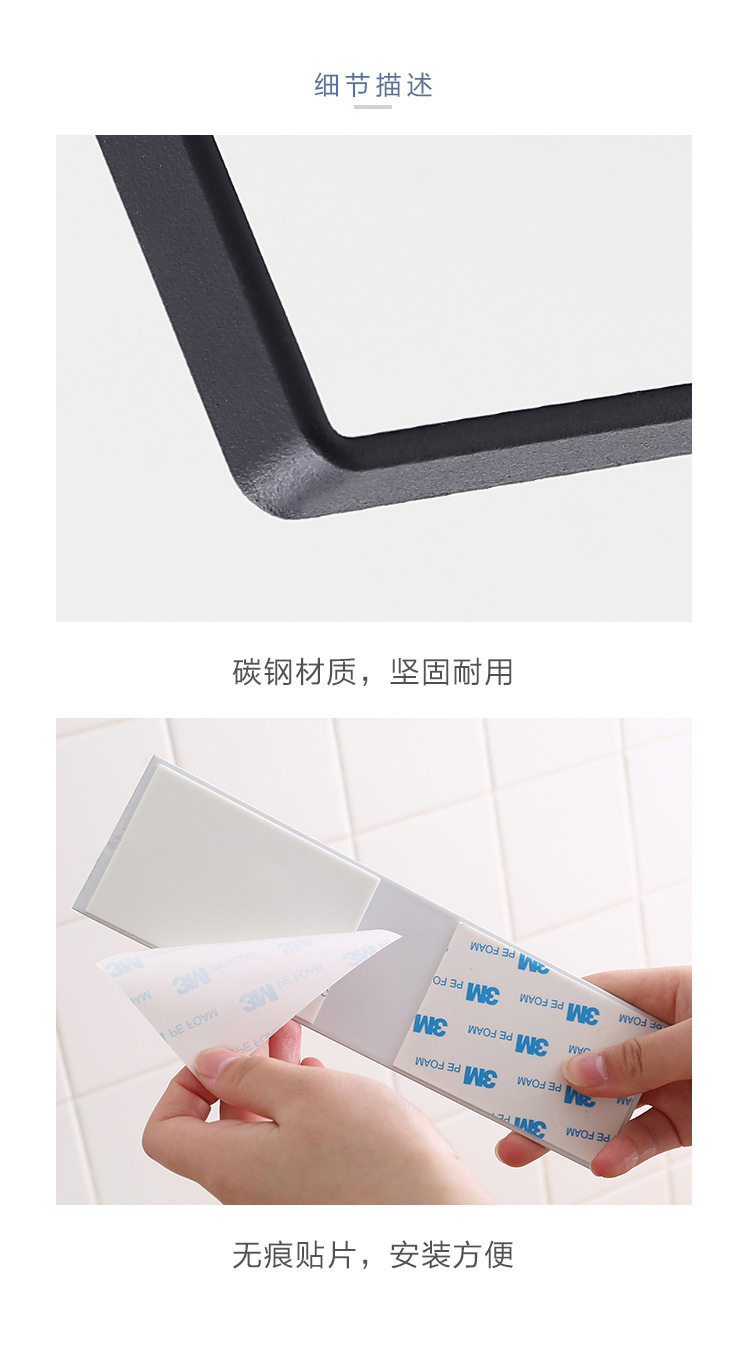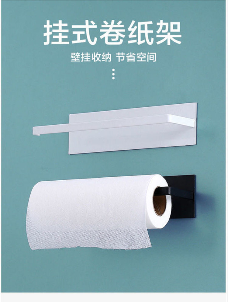 架厨房不锈钢黏胶家用卫生间卷纸纸巾架免打孔壁挂置物架方形加大