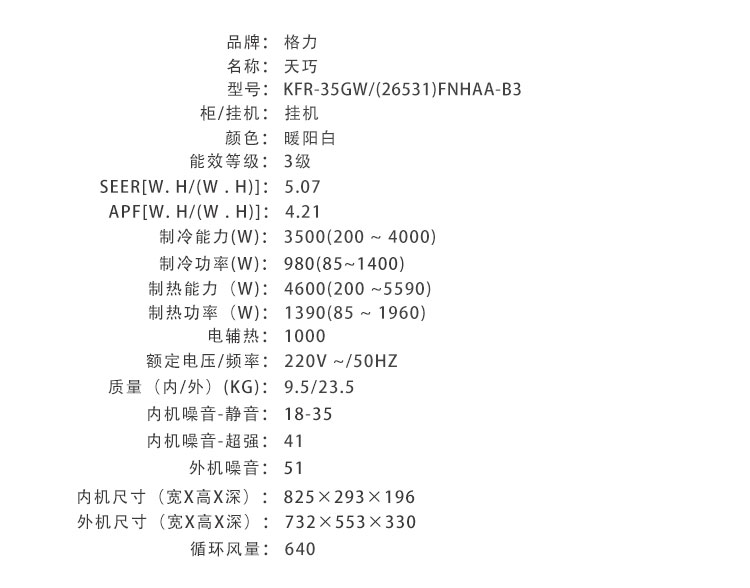 格力・天巧变频冷暖正1.5匹3级能效挂机空调 KFR-35GW/(35531)FNhAa-B3(暖阳白)