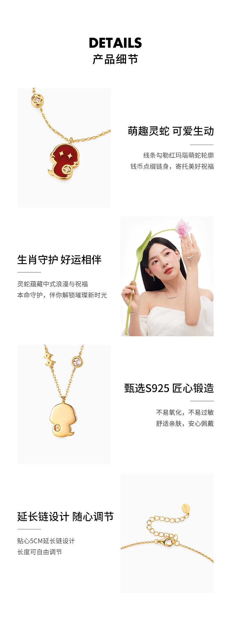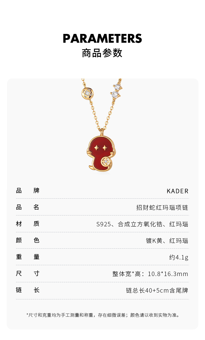 十二生肖守护】 卡蒂罗KADER 招财蛇 新中式萌趣灵蛇可爱灵动好运 国潮铜钱时来运转 礼盒 玛瑙 项链 女款