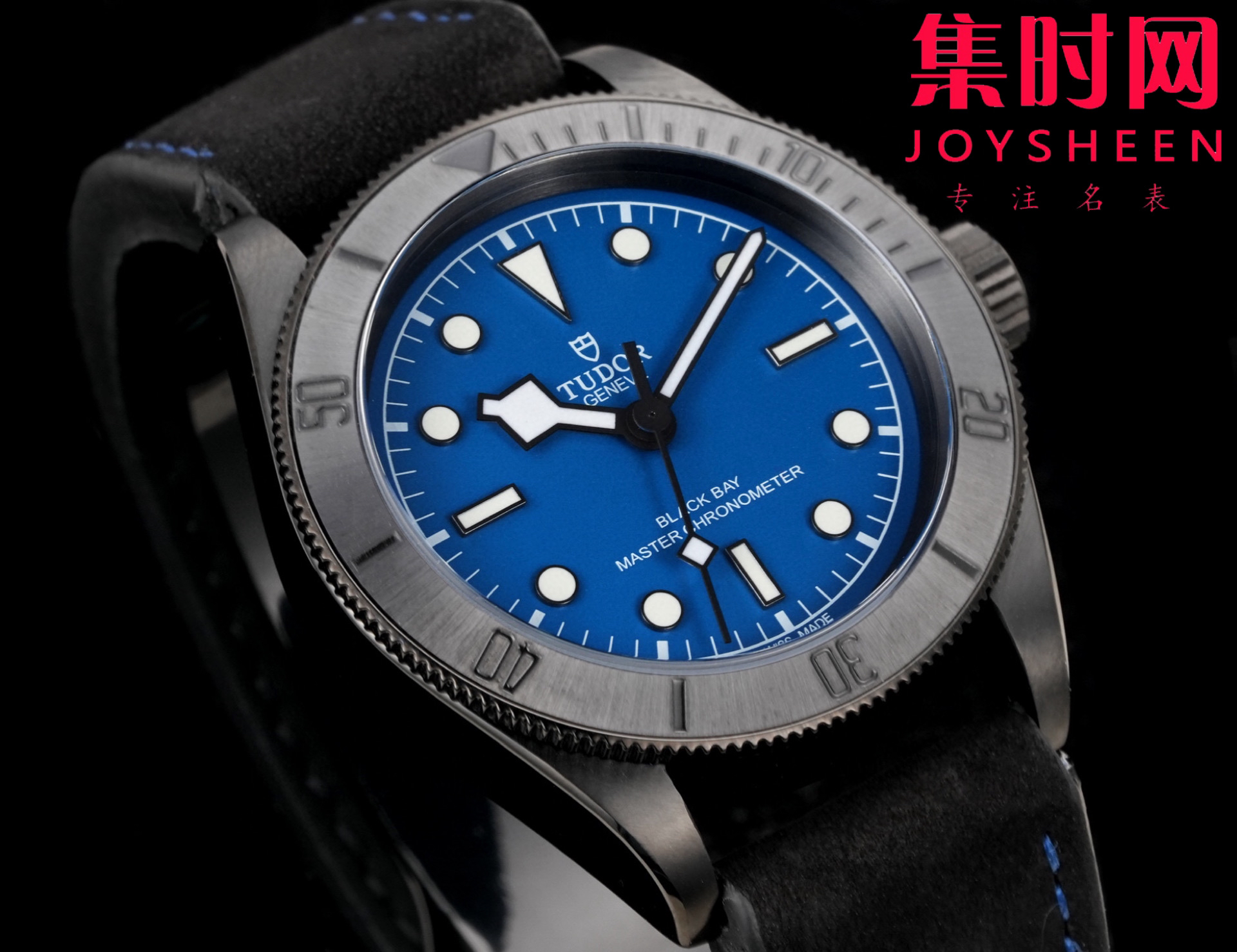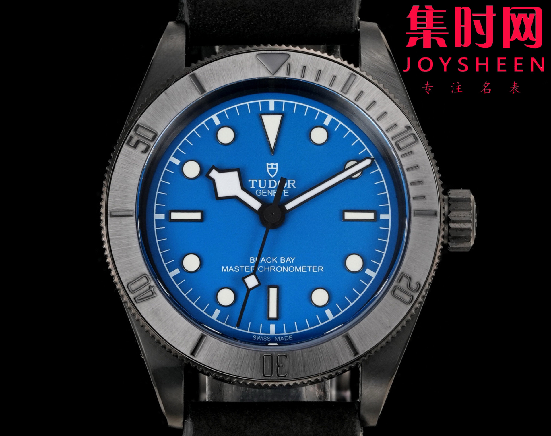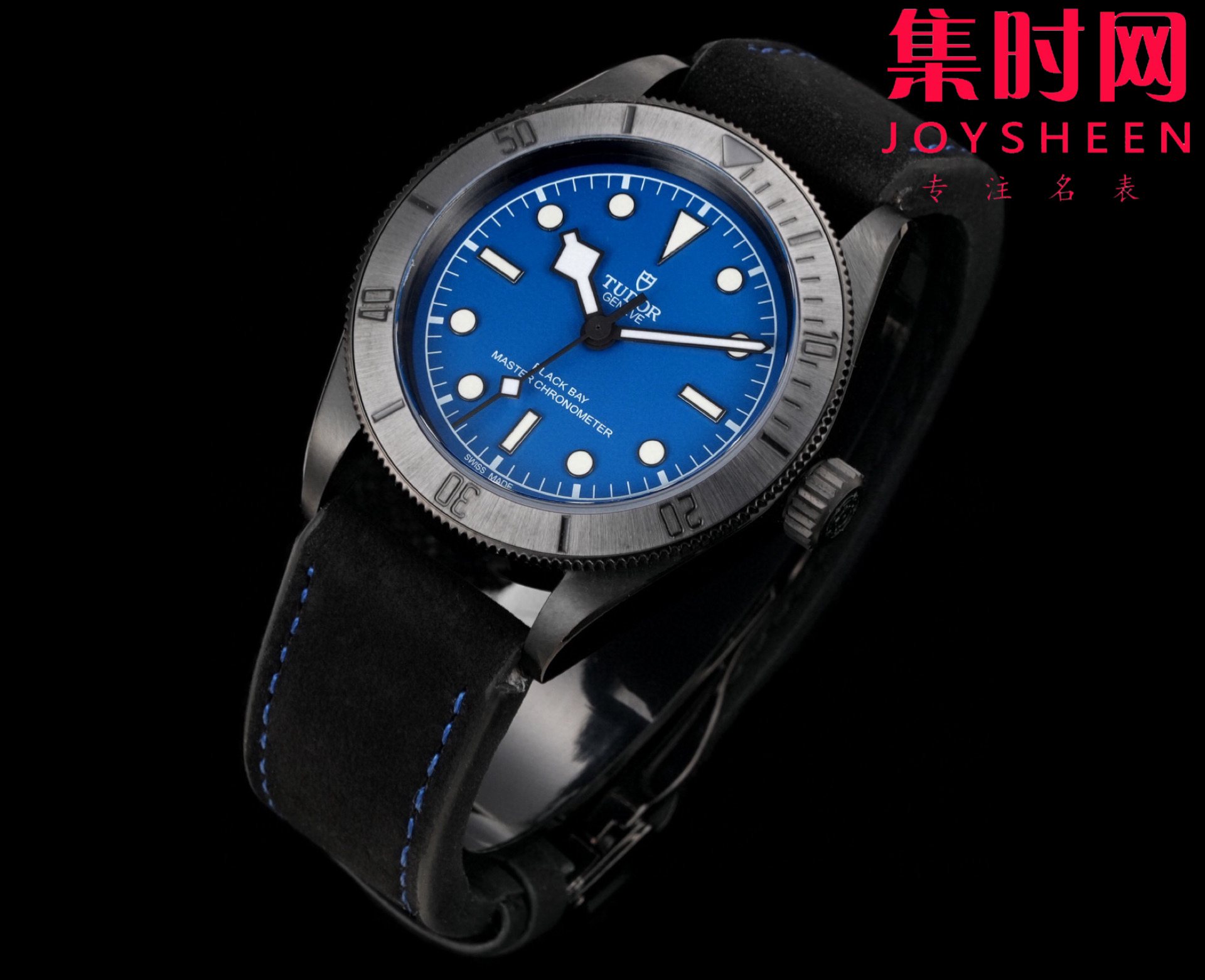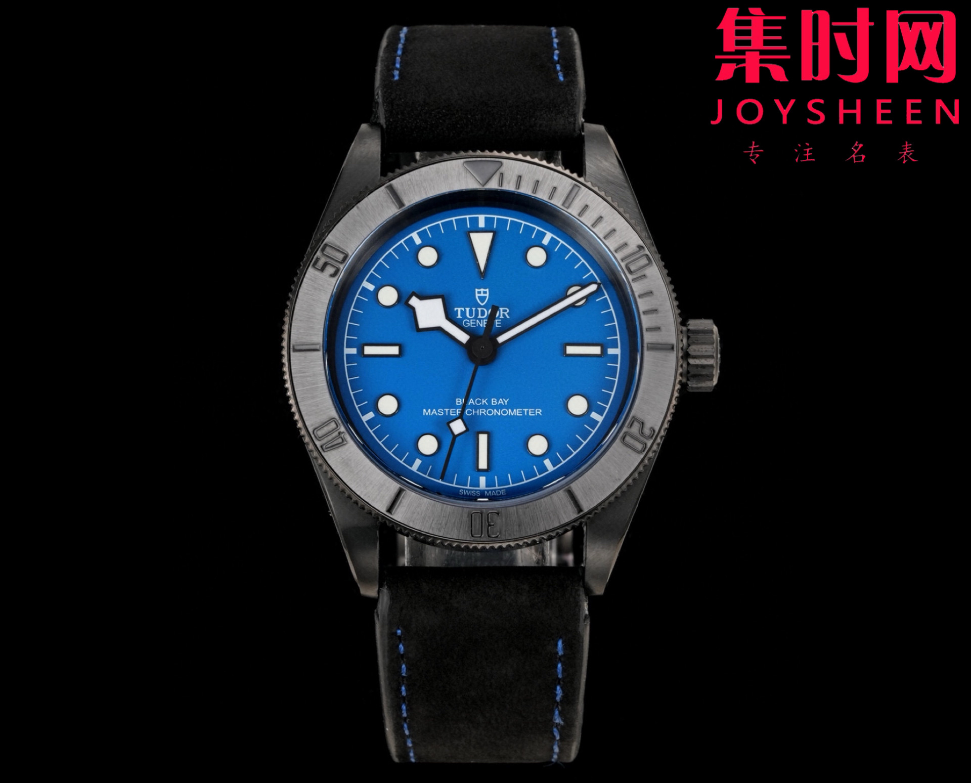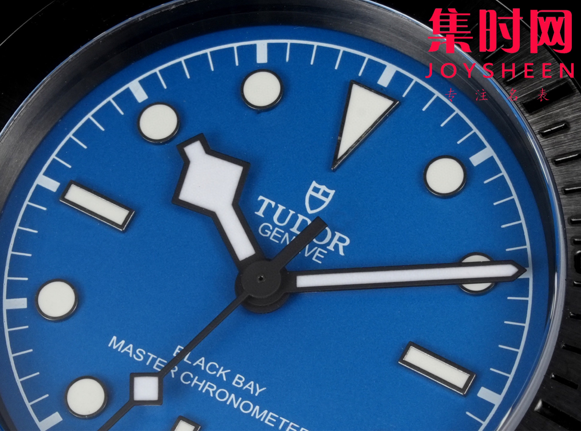 **黑 蓝 白表盘,简约大气,搭配夜光指针和时标,无论白天黑夜,时间清晰易读。标志性雪花指针,传承帝舵经典设计,在黑色背景下更显凌厉锋芒。
