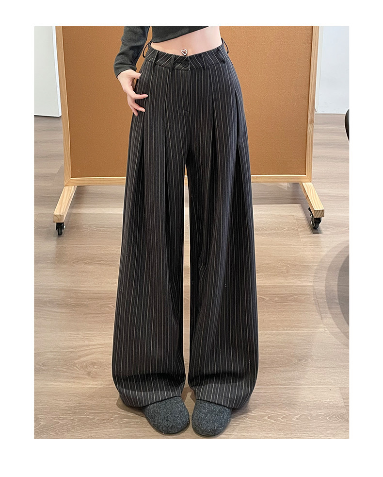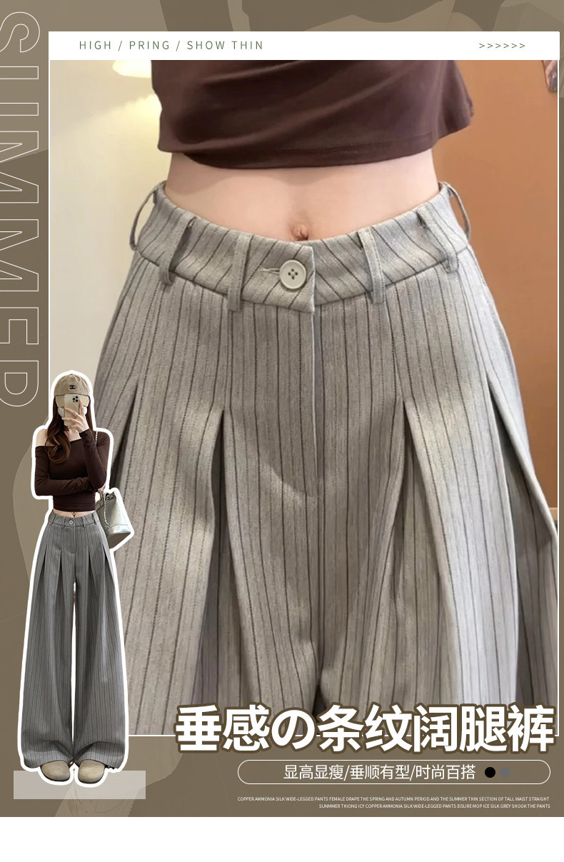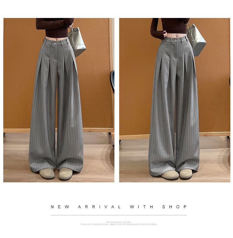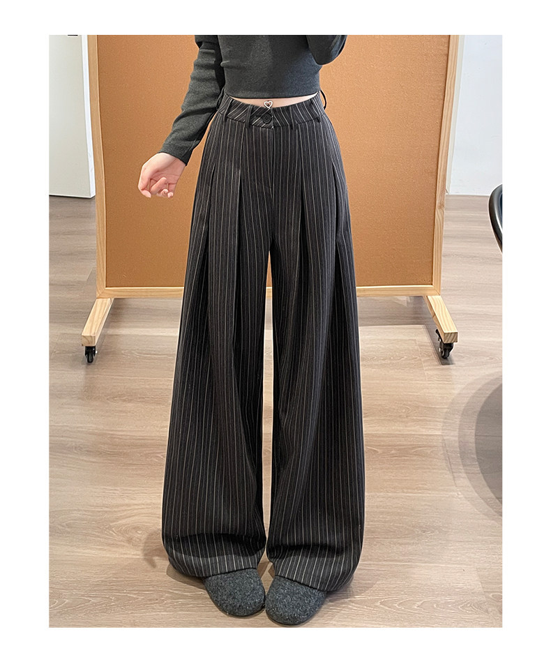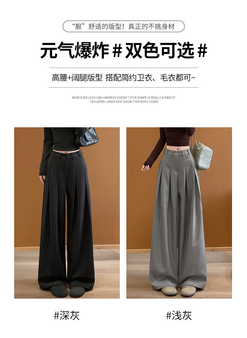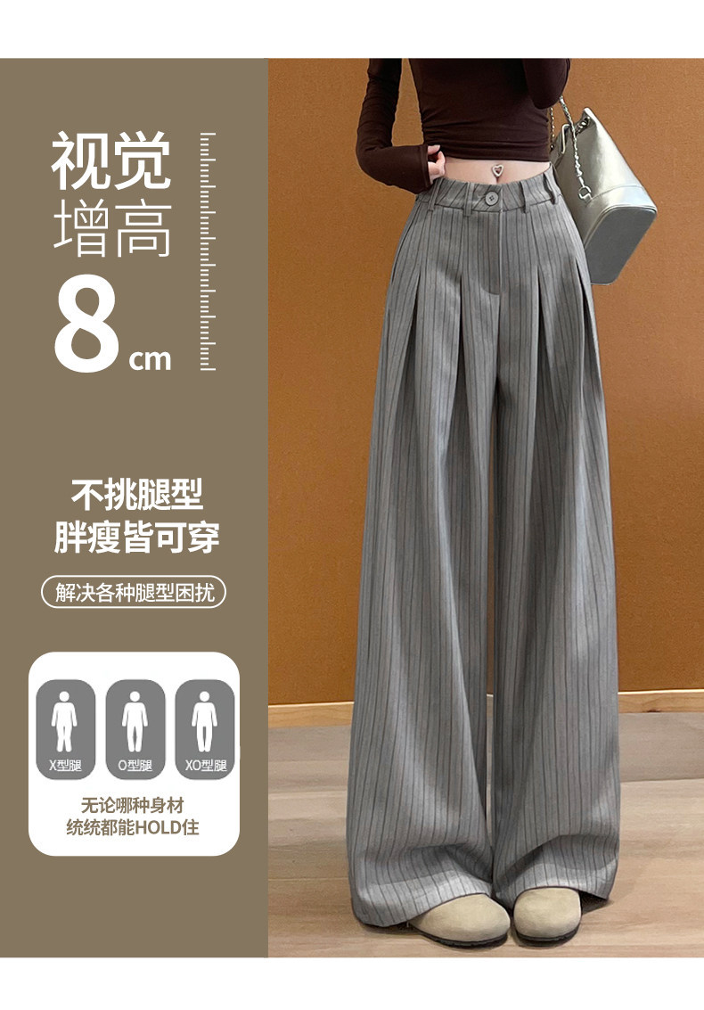 「老钱风~小众设计」条纹阔腿裤女春秋新款韩系设计感高腰显瘦垂坠感西装裤下装