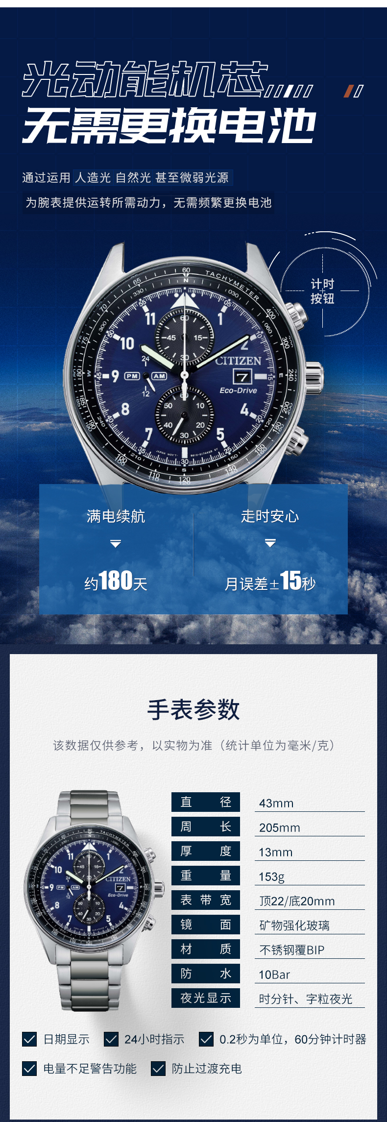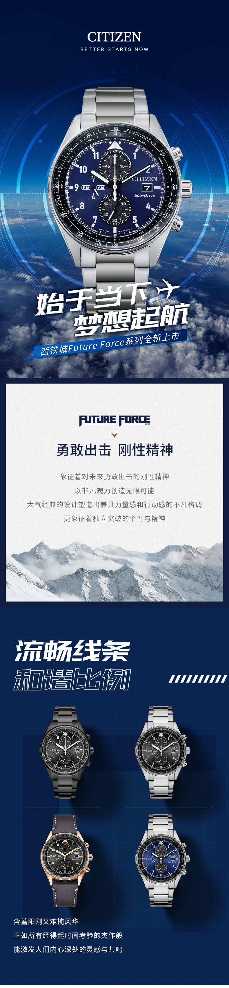 西铁城日本官方正品新款FF系列飞行风钢带光动能手表男CA0770-81L
