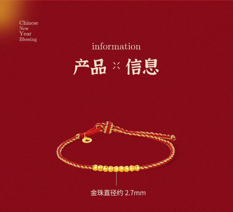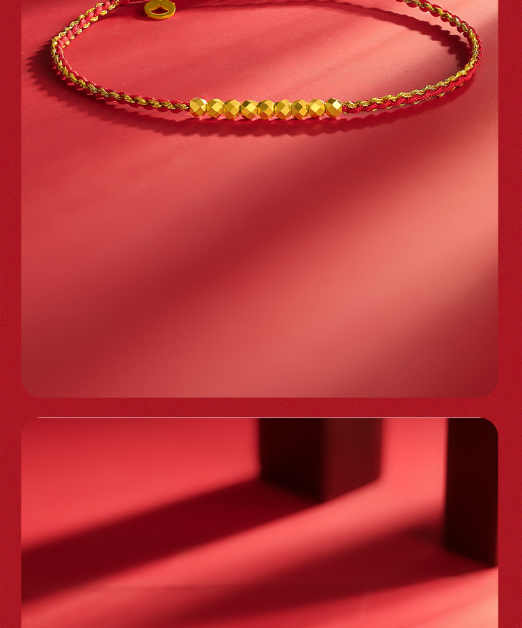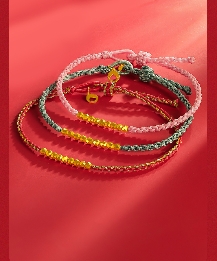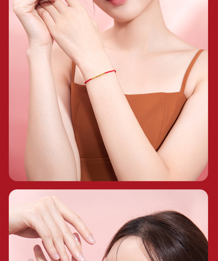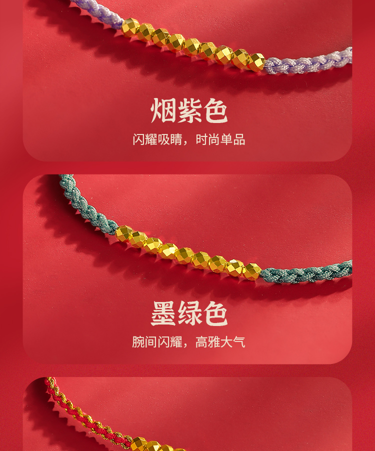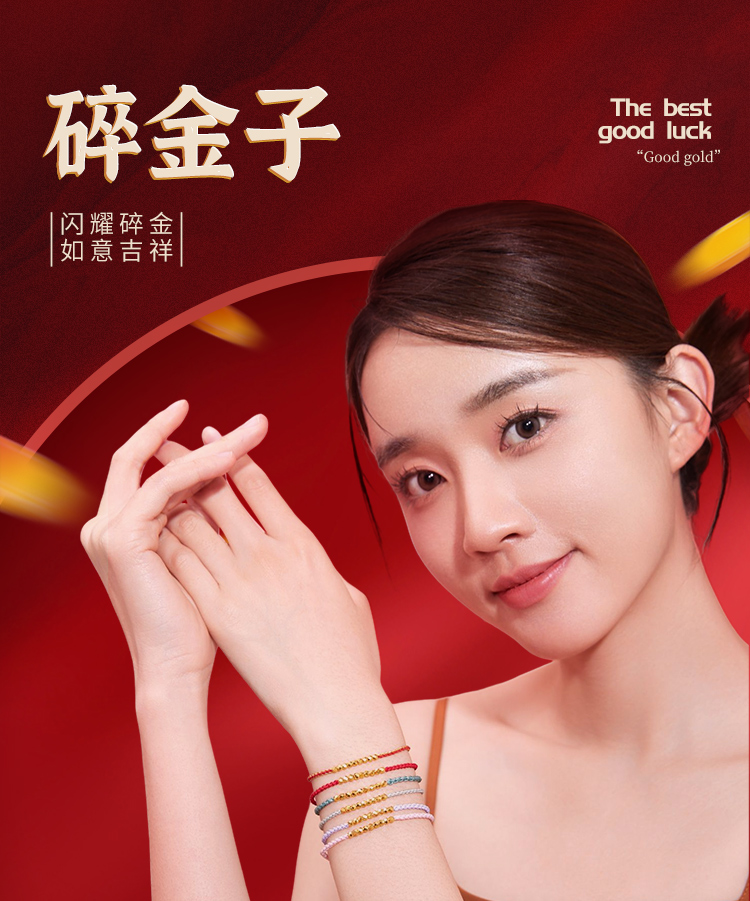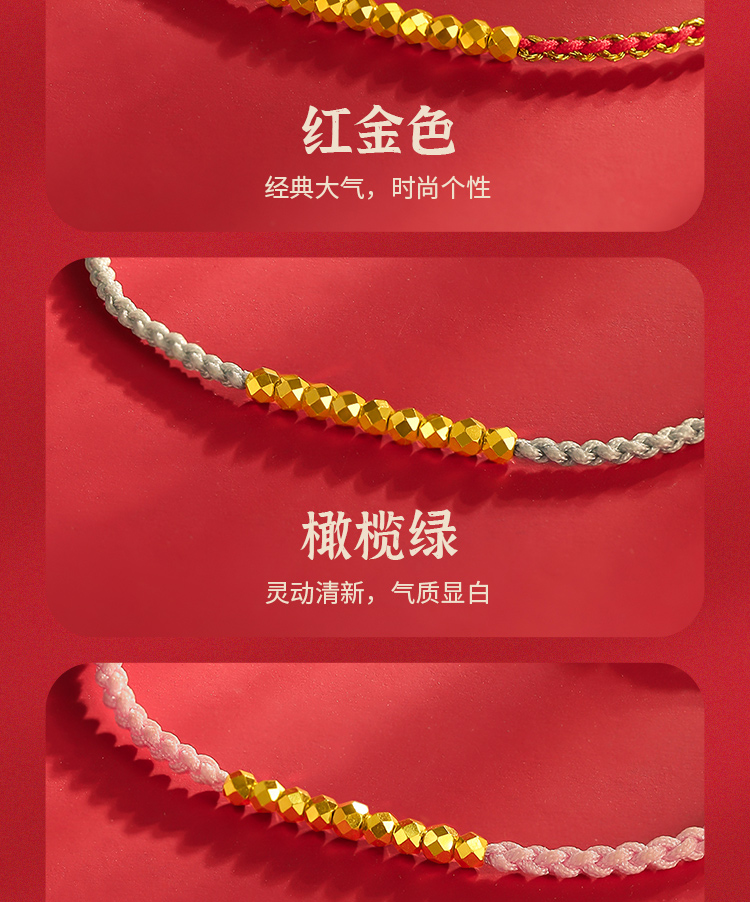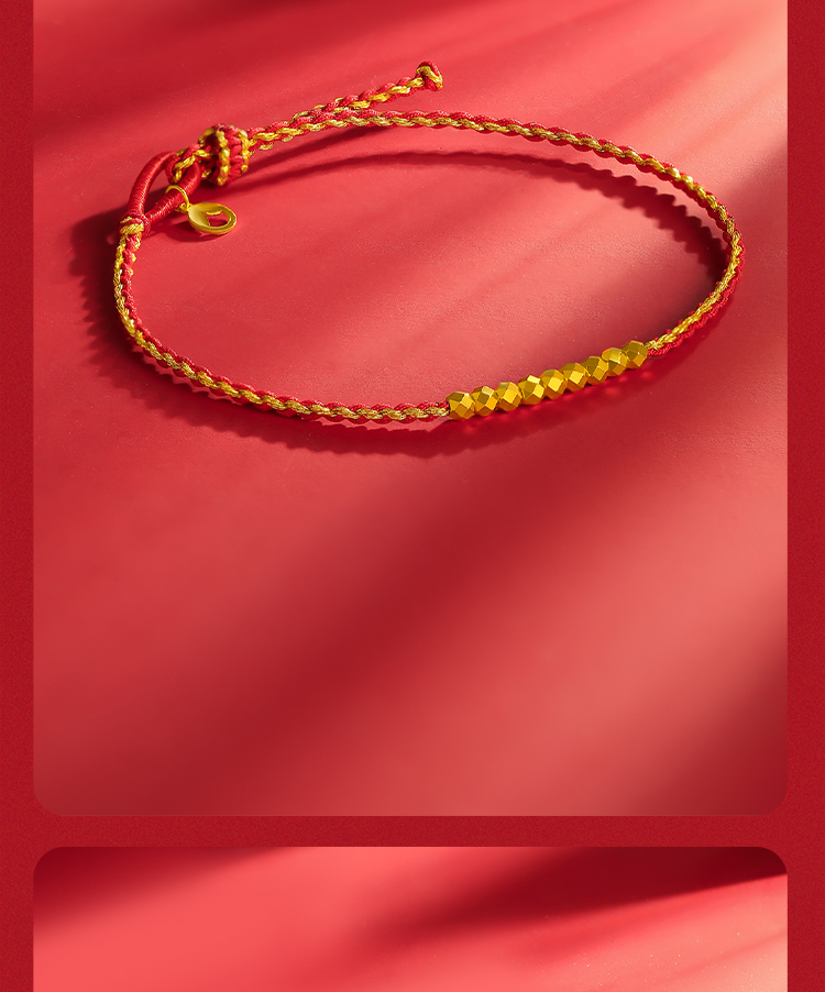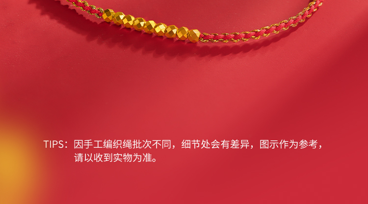 周六福黄金碎金子手链细手绳计价足金碎碎金情侣红手绳送女友礼物