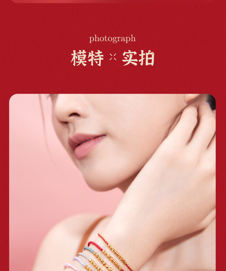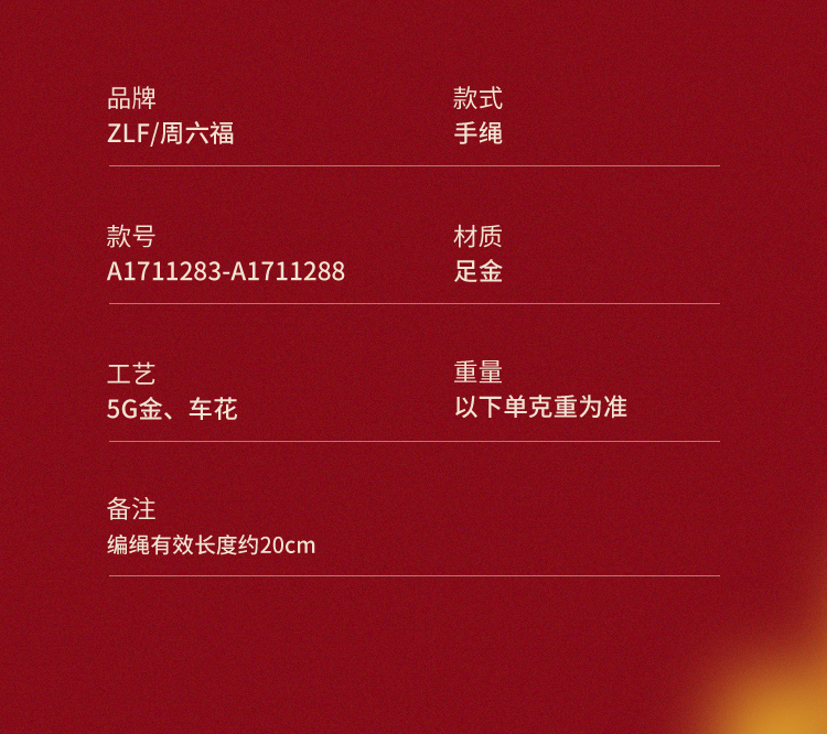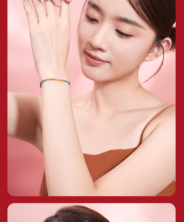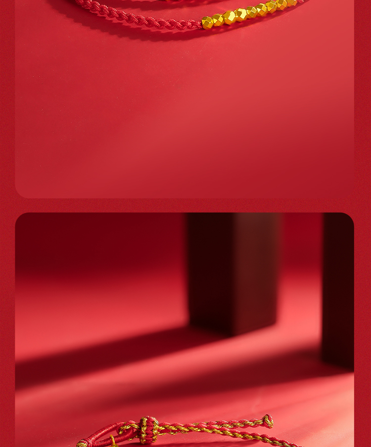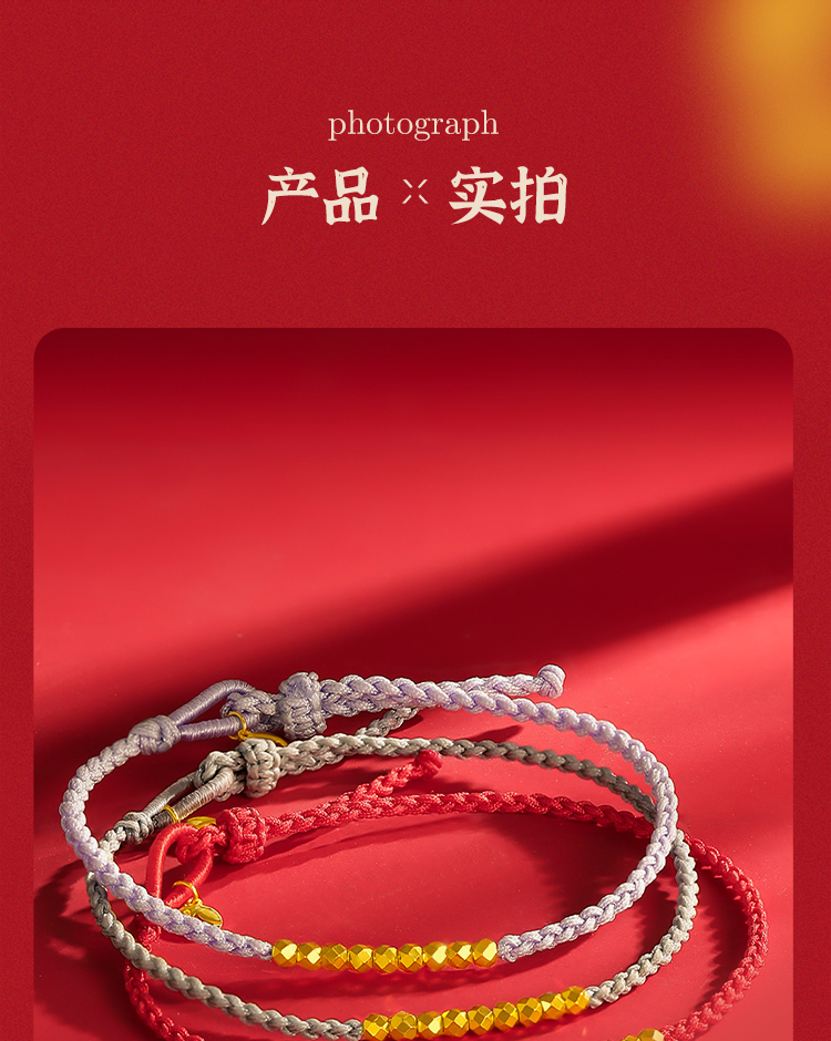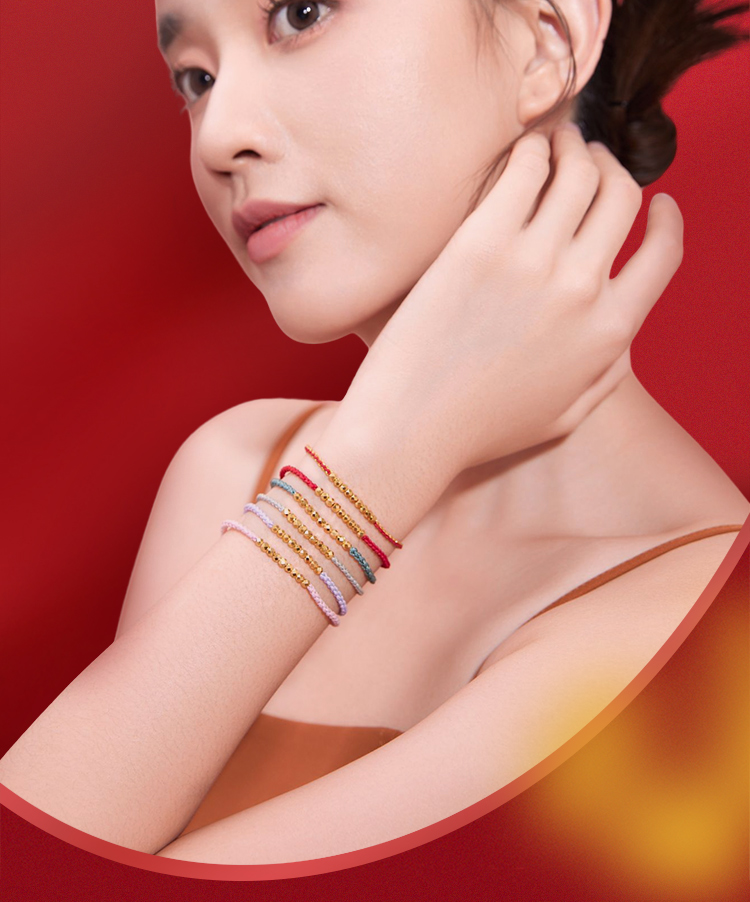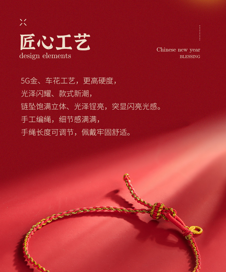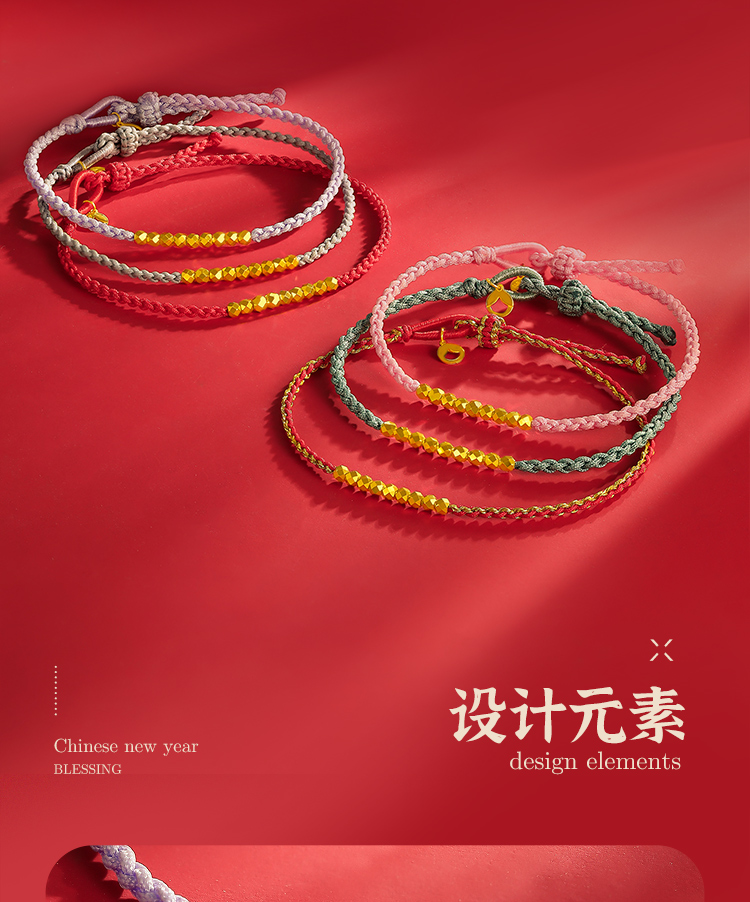 周六福黄金碎金子手链细手绳计价足金碎碎金情侣红手绳送女友礼物