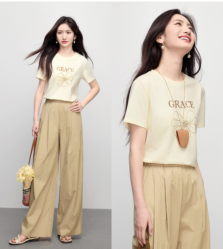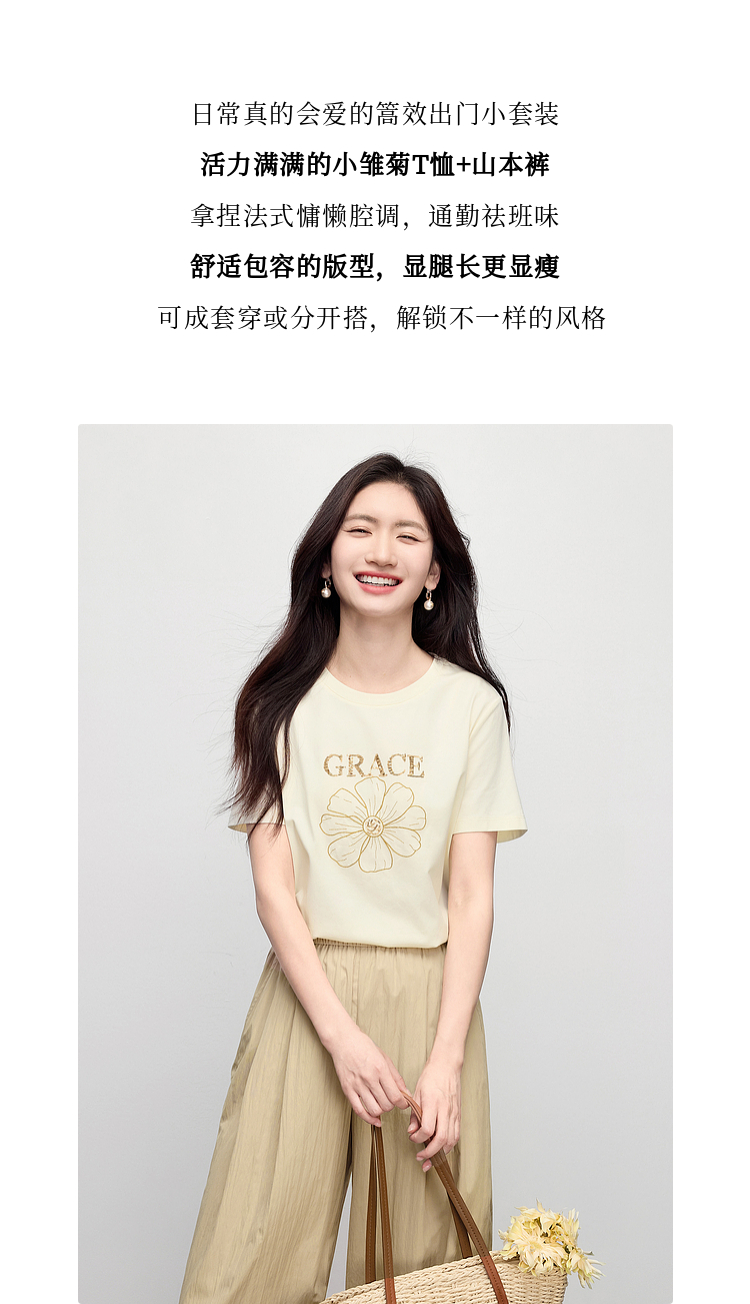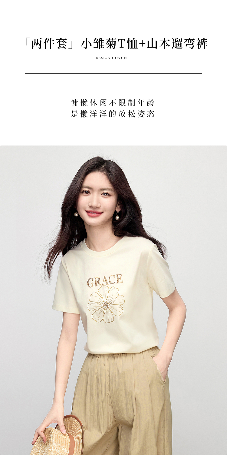 【周末秒杀】熙世界套装搭配一整套女夏日新款短袖小雏菊T恤休闲山本裤两件套