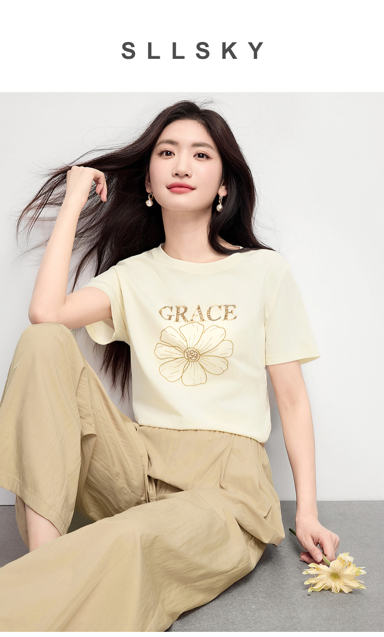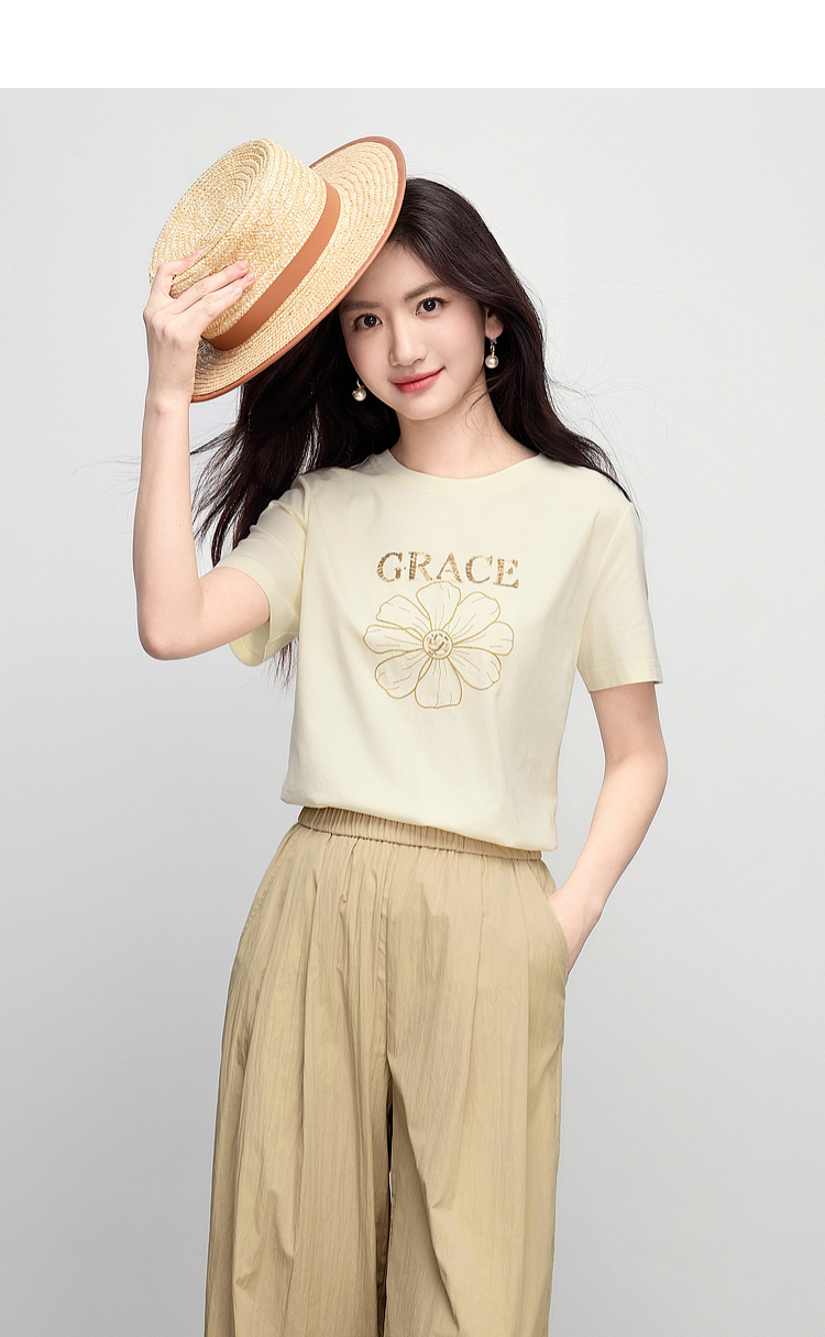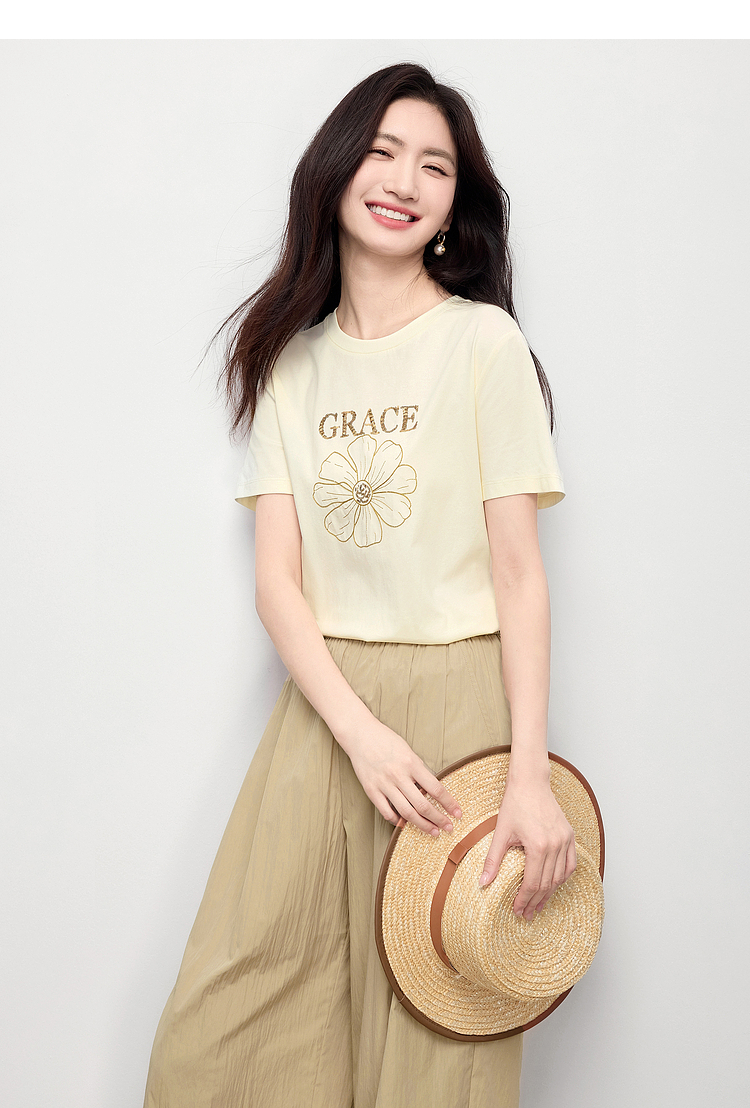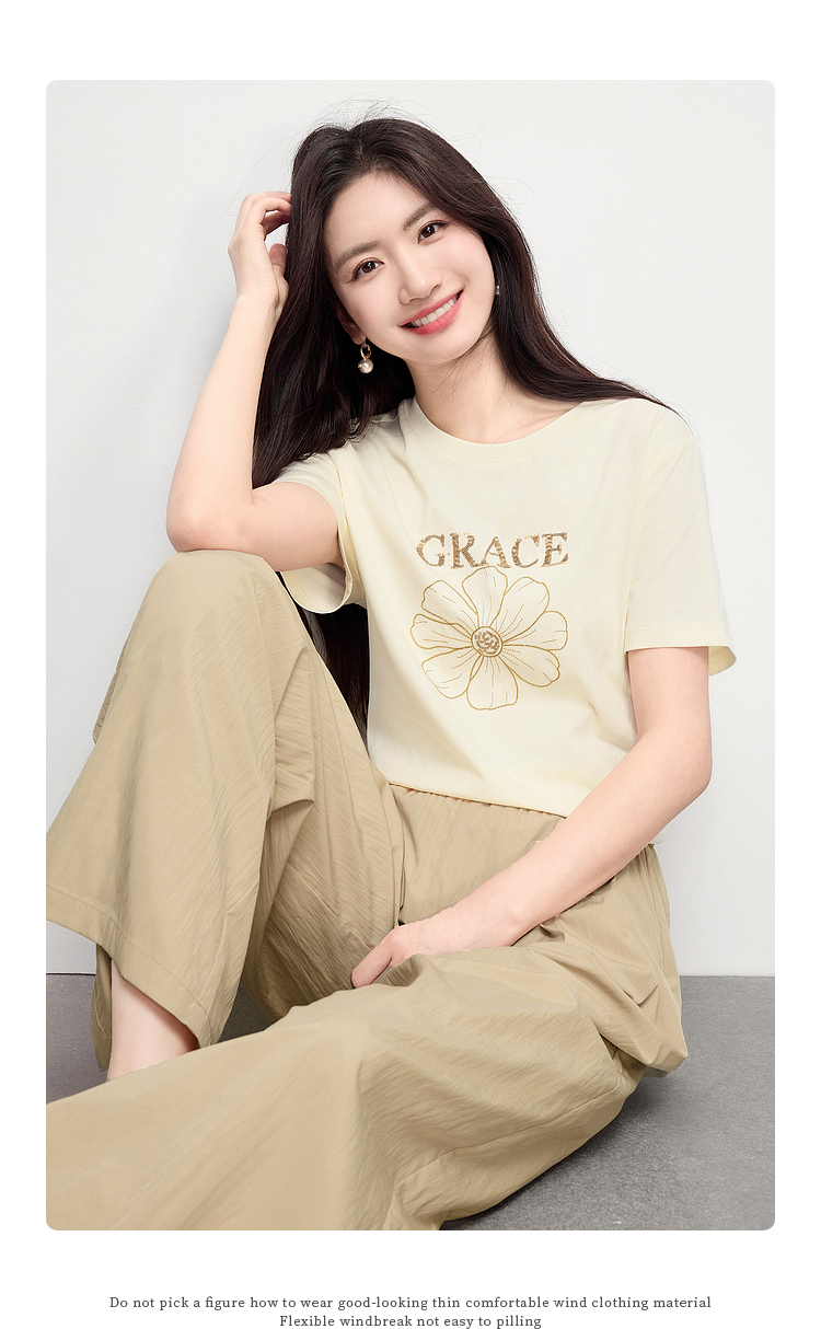 【周末秒杀】熙世界套装搭配一整套女夏日新款短袖小雏菊T恤休闲山本裤两件套