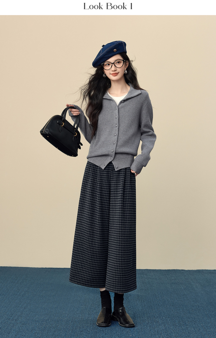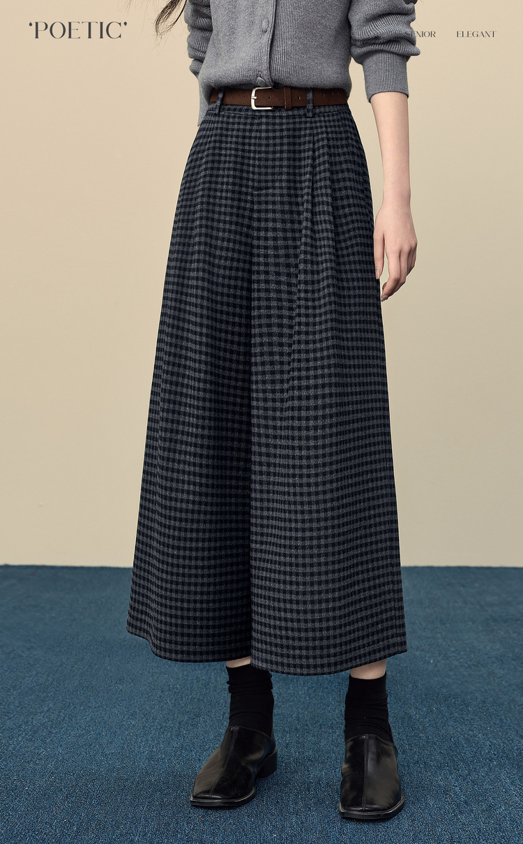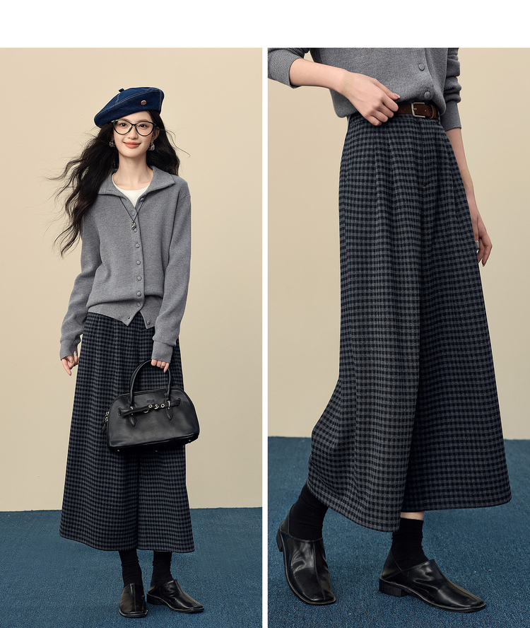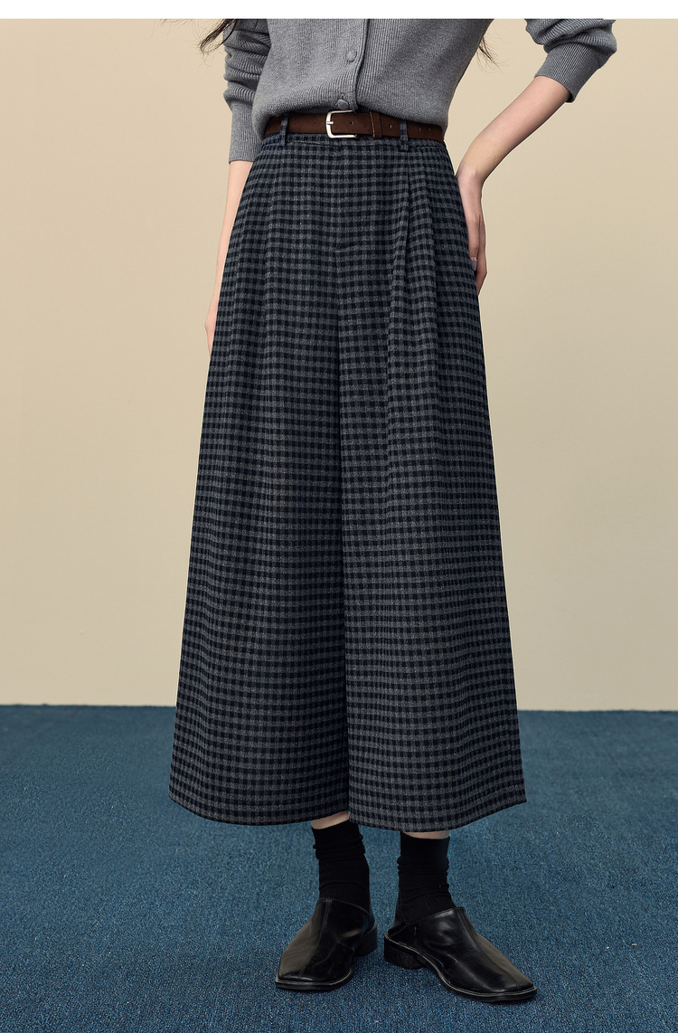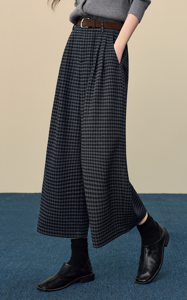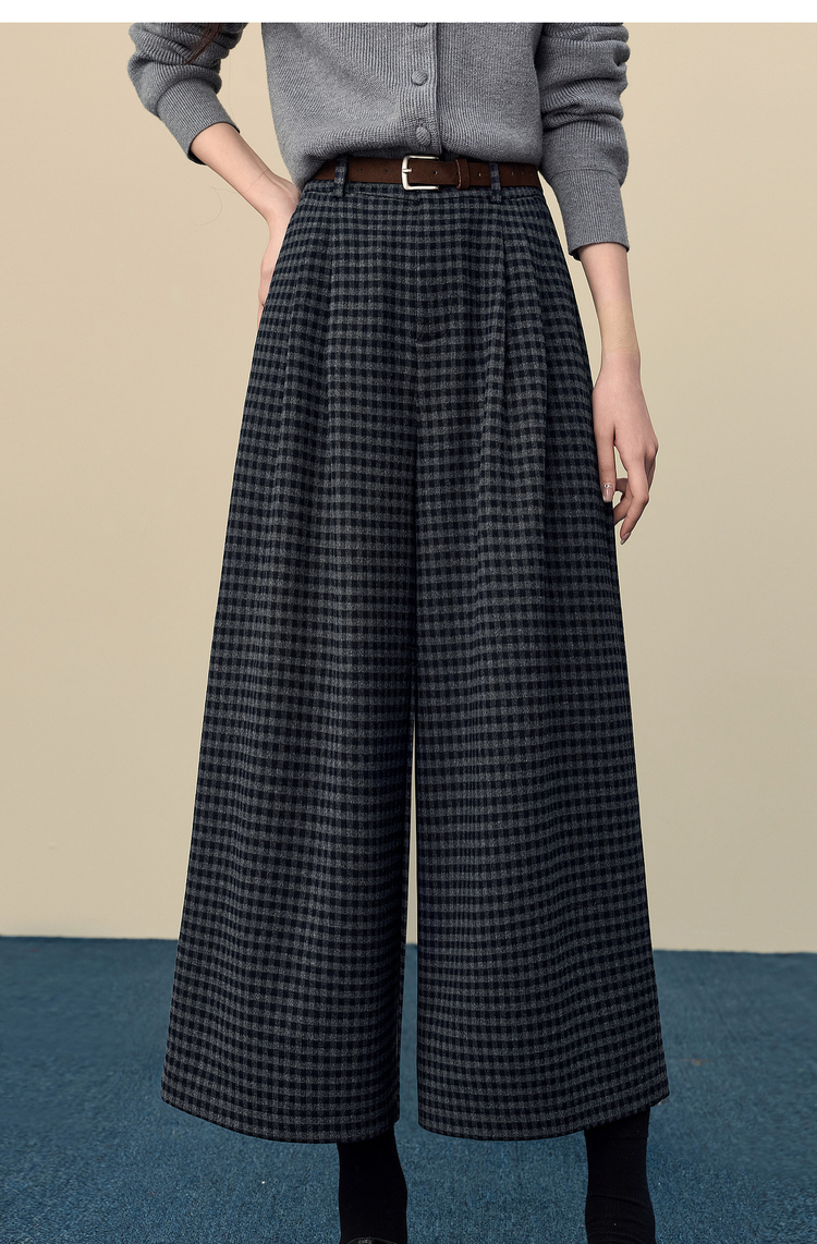 【12/17新品】熙世界松弛感复古格子毛呢阔腿裤女秋冬休闲宽松慵懒直筒八分裤子
