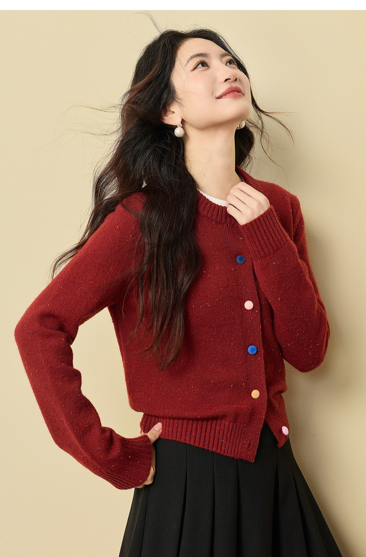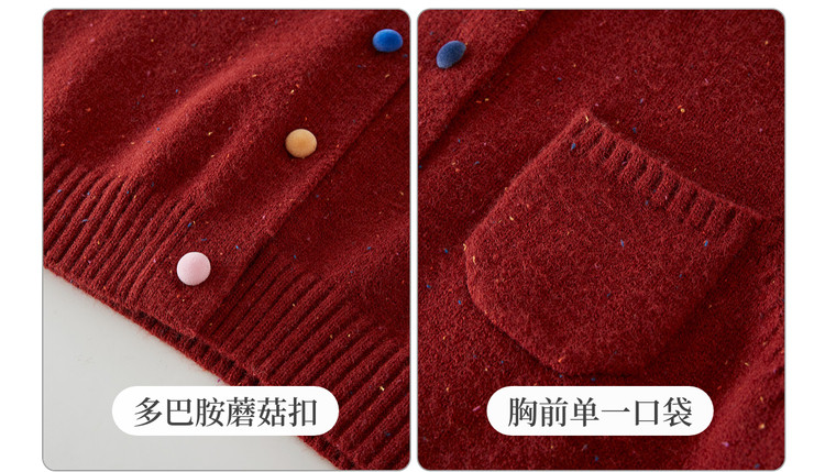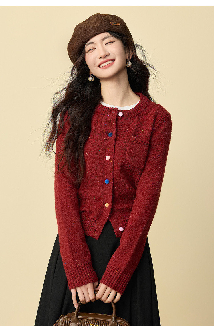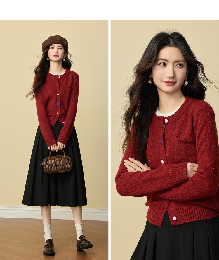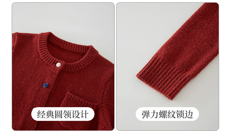 【12/24新品6.5折】熙世界圣诞氛围感红色毛衣开衫女长袖圆领针织短外套2025秋冬新款