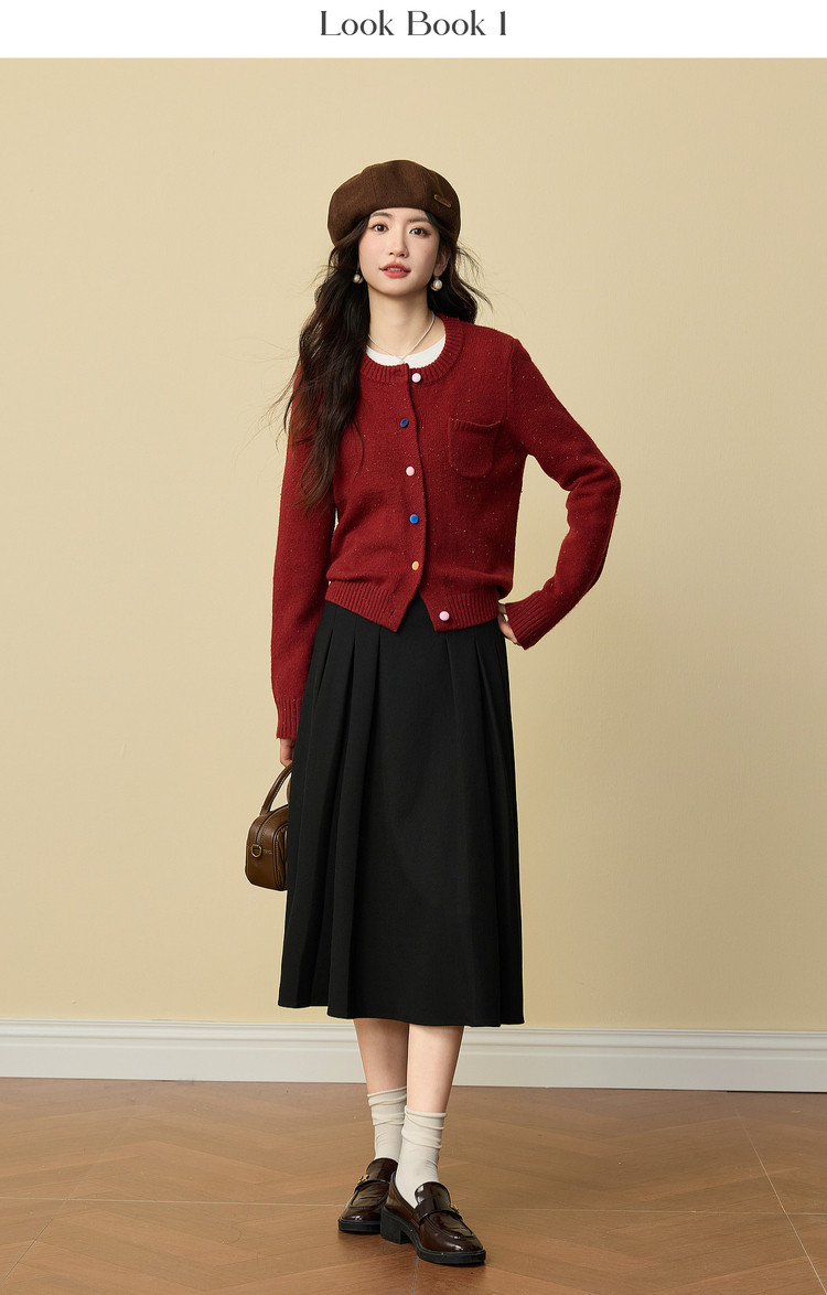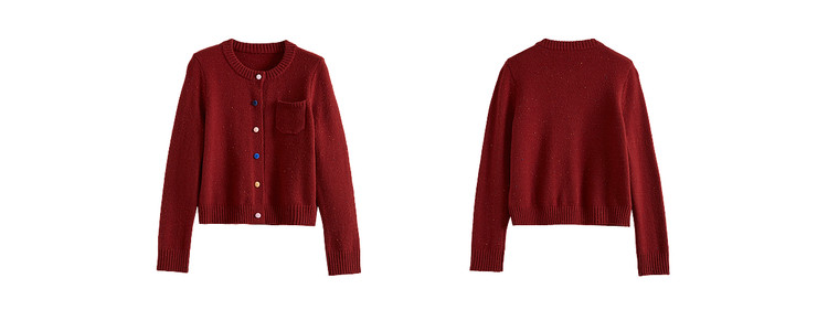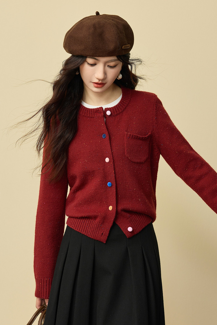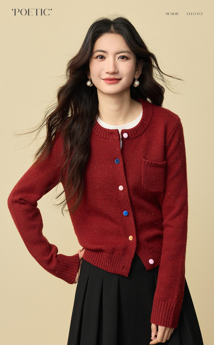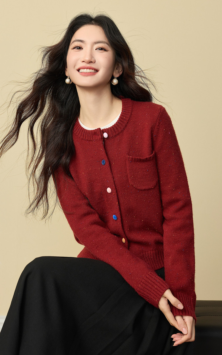 【12/24新品6.5折】熙世界圣诞氛围感红色毛衣开衫女长袖圆领针织短外套2025秋冬新款