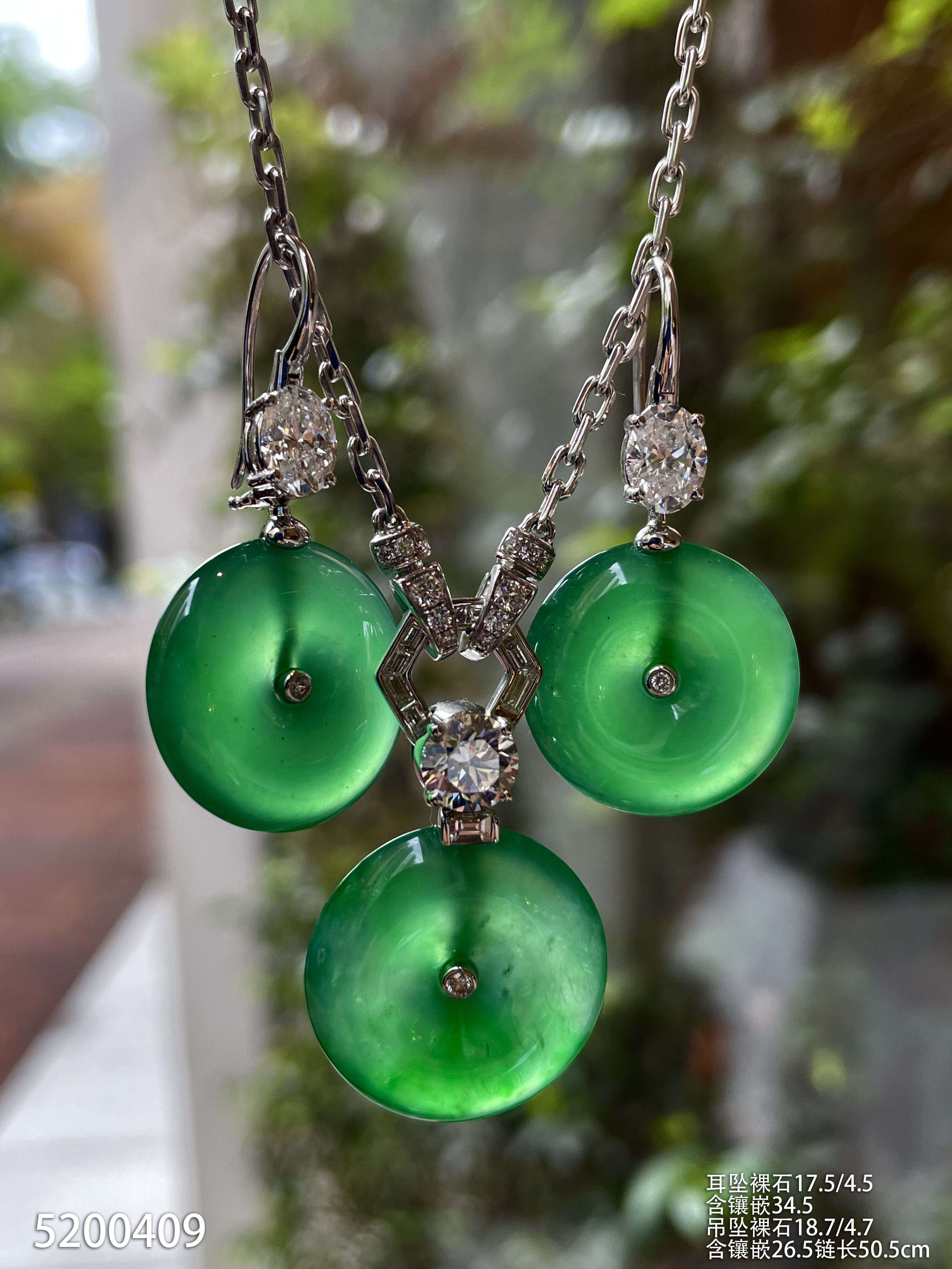 玻璃种木那艳绿平安扣套装【5200409】具体价格微信咨询