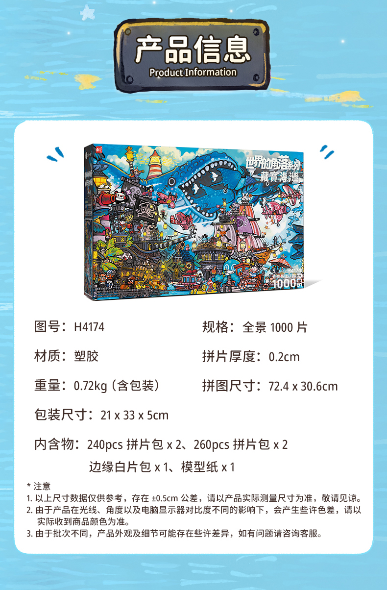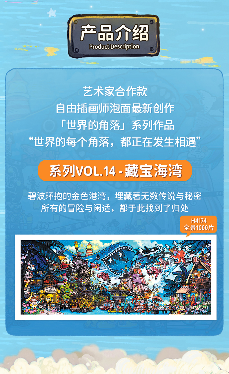 1000片 平面塑料拼图 H4174 全景长版拼图-泡面-世界的角落系列-藏宝海湾