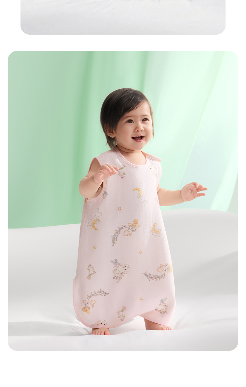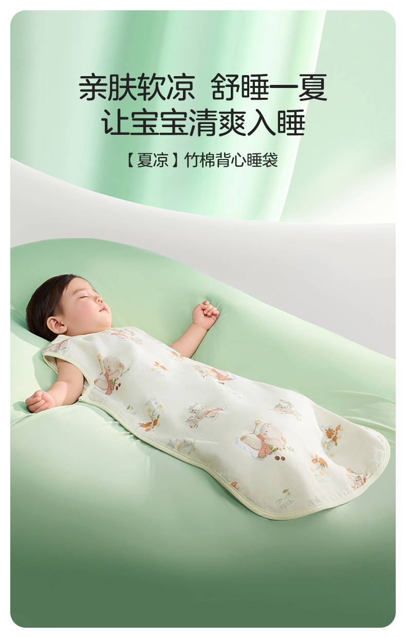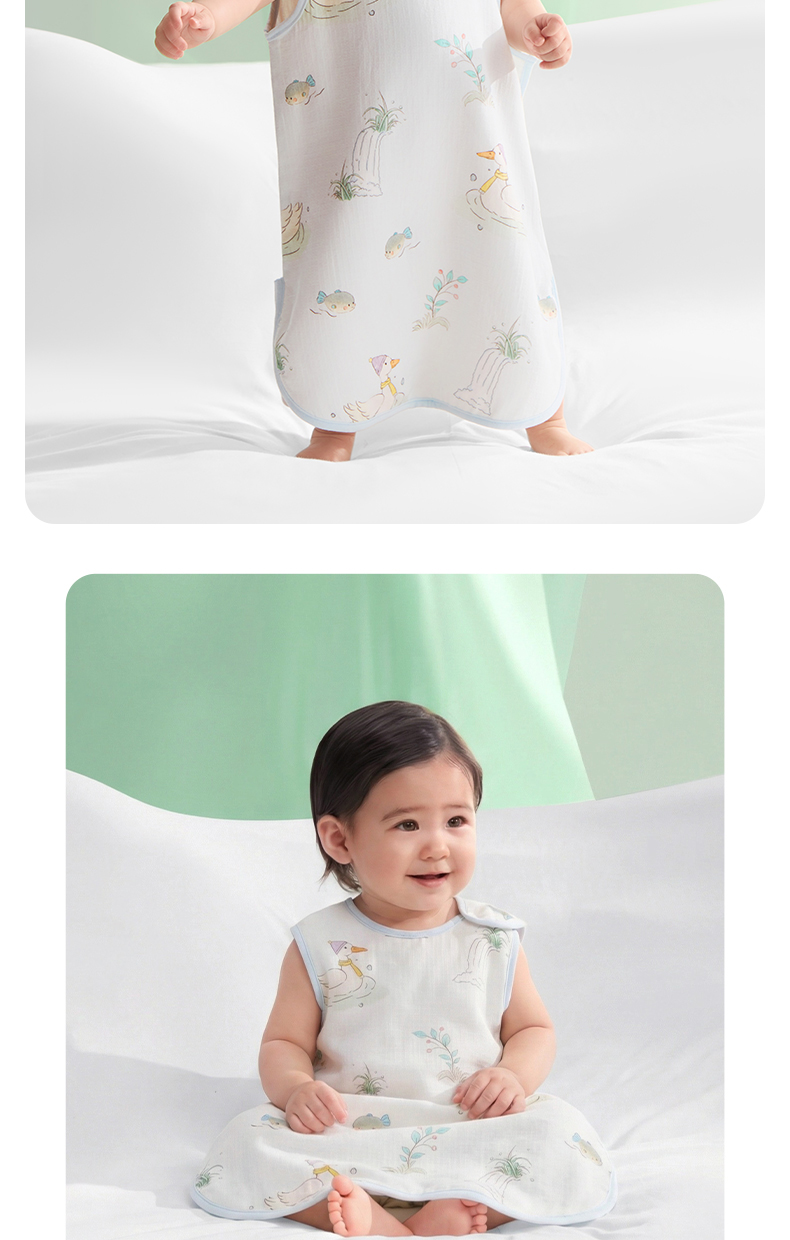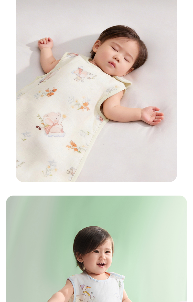 婴儿竹棉背心睡袋春夏季透气幼儿一体式宝宝分腿式防踢被