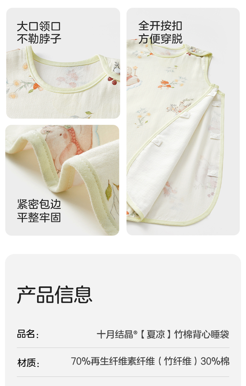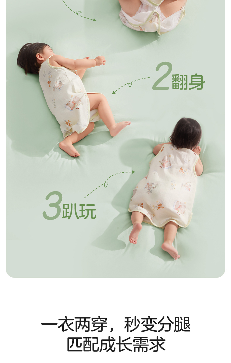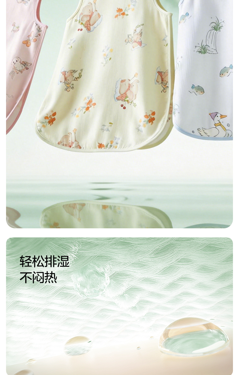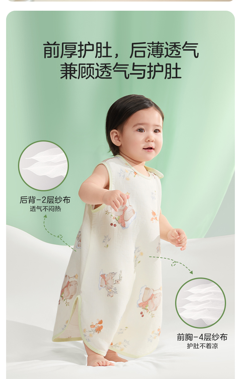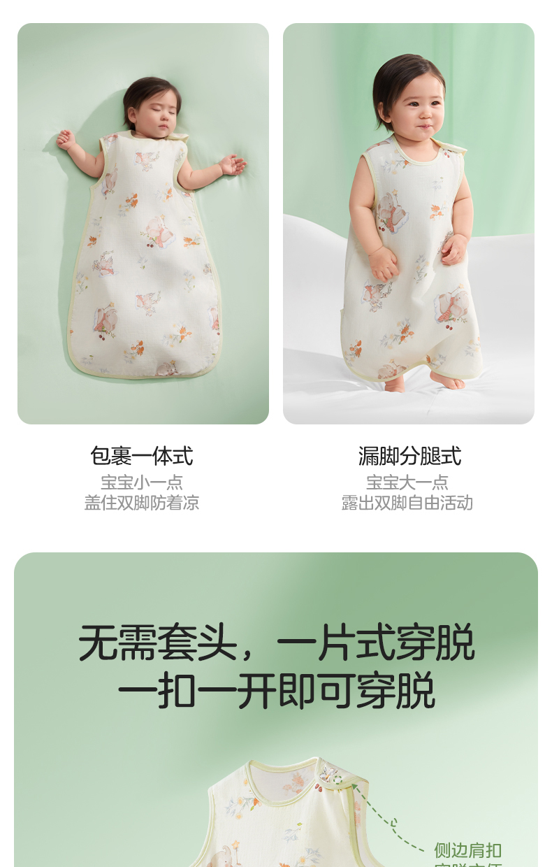 婴儿竹棉背心睡袋春夏季透气幼儿一体式宝宝分腿式防踢被