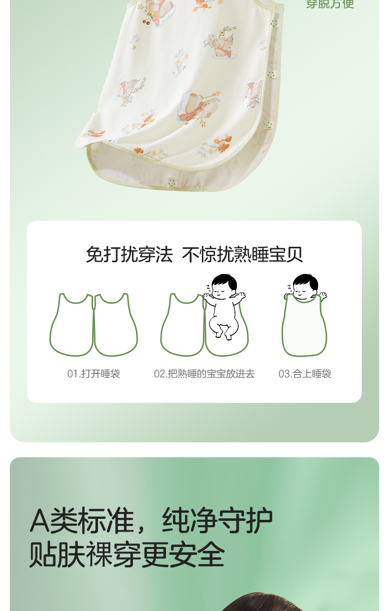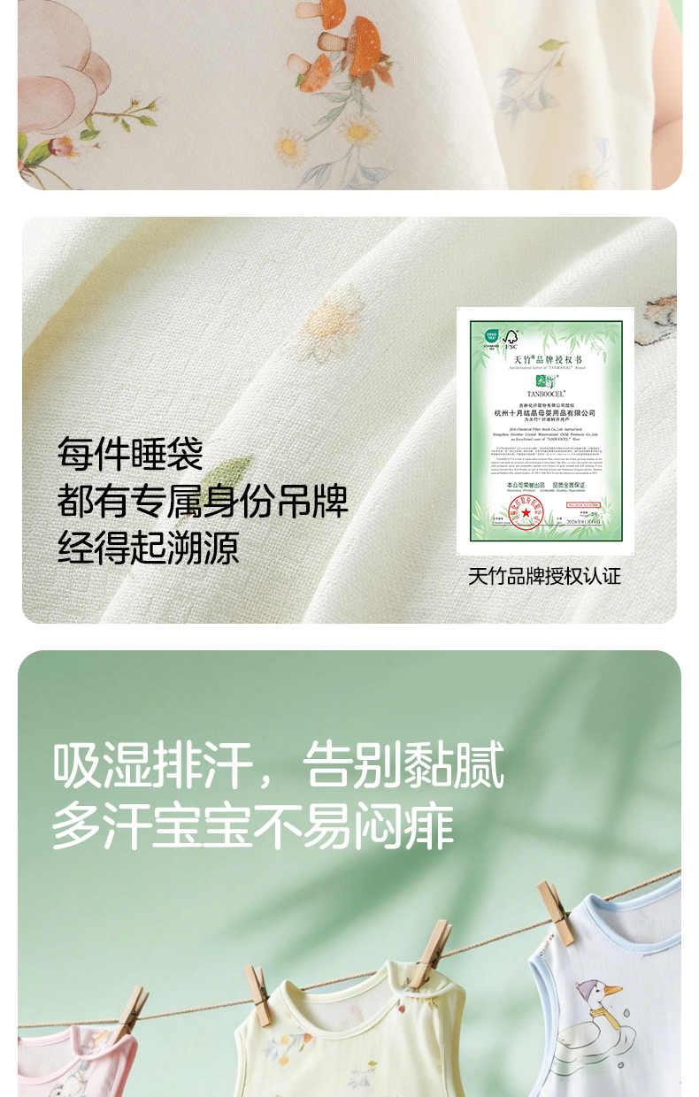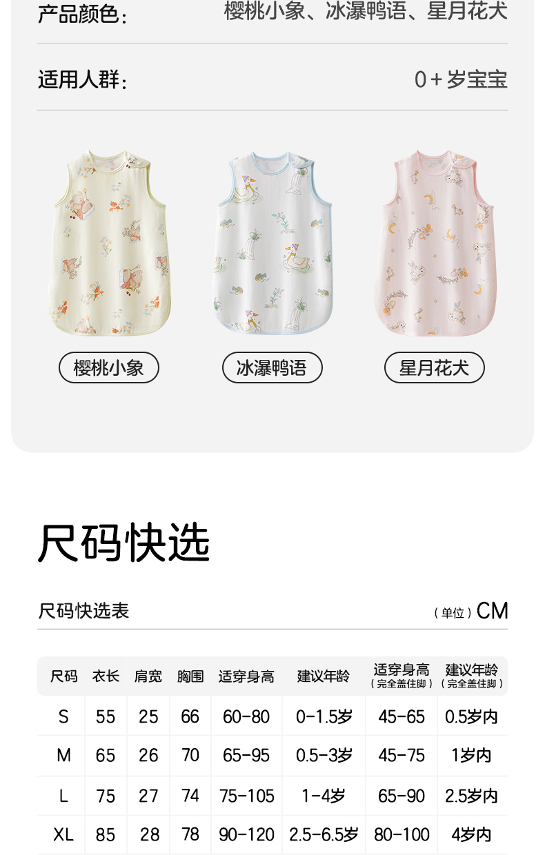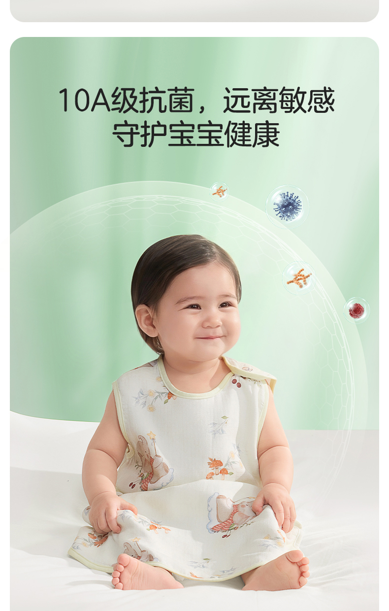 婴儿竹棉背心睡袋春夏季透气幼儿一体式宝宝分腿式防踢被