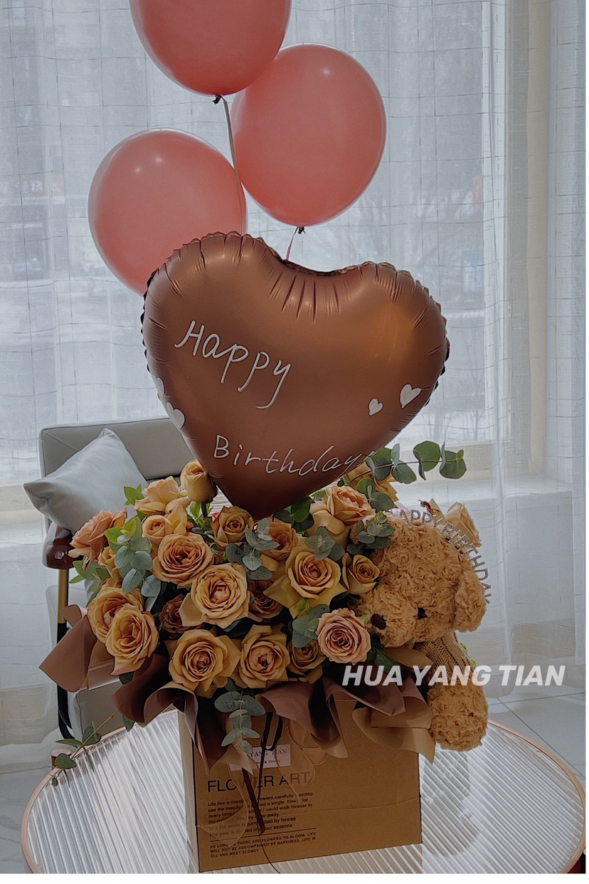 小熊牵着彩色的气球