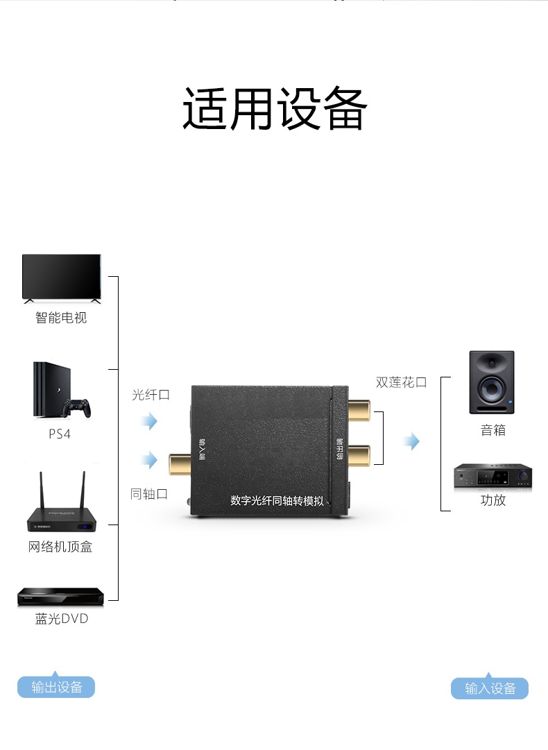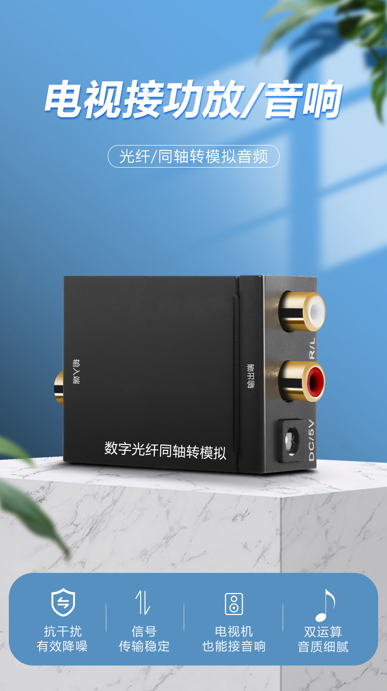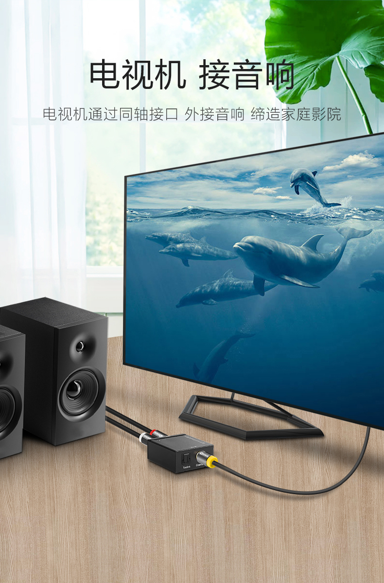 同轴光纤音频转换器数字模拟信号双莲花线一分二电视显示器接音响射频输出spdif适用于海信/小米ps4
