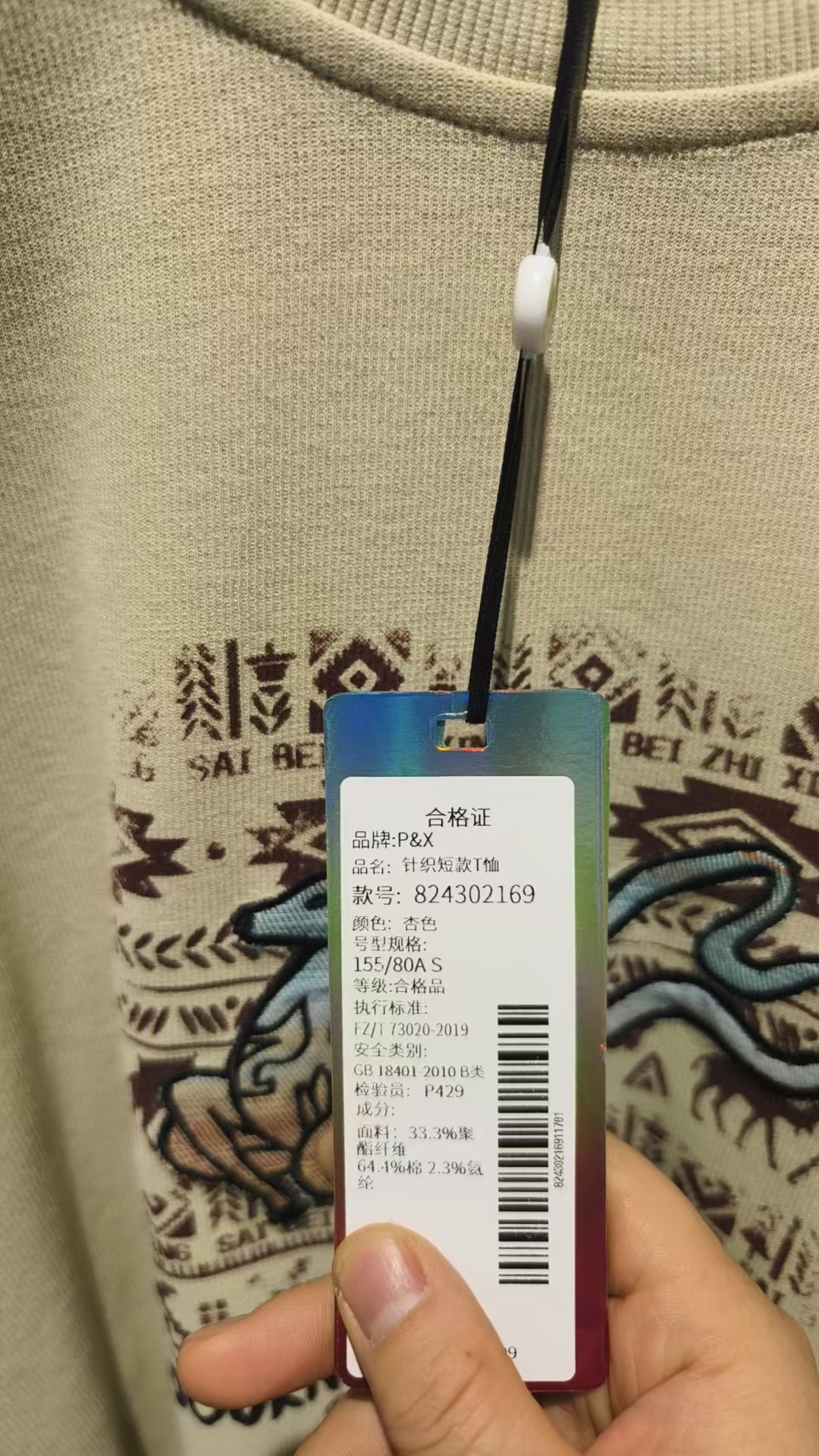 P&X设计师女装 针织短款T恤 杏色 824302169