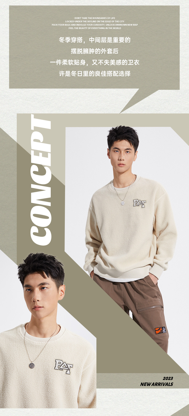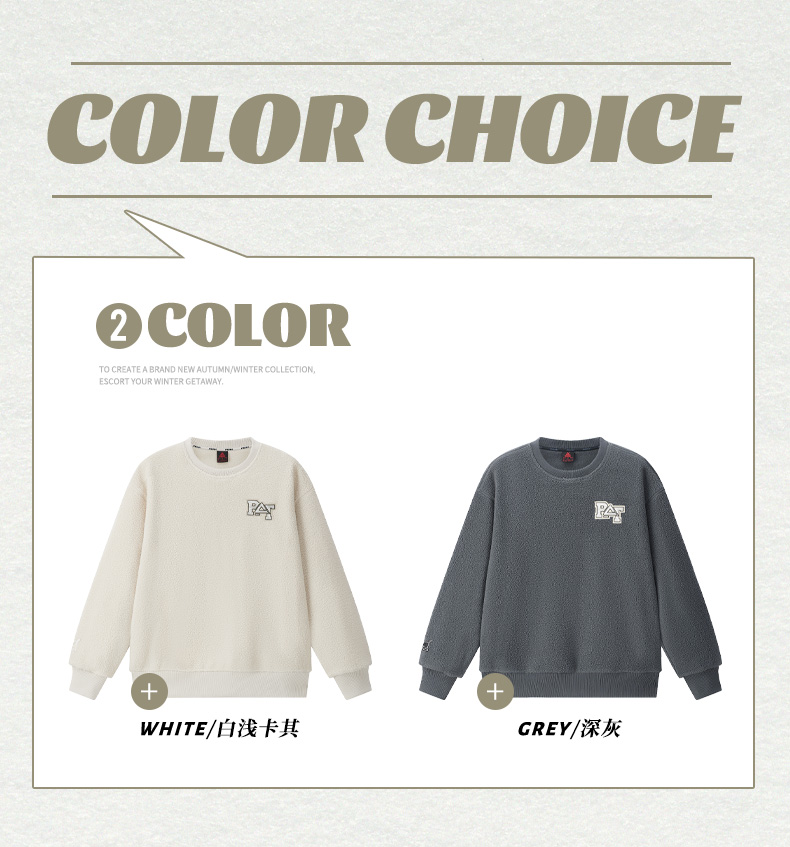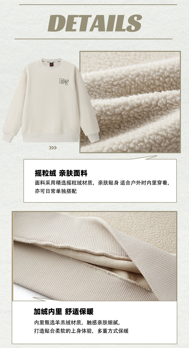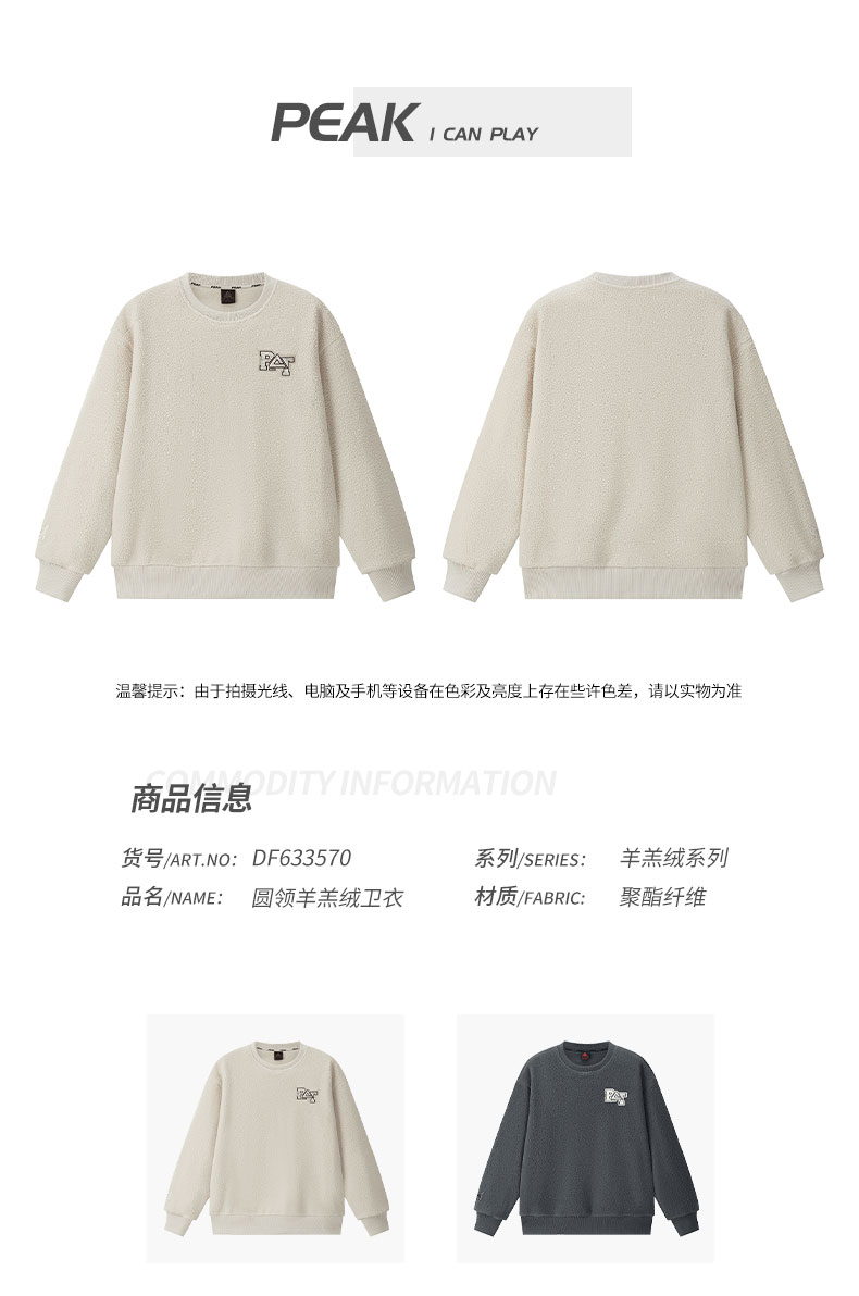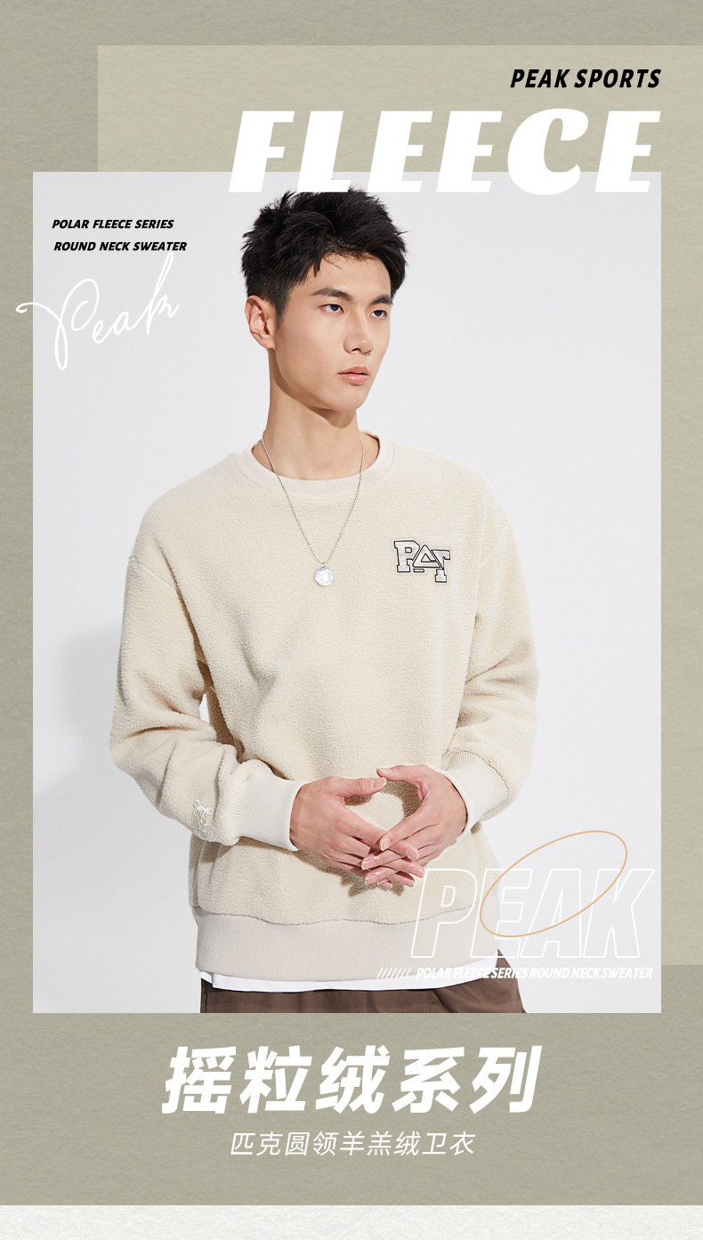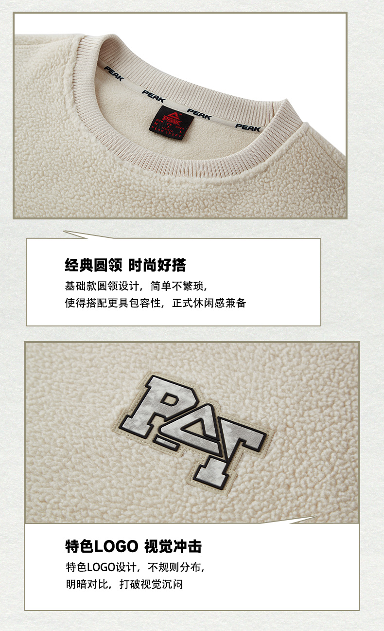 匹克2023秋季新款时尚生活圆领羊羔绒卫衣DF633570