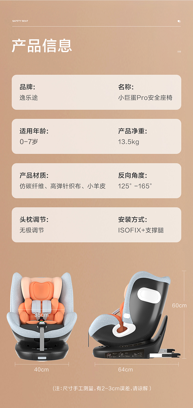 elittle逸乐途小巨蛋pro儿童安全座椅0-7岁汽车用360度旋转宝宝车载