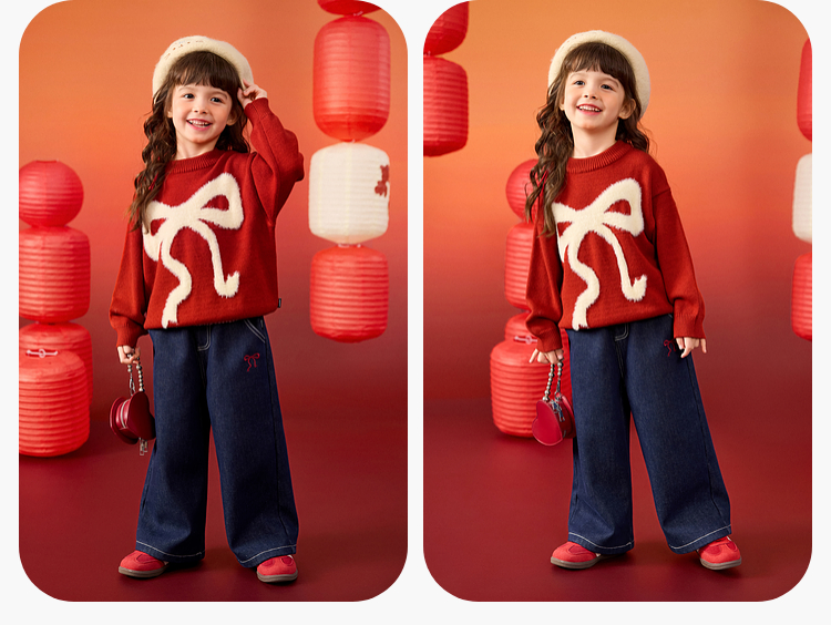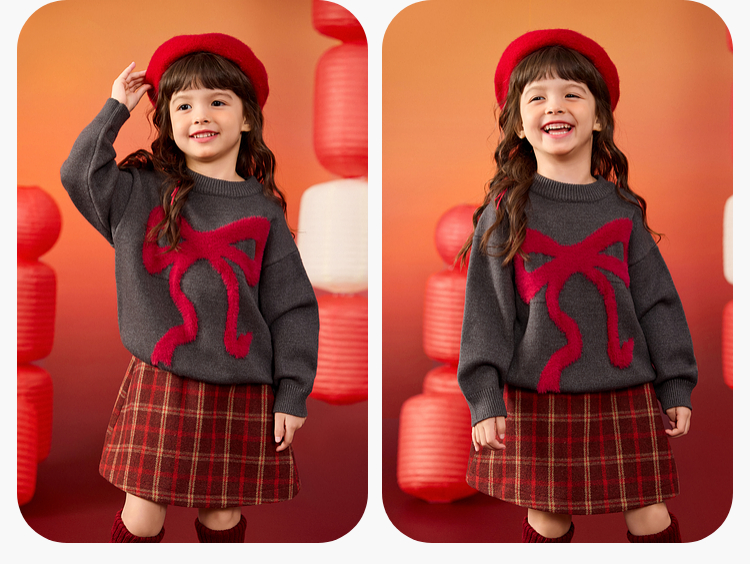 嘟嘟家女童毛衣女孩红色洋气拜年服女宝新年衣服宝宝过年童装衣服★