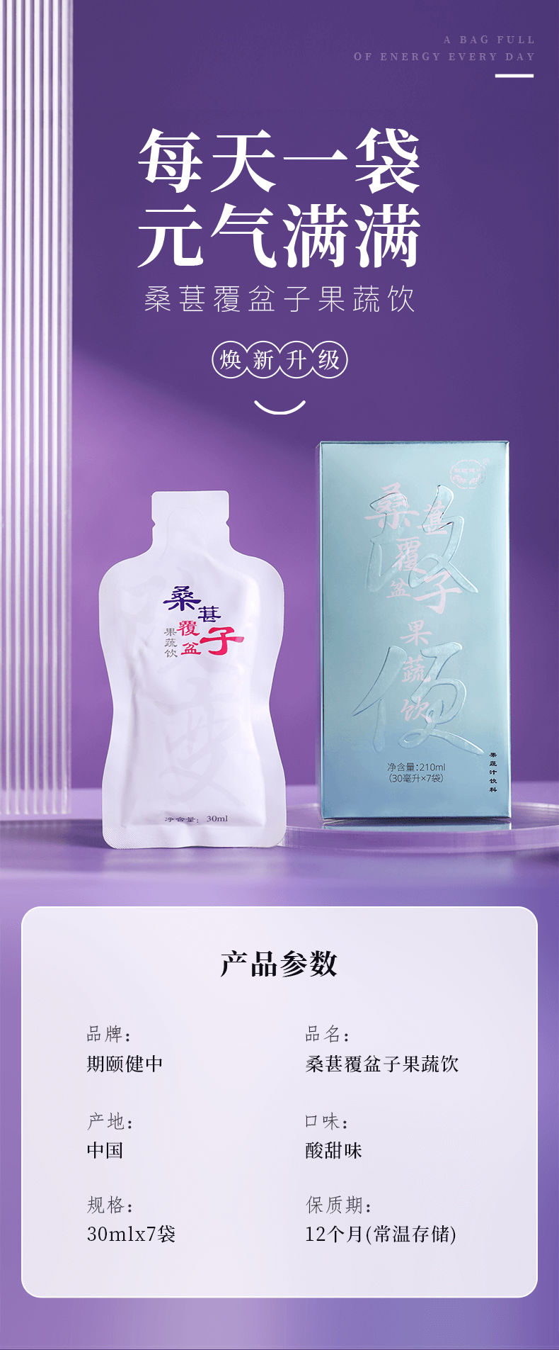 桑葚覆盆子果蔬饮 30毫升*7袋/盒