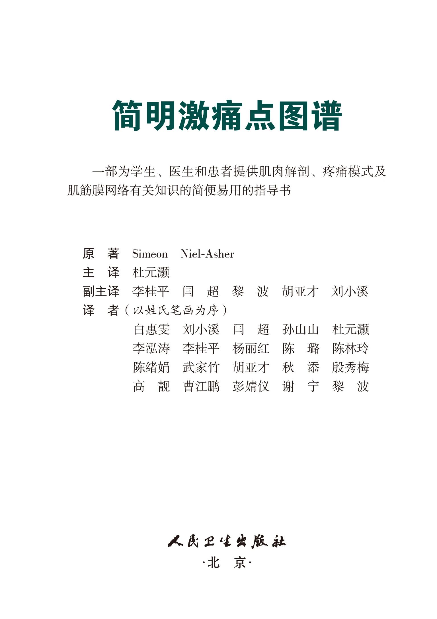 本书系肌筋膜激痛点专著的畅销书作者——英国的Simeon Niel-Asher所著,是该领域的权威著作。全书共7章,第1章简明扼要地介绍了激痛点的形成诱因、症状、分类,以及与筋膜、肌筋膜经线的关系等内容,为学习者奠定激痛点的基础知识。第2~7章则按照不同部位肌肉分别介绍了肌肉的起止点、神经支配、作用,以及激痛点诱因、引传痛模式、鉴别诊断、激痛点主治、关联性激痛点等基本知识。本书图文并茂,知识点简明,重点突出,易于掌握,是一部为医学院校学生、临床医生和患者提供肌筋膜激痛点有关诊疗知识的简便易用的参考书。