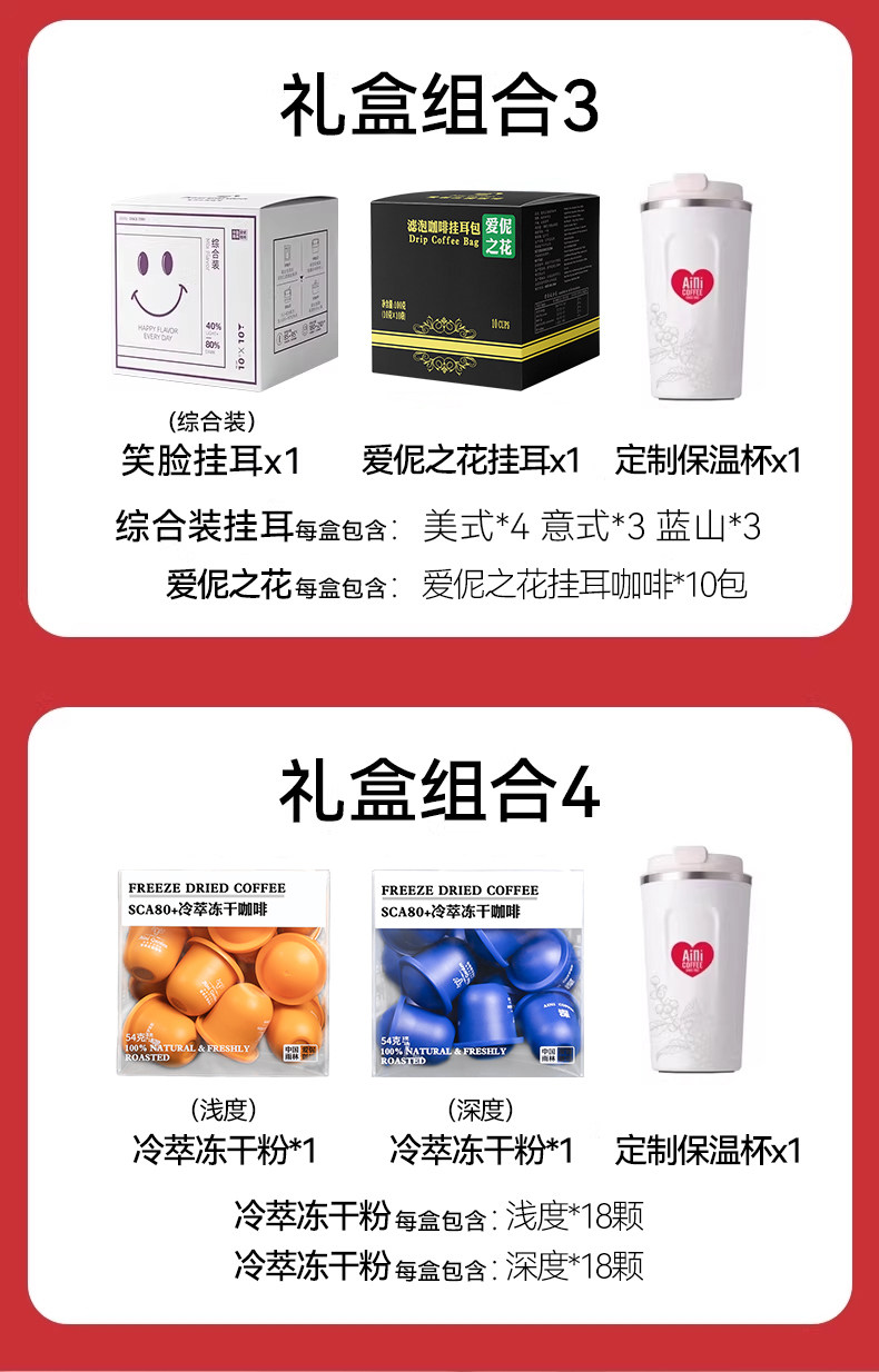 爱伲庄园 咖啡年货礼盒 挂耳/冻干咖啡 4组可选