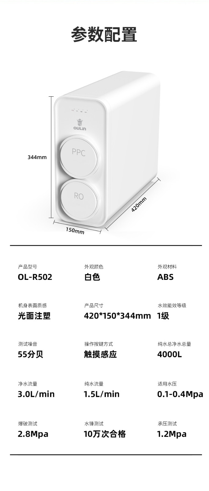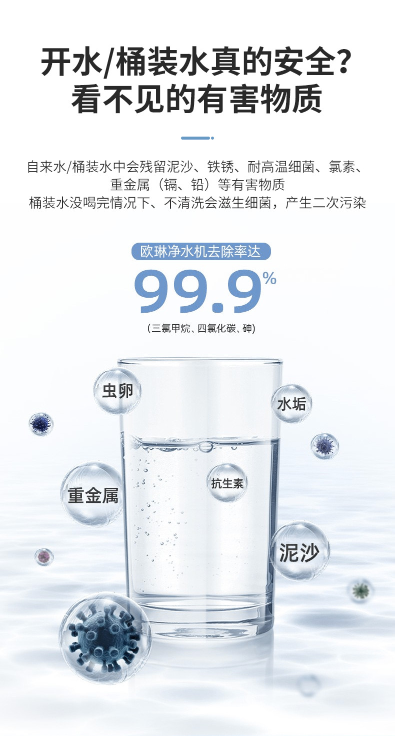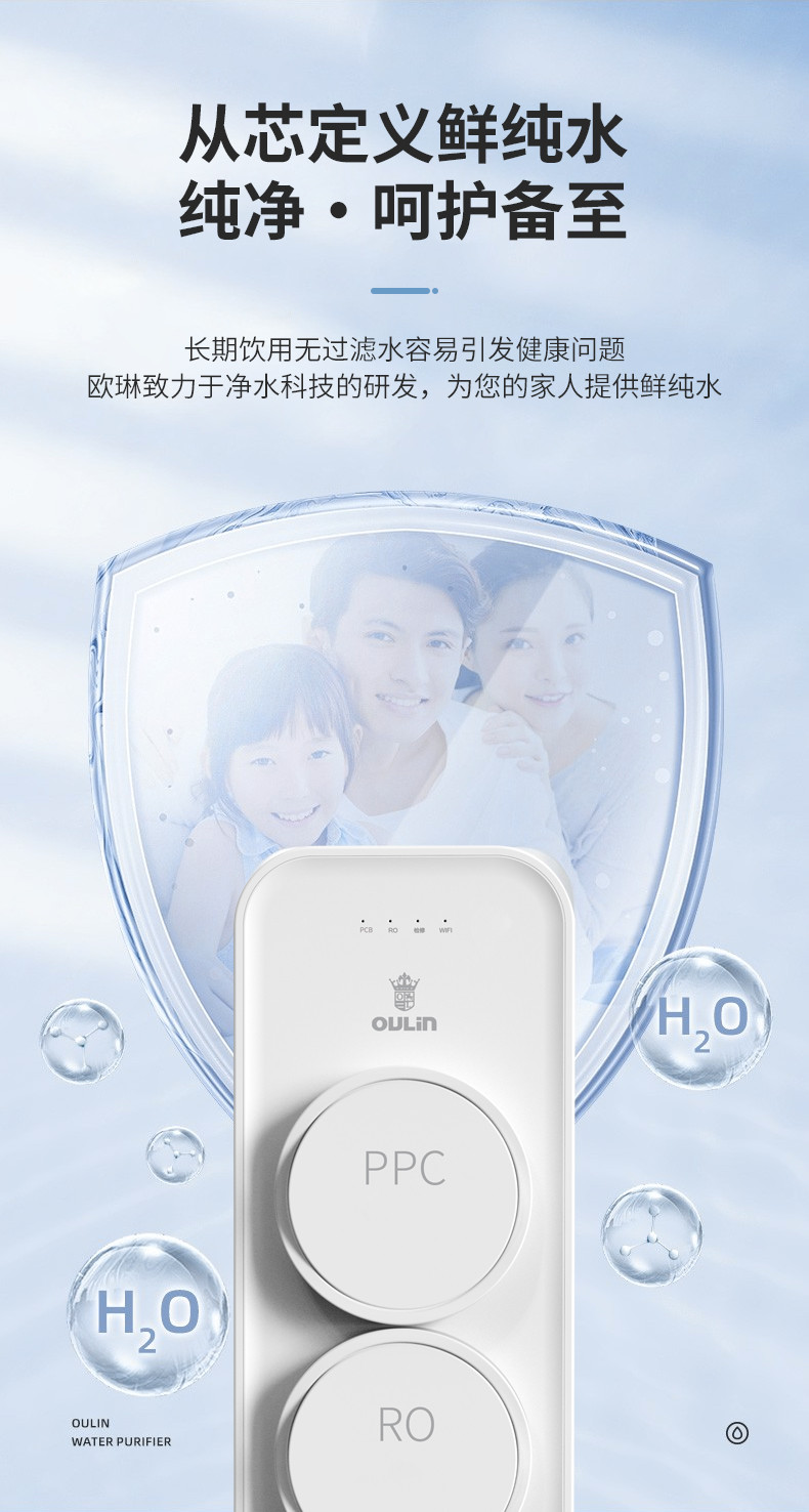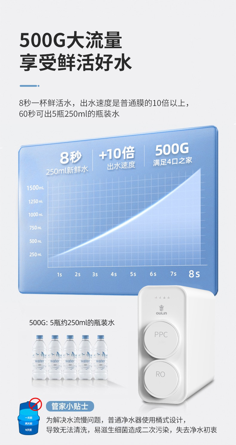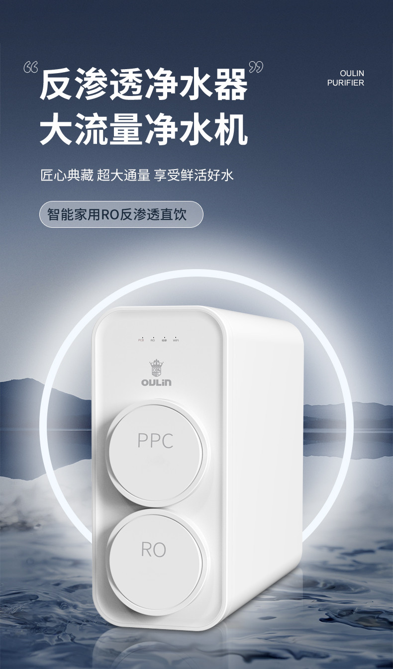 欧琳(OULIN) 家用厨下式净水器 RO反渗透 无桶大通量纯水机 直饮机 500G纯水机