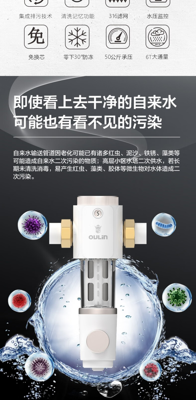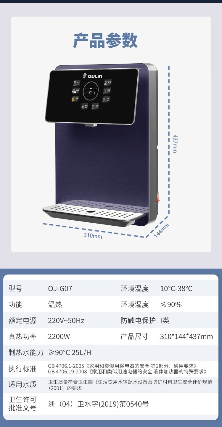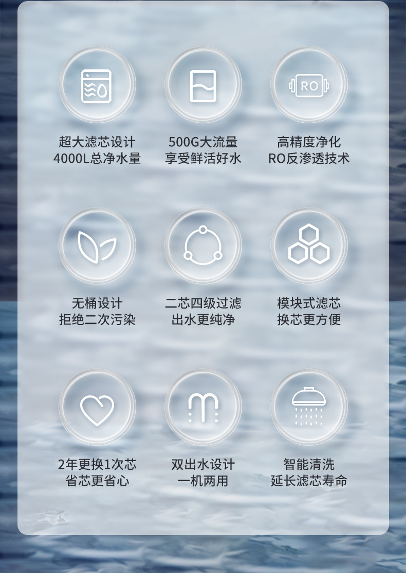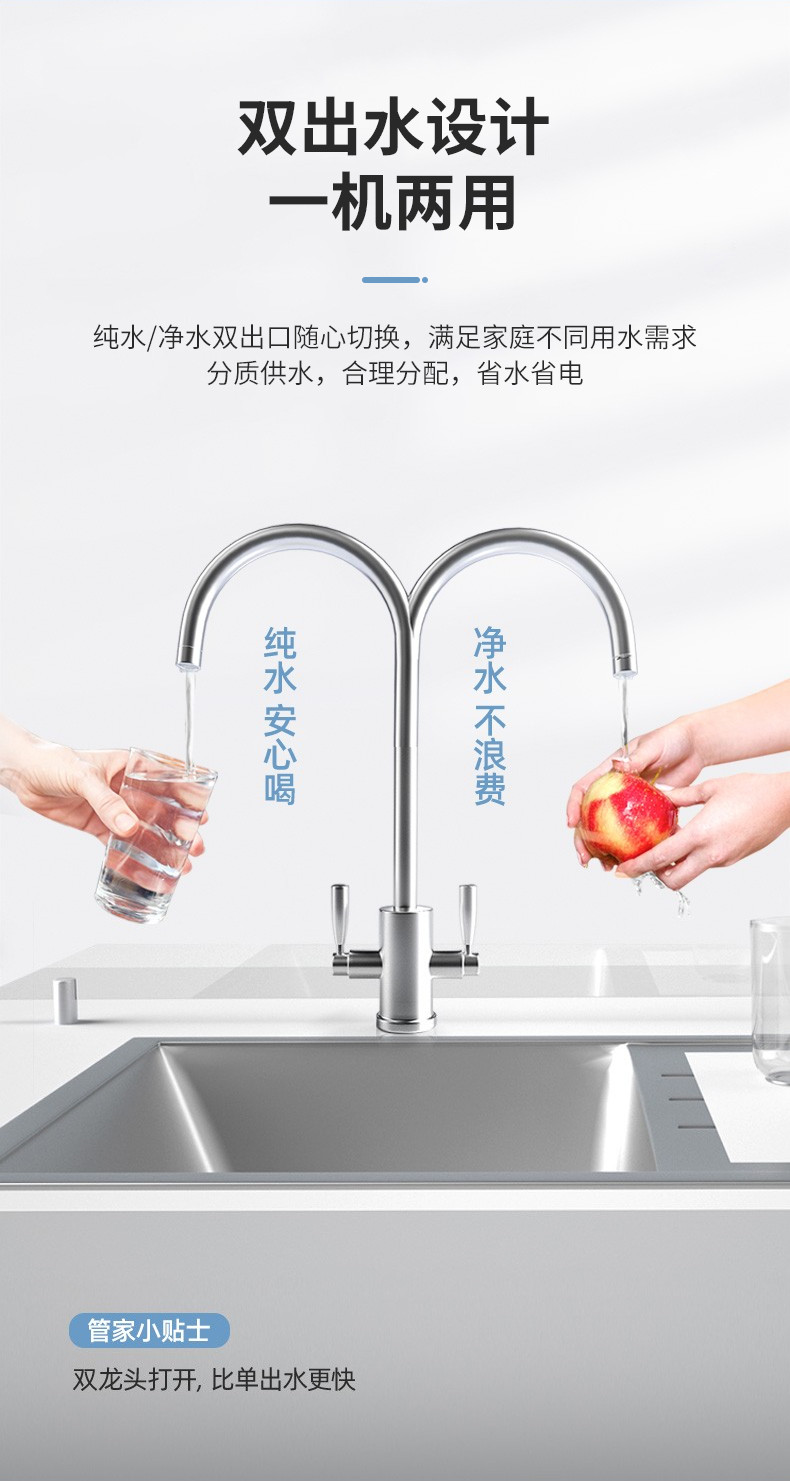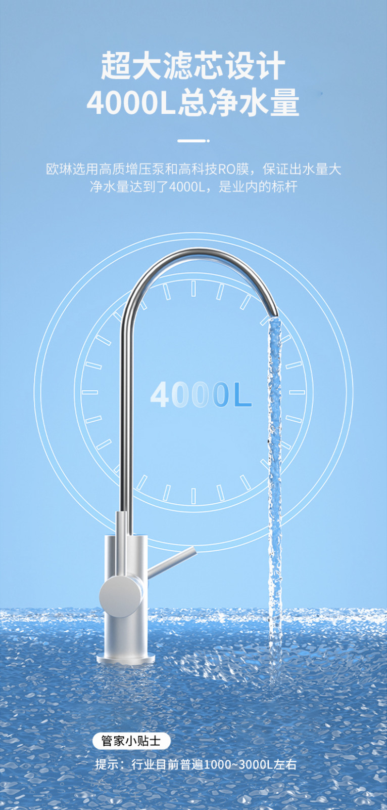 欧琳(OULIN) 家用厨下式净水器 RO反渗透 无桶大通量纯水机 直饮机 500G纯水机