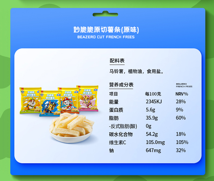 未零汪汪队立大功妙脆脆薯条18克*20袋 儿童健康鲜薯即食休闲小零食