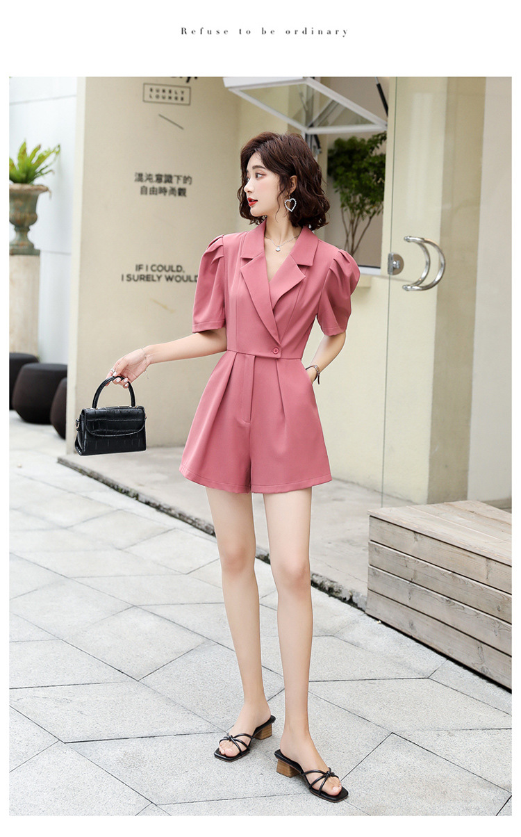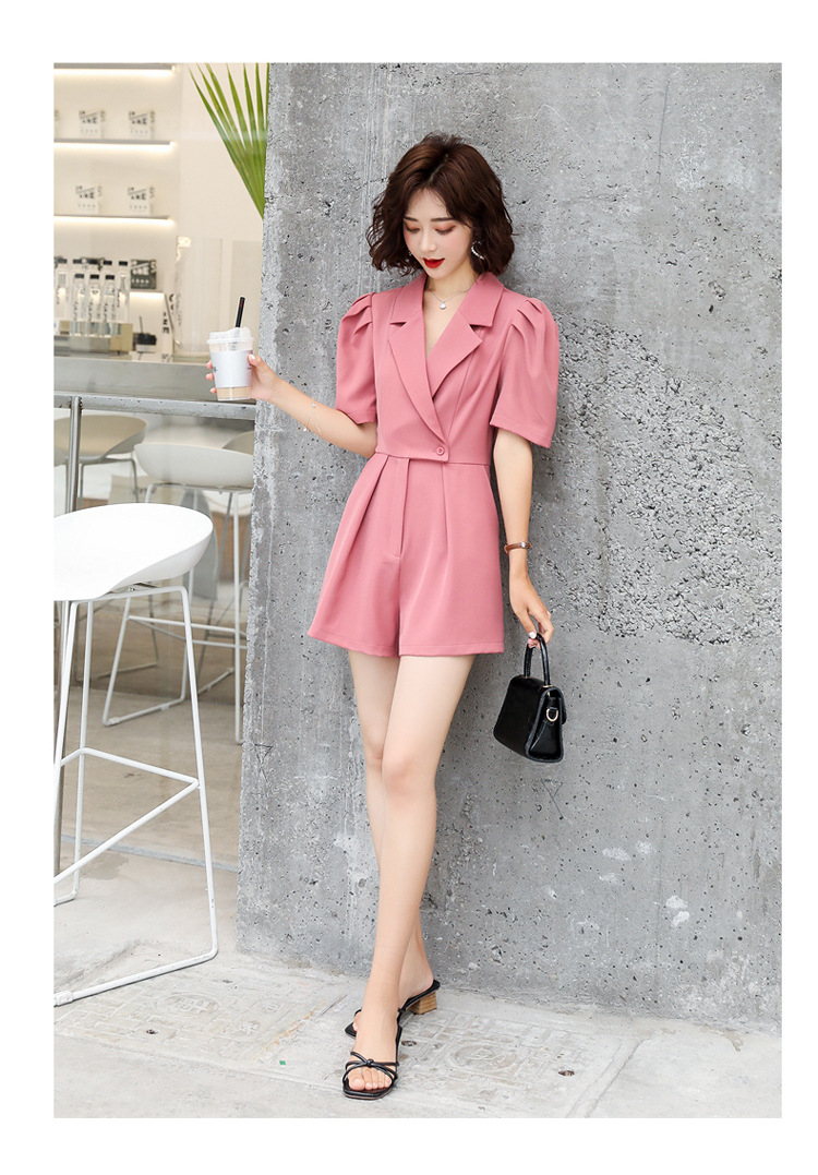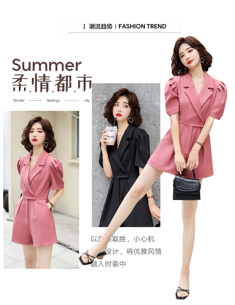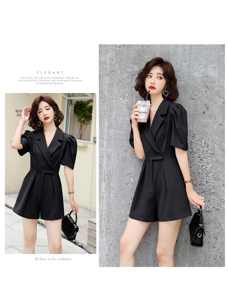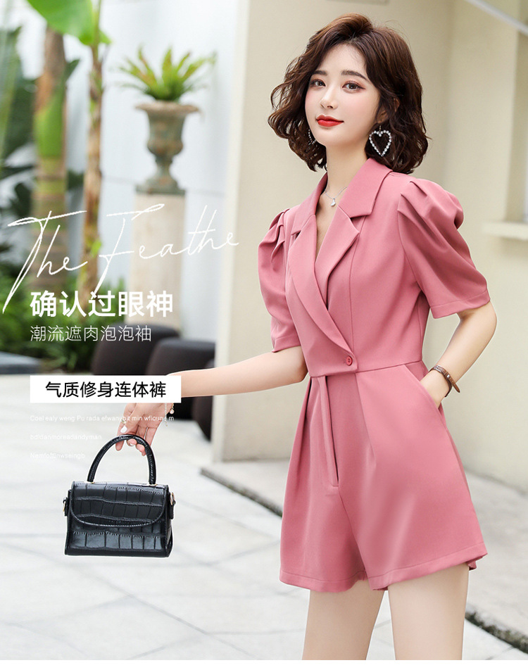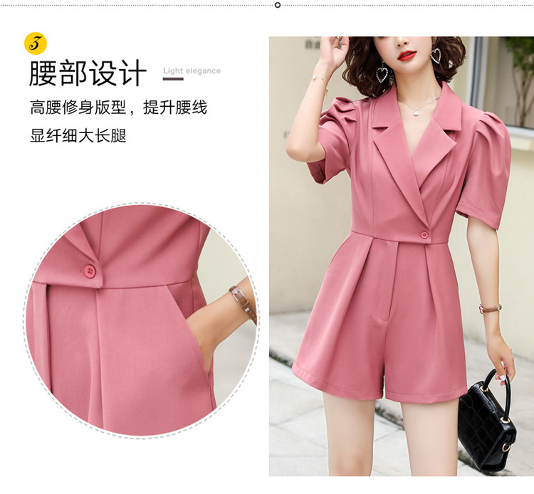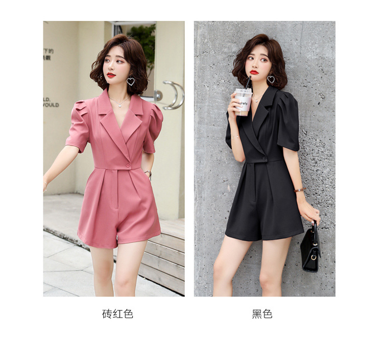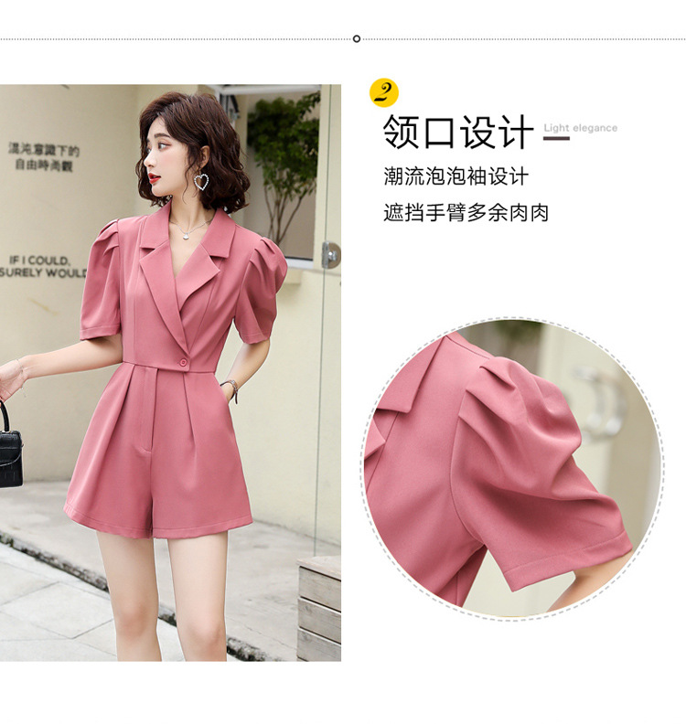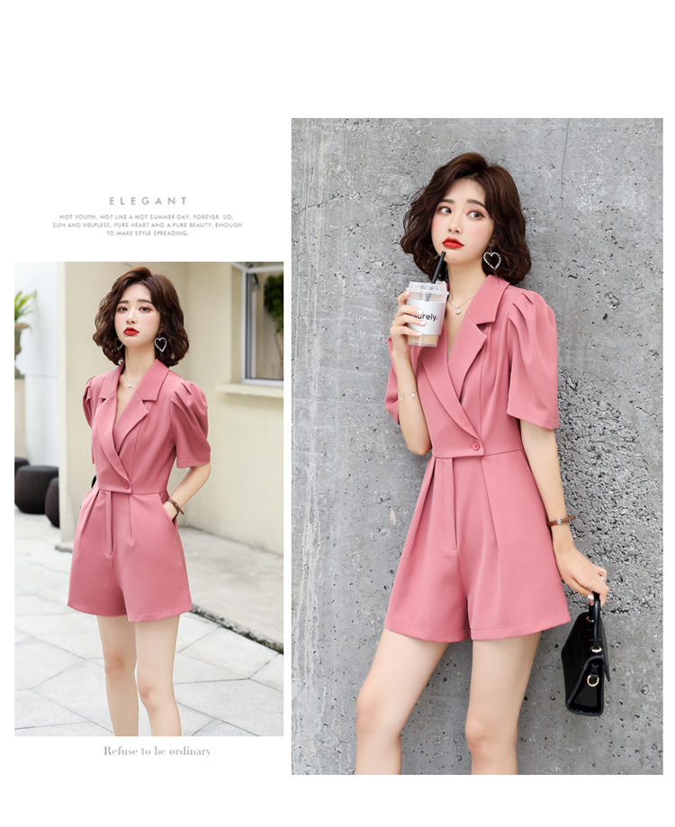 西装领纯色气质收腰韩版2022年夏新款女装泡泡袖连体裤HR-WE20219