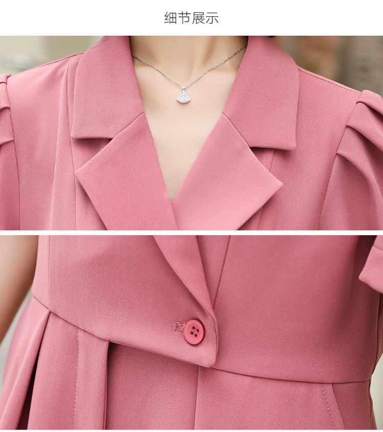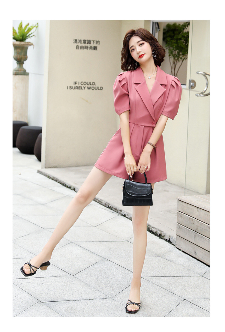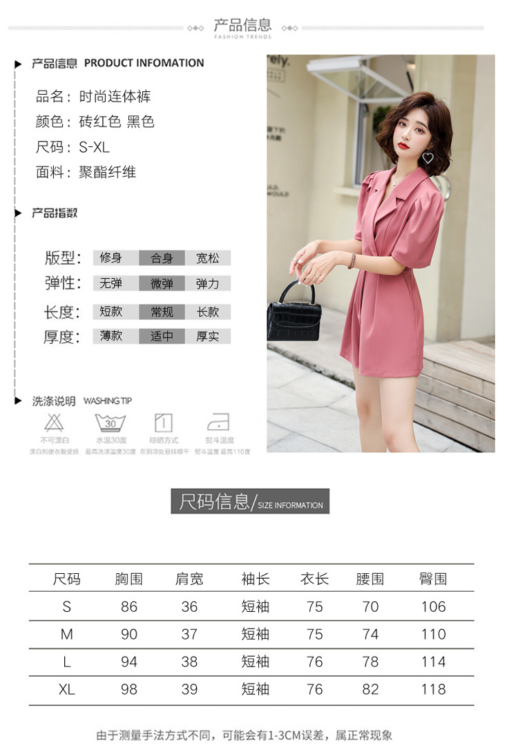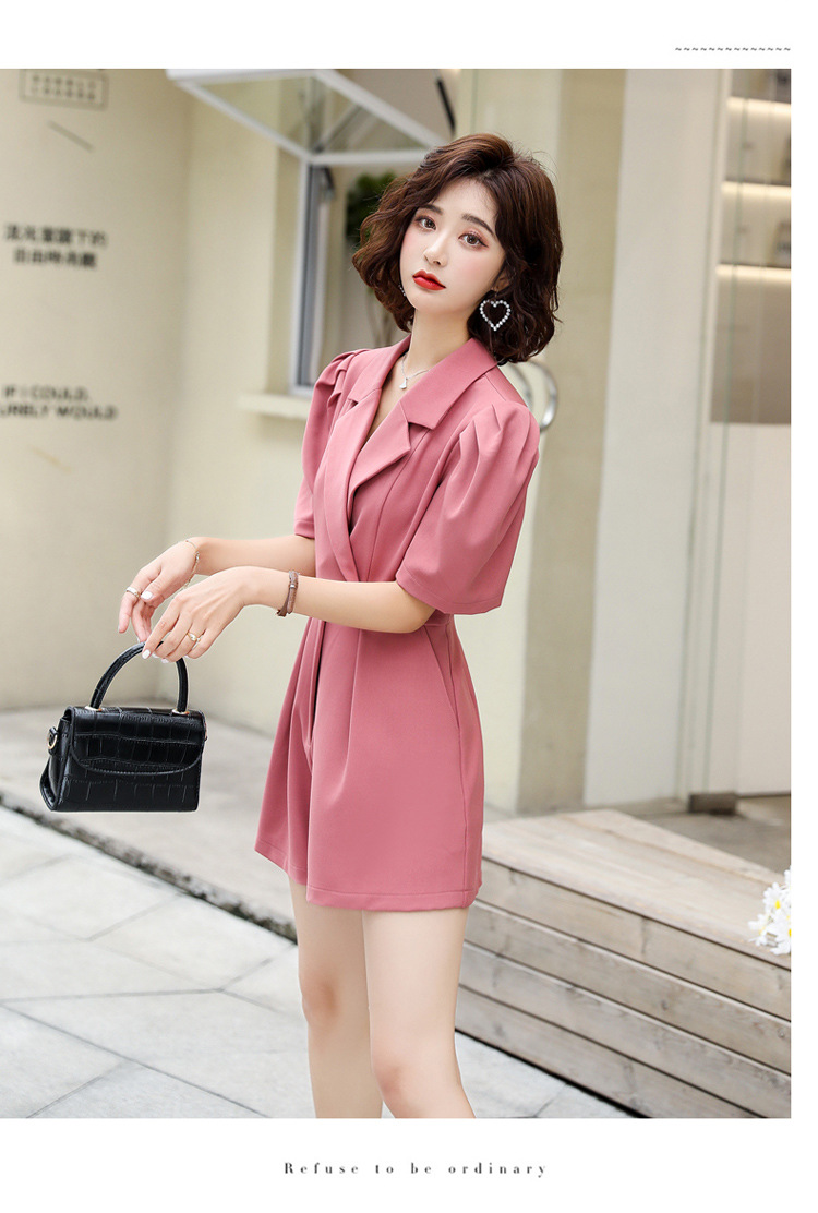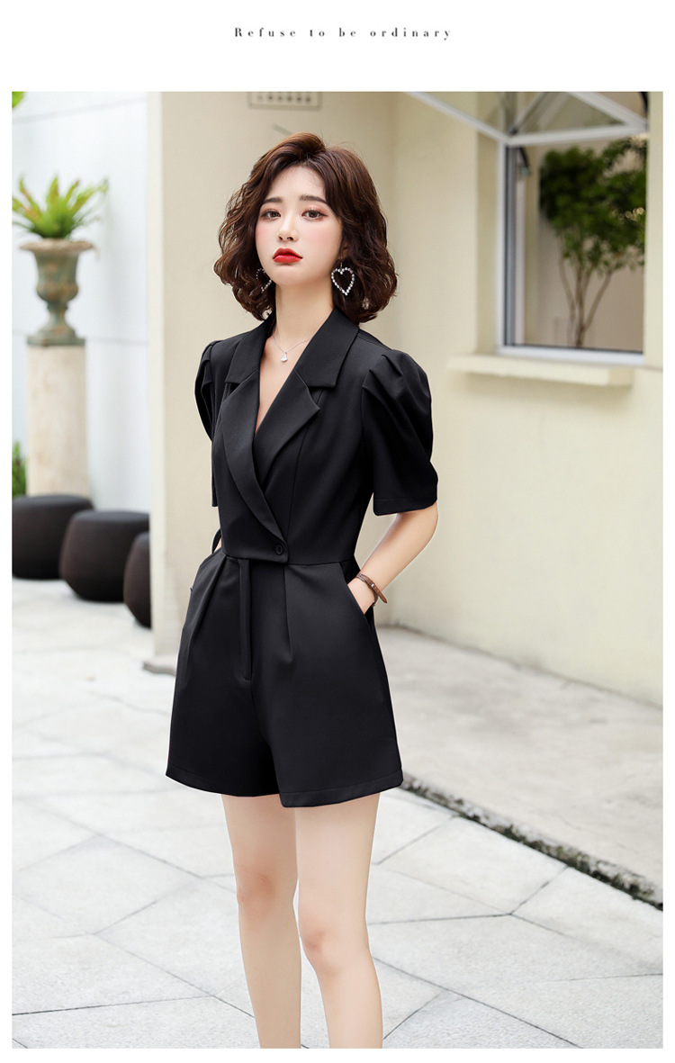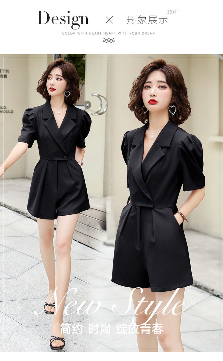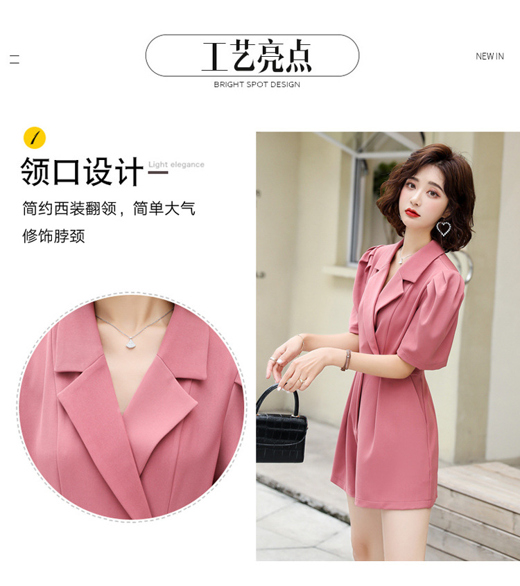 西装领纯色气质收腰韩版2022年夏新款女装泡泡袖连体裤HR-WE20219