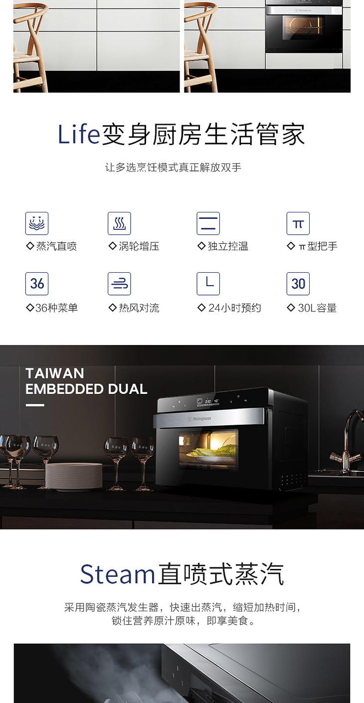 赠送福利:购买西屋蒸汽烤箱,赠送价值1580元同品牌原汁机一台,赠品信息可见详情页下方,原汁机与蒸汽烤箱分开寄出。
