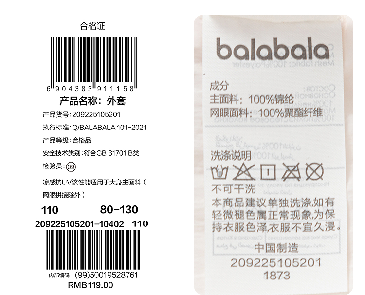 巴拉巴拉男女宝外套婴儿衣服2025新款夏季防晒衣童装连帽时尚可爱