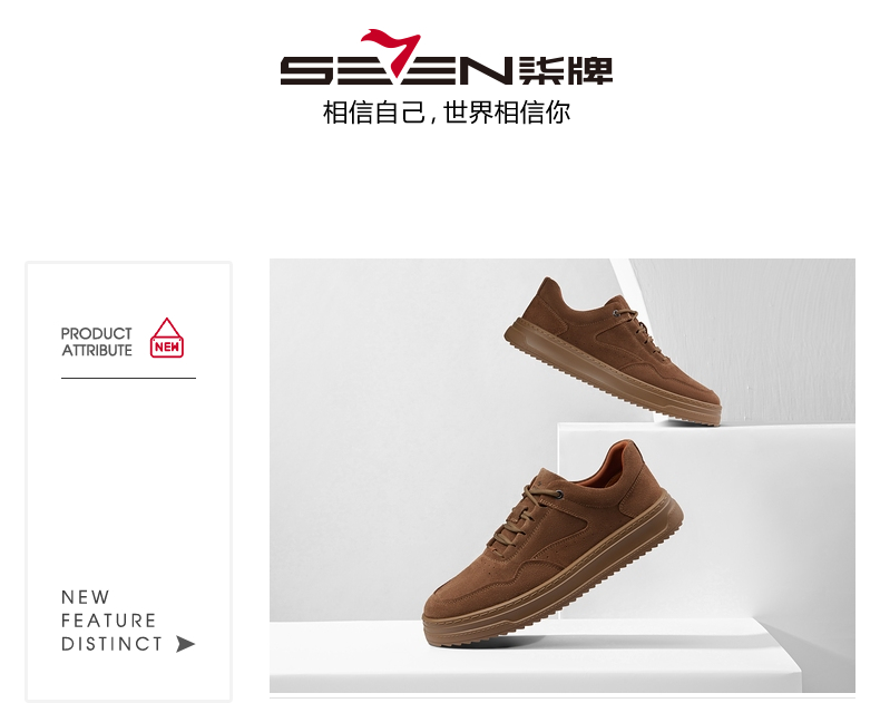 柒牌男鞋休闲皮鞋男春秋款时尚潮流百搭英伦风户外男款低帮平底鞋 126X70130