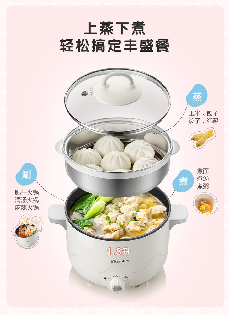 电煮锅宿舍锅学生锅电锅小型火锅家用多功能 DRG-C18K2