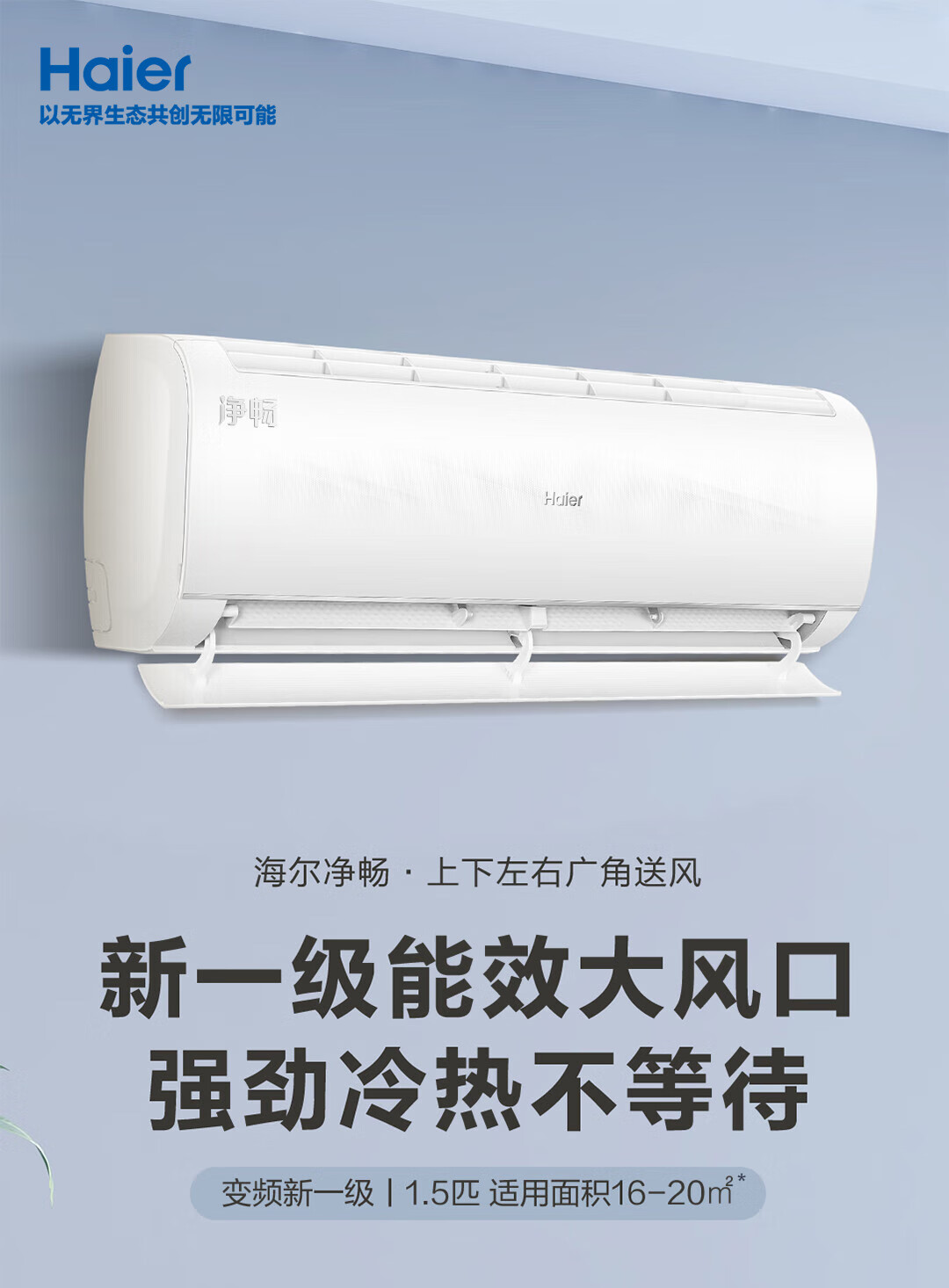 海尔(Haier)空调挂机1.5匹新一级能效变频冷暖壁智能自清洁卧室家用智能WIFI壁挂式空调 1.5匹 一级能效KFR-35GW/B1KPC81U1