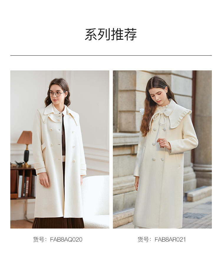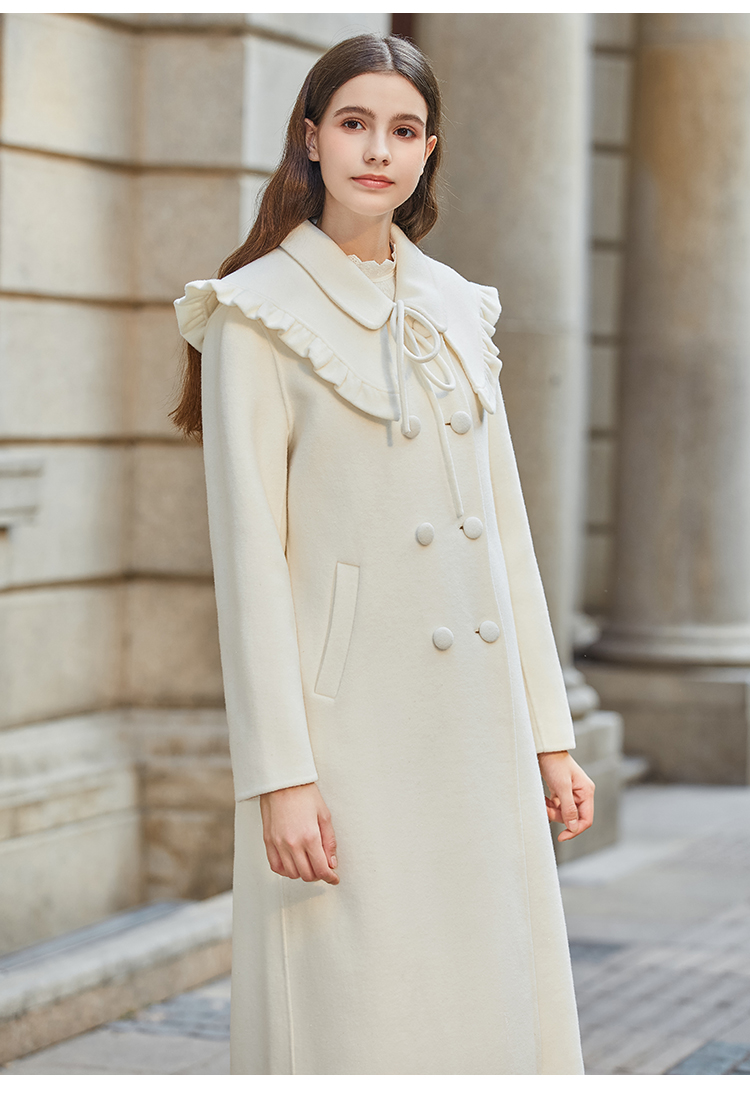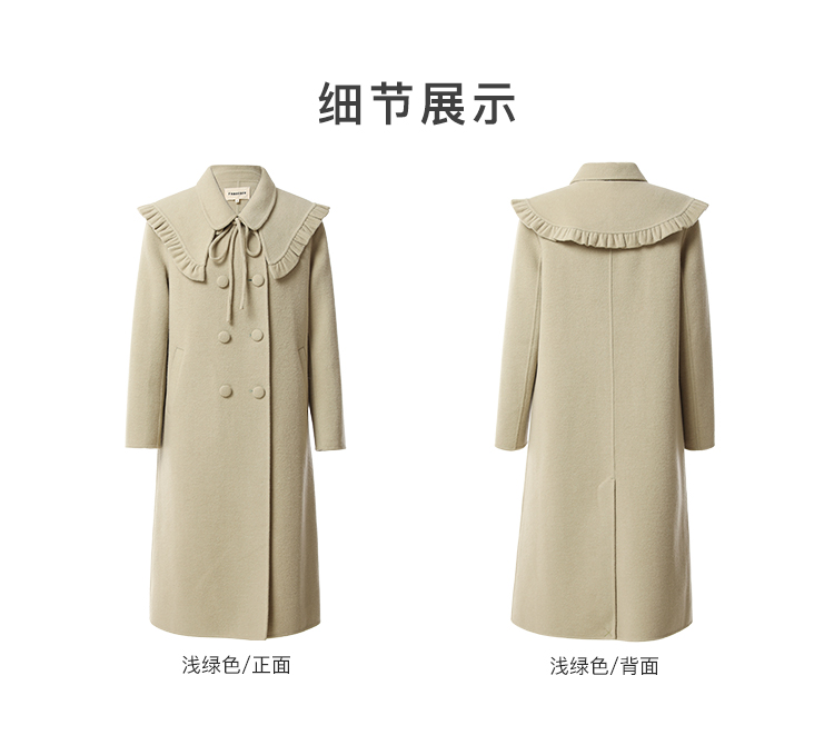 Famecoco荷叶边披肩领双面呢羊毛大衣女冬FAB8AR021