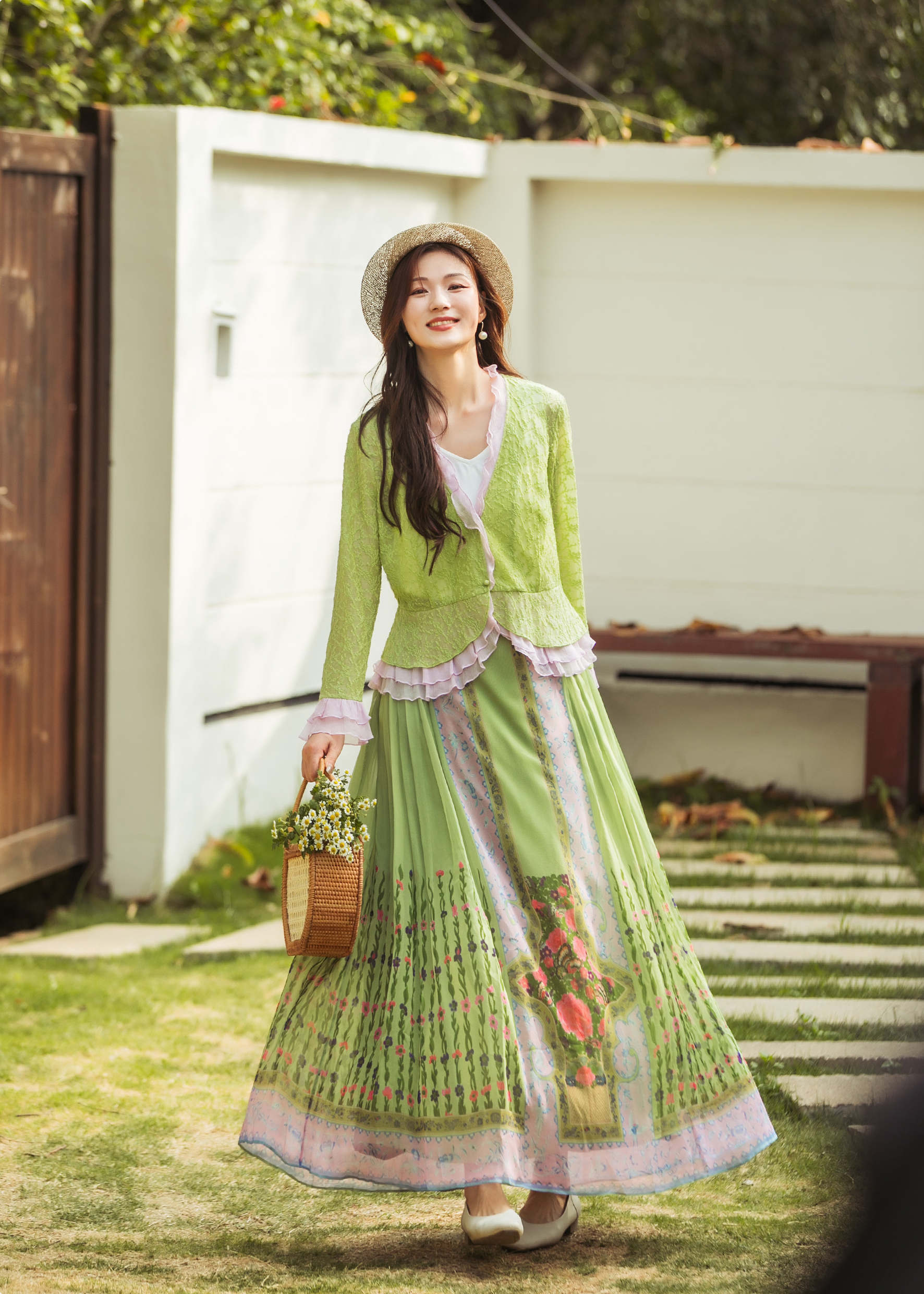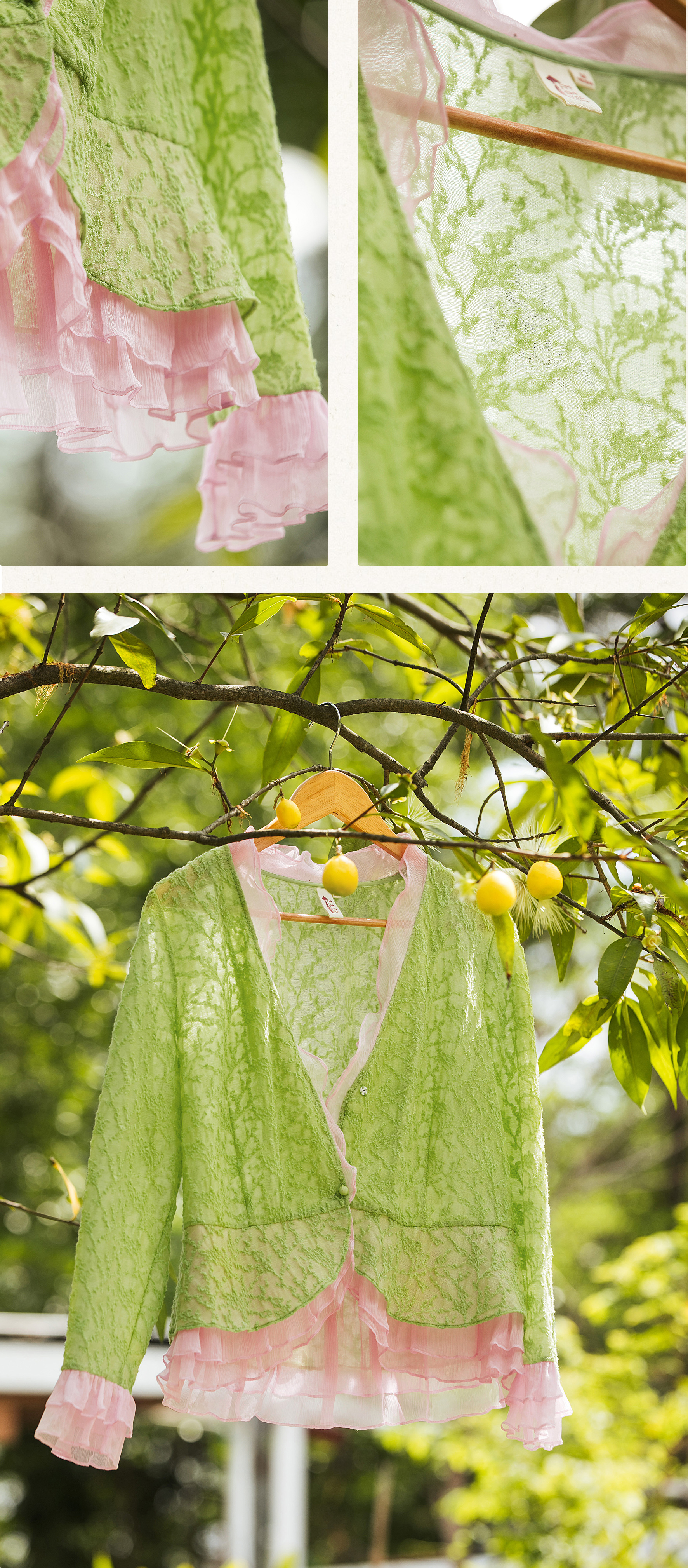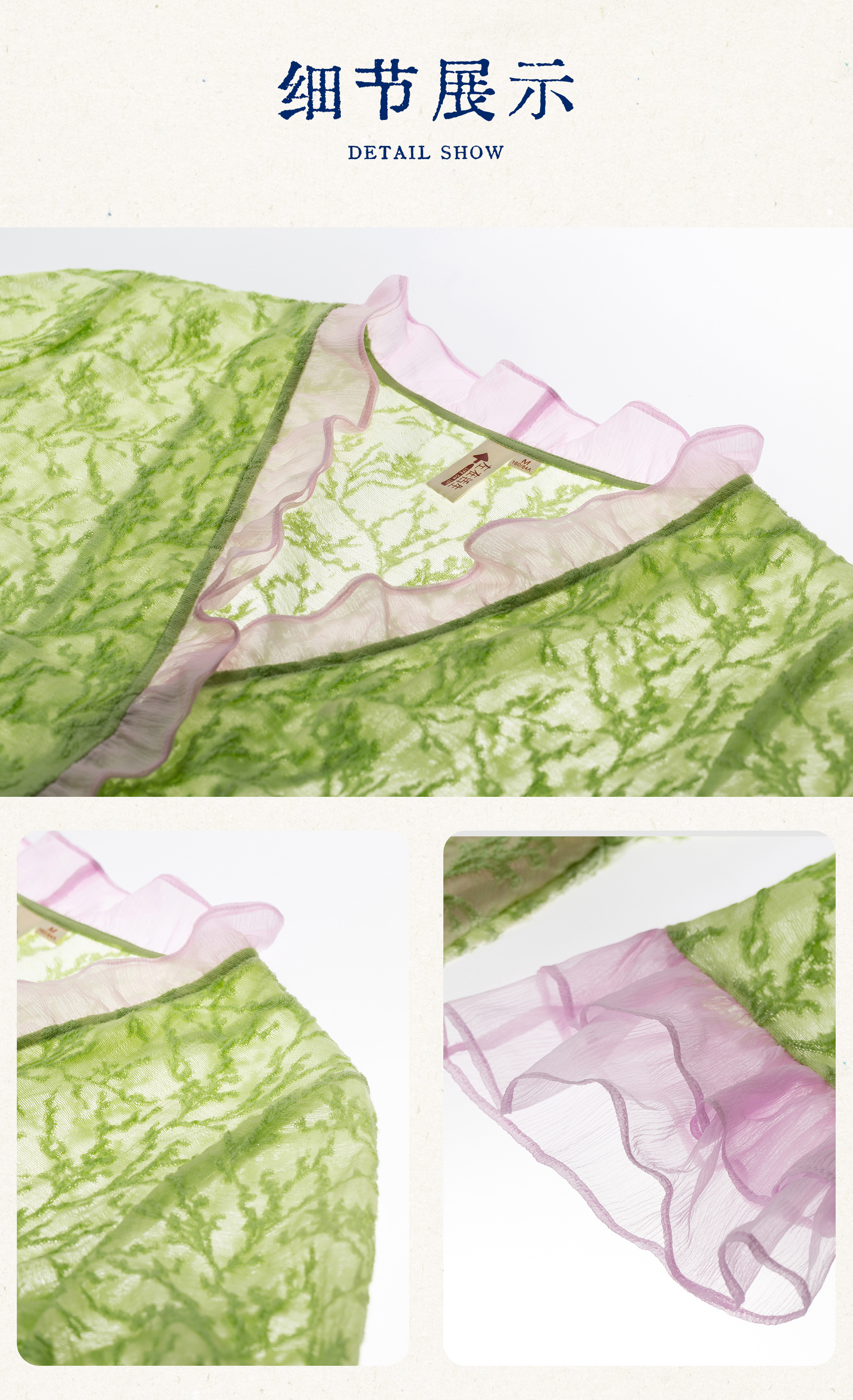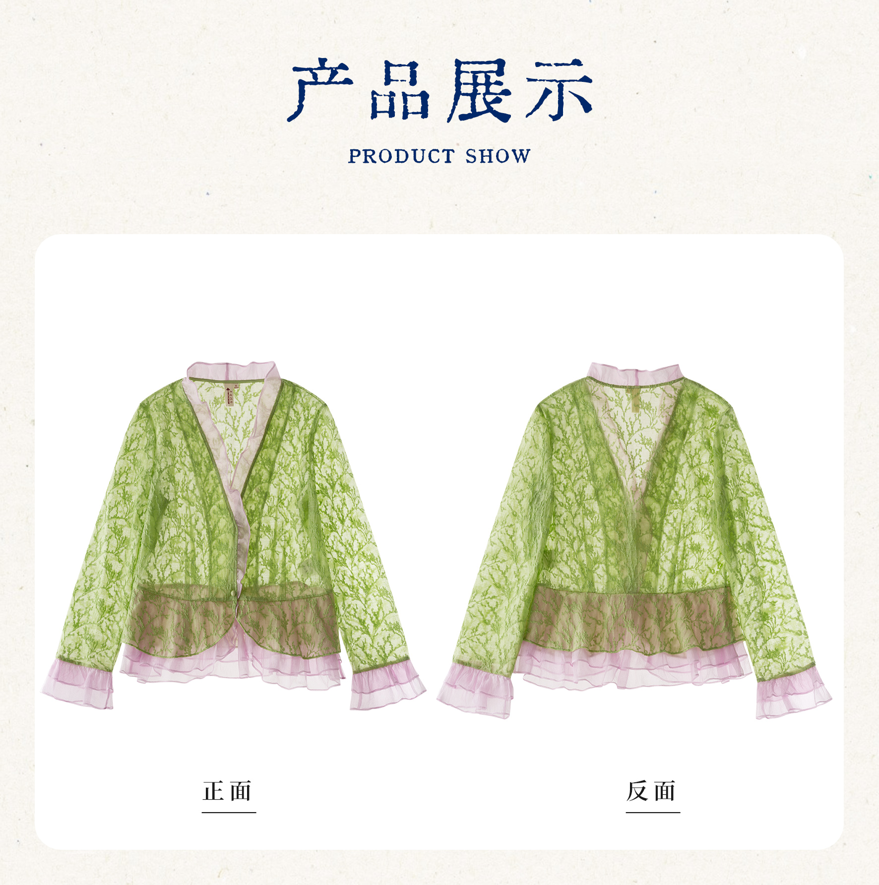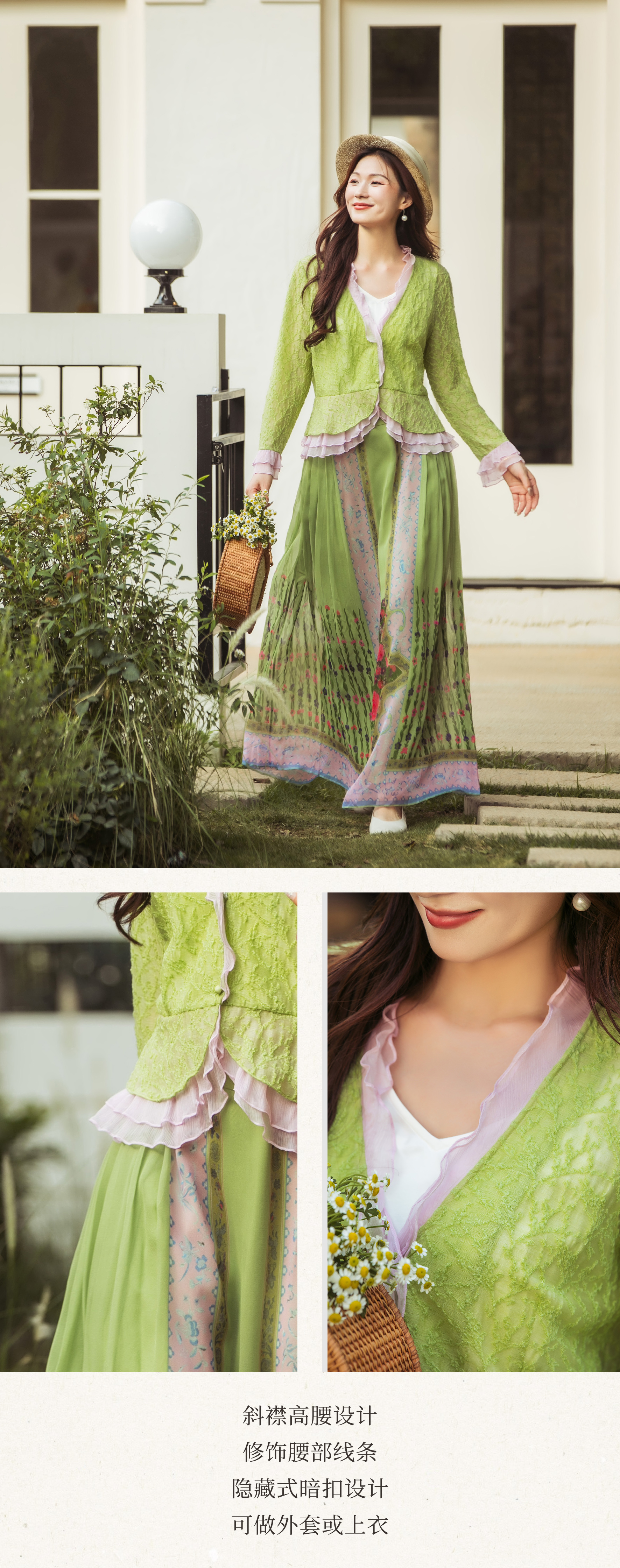 【林栖设计小店】【现货】【林栖推荐】2025夏季新品桃红柳绿色提花拼真丝开衫外套女N1952432