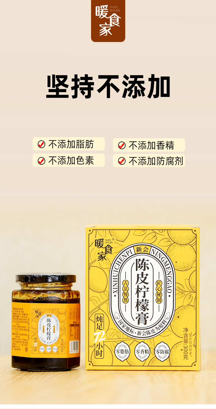 暖食家陈皮柠檬膏 无添加 十年新会陈皮香水柠檬