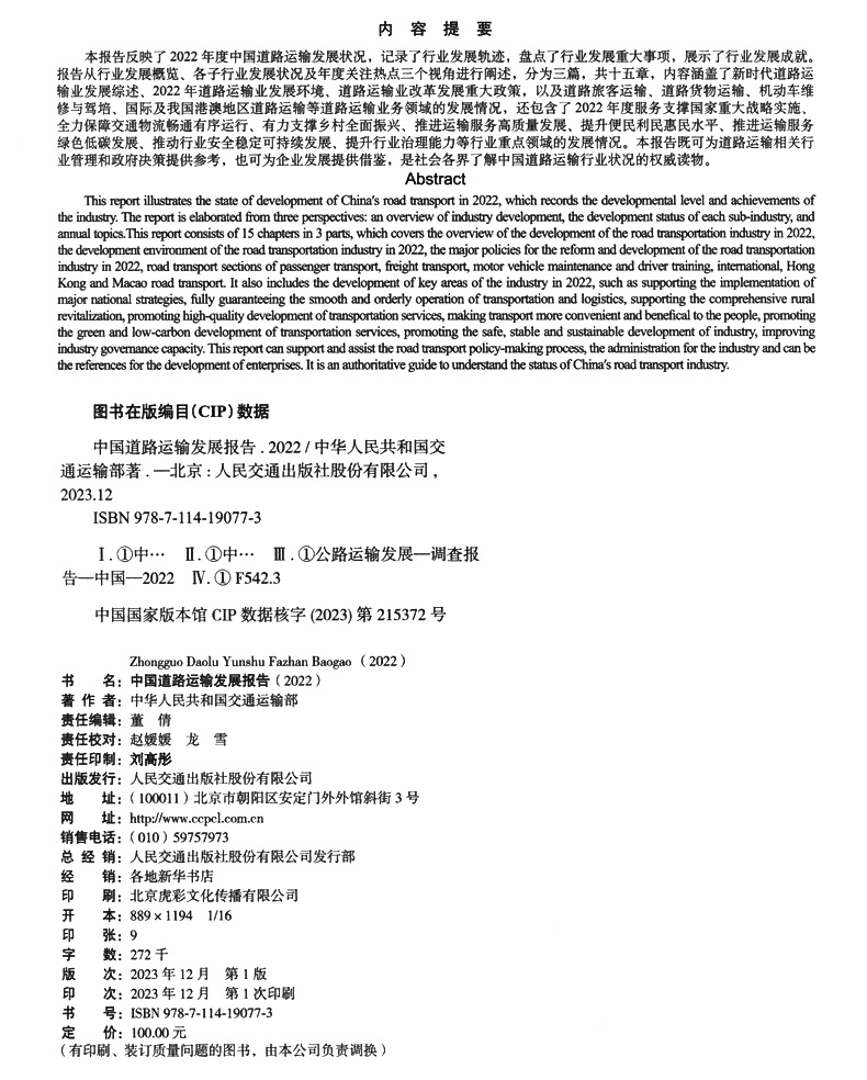 书名:中国道路运输发展报告(2022)