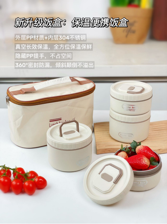 好看的饭盒是带饭的动力! 304不锈钢内胆✅大容量 💯密封外出携带也方便 整体可拆分设计 用水一冲就干干净净!!