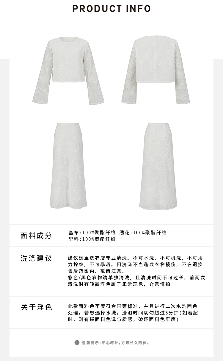 HIDEMI 度假系列浮雕剪花三件套 茧型半身裙/短袖上衣/长袖衬衫